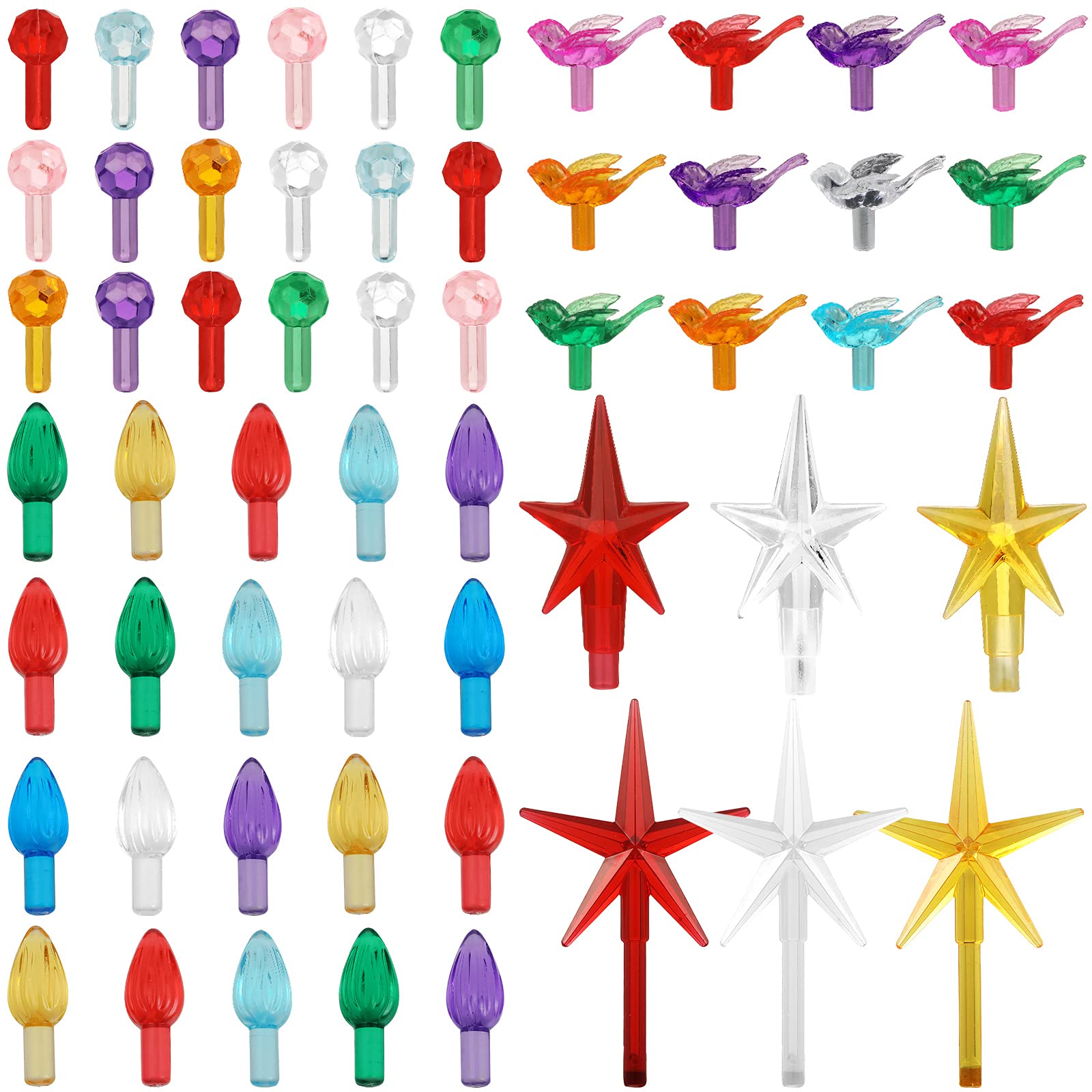 186 Pieces Ceramic Christmas Tree Replacement Bulb Set Includes 60 Ceramic Tree Replacement Lights Ornaments 60 Ceramic Tree Globe Lights 60 Christmas Tree Bird Lights 6 Stars(Multi Color)