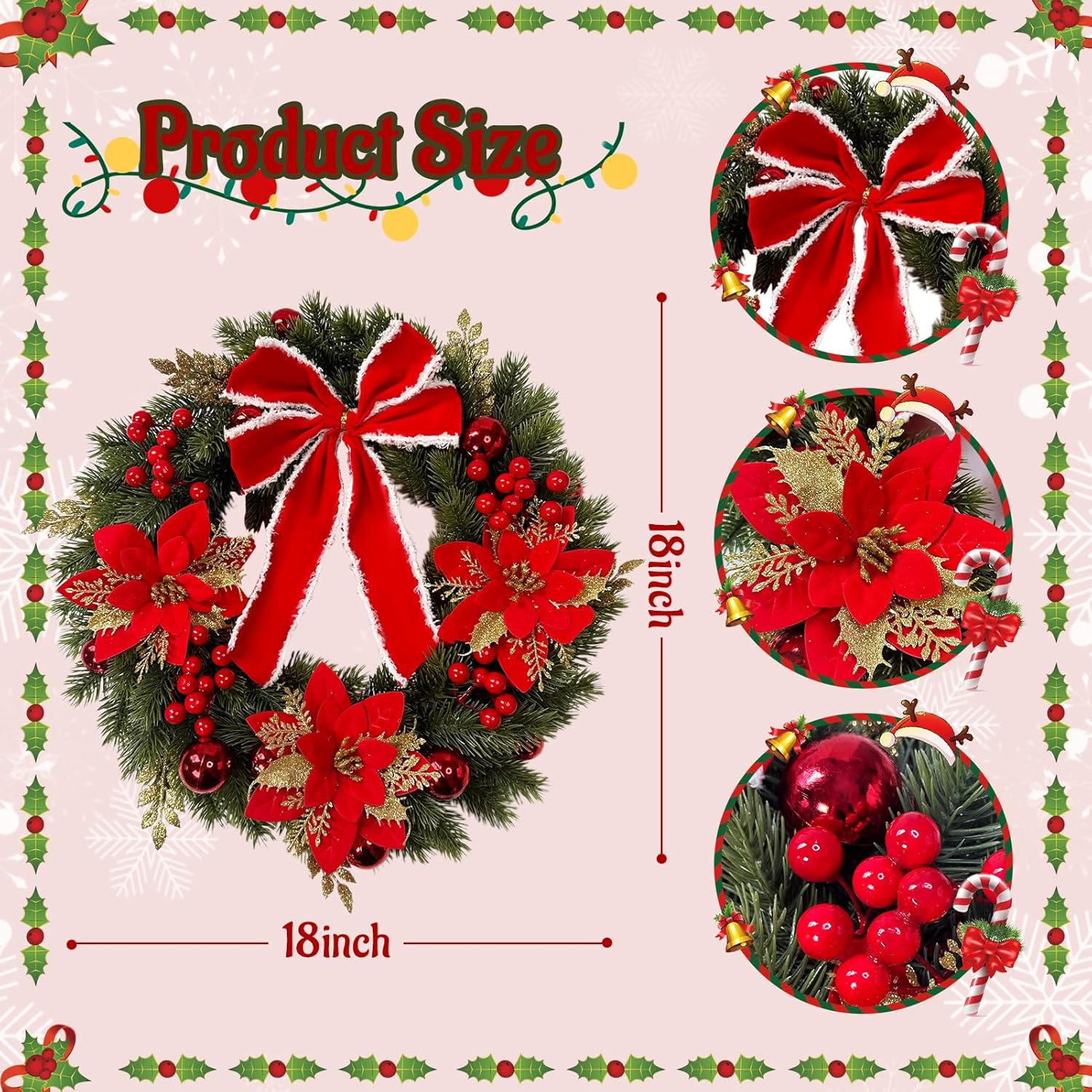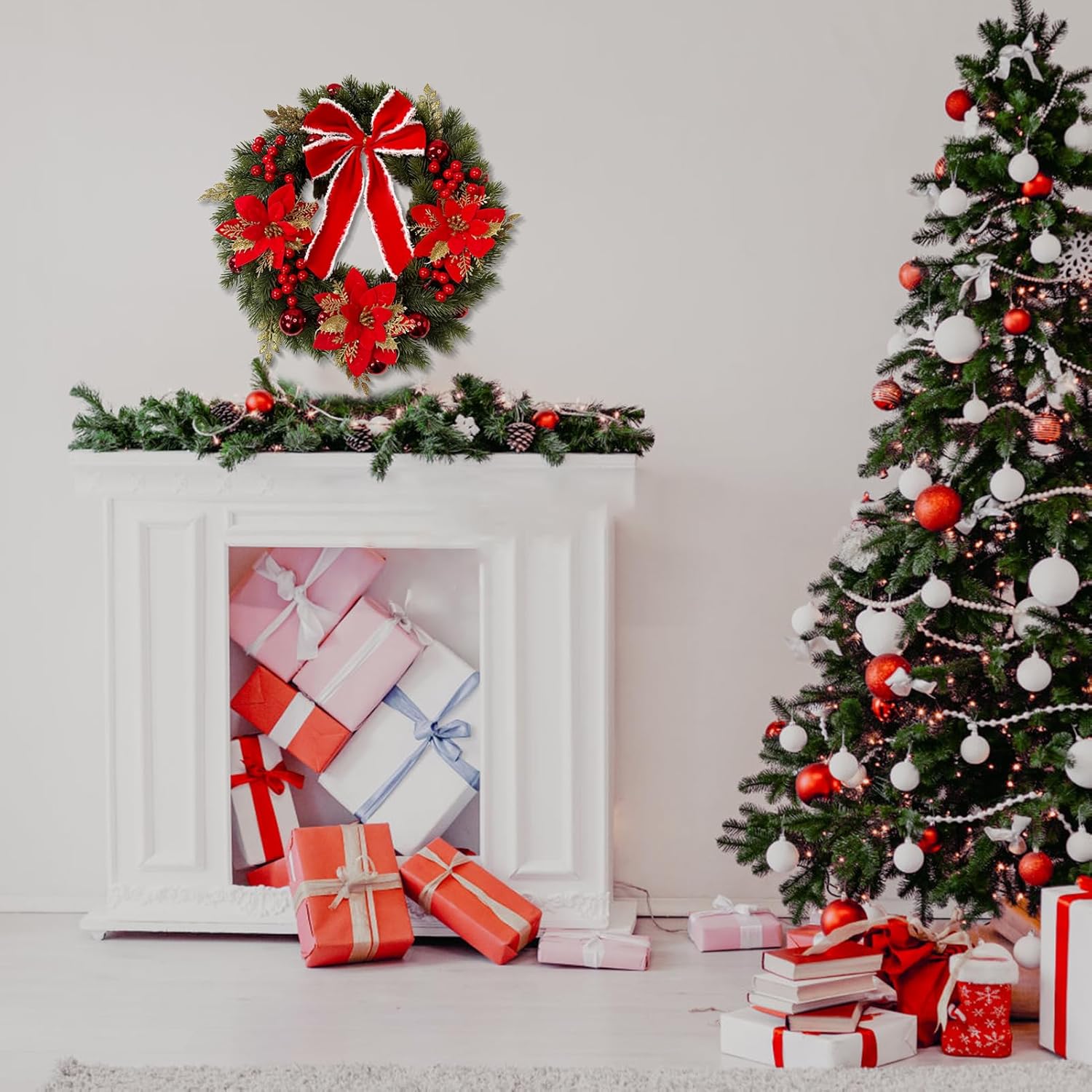 • 【Perfect Christmas Decorations】18" Christmas wreath is the necessary Christmas ornament to decorate your home. Perfect for Christmas, home, wall, window, front door, fireplace, living room, bedroom, dining room, mantel, porch etc decor. Great for your family and friends.