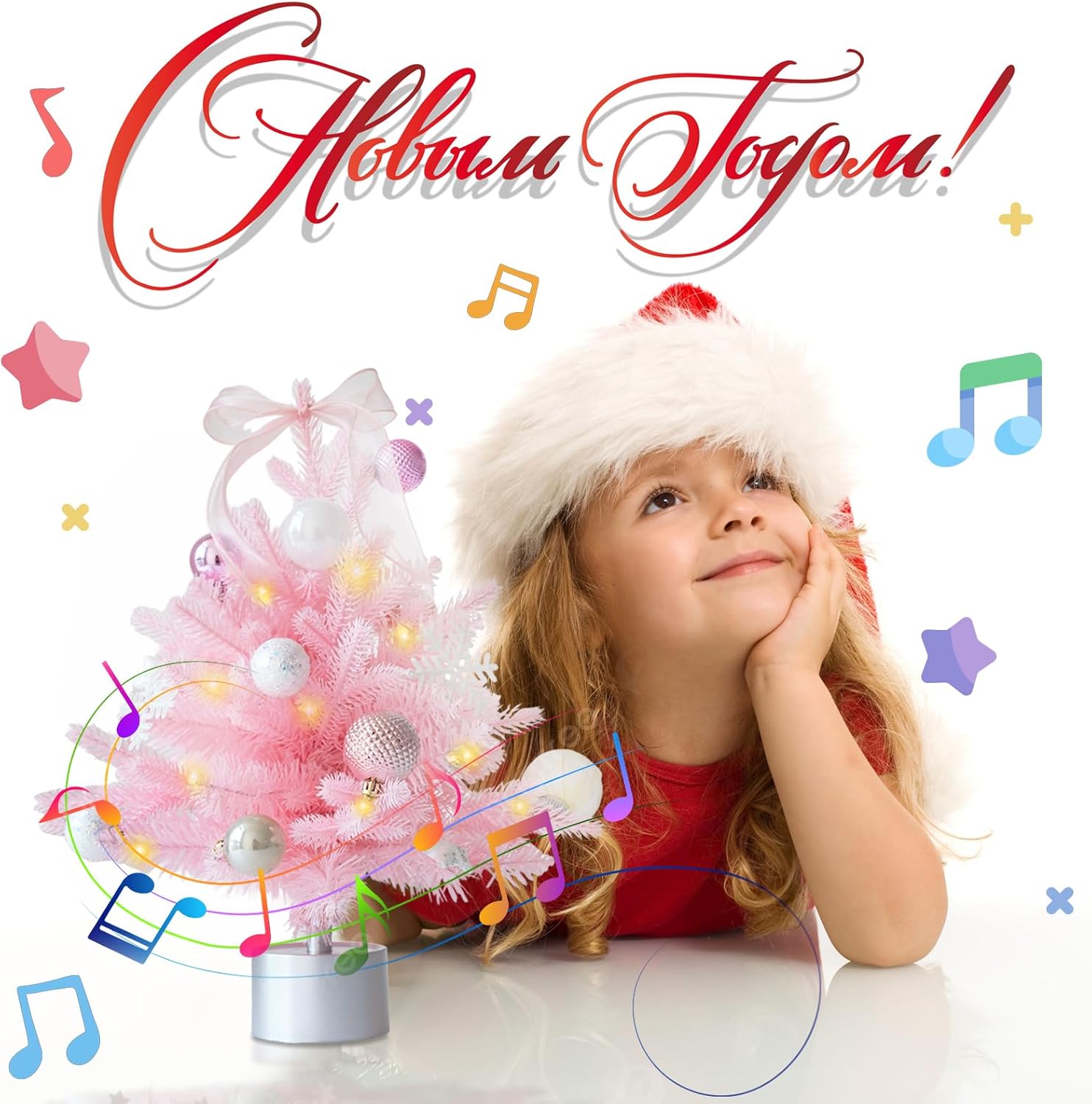 Pink Mini Chistmas Tree with Silver Rotate Music Tree Base: Each pink small christmas tree has a silver rotate music box at the bottom makes it a fantastic backdrop for both classic and contemporary ornaments, just twist the bottom a few times, the small tree will rotate 360 and make soft music35 Large Light Bulbs with 8 Flashing Modes: You would love the 8 multiple lighting options snd pick a different one each day, change them everyday to something different, adjust the lighting to suit your mood. Battery operated (battery not included).