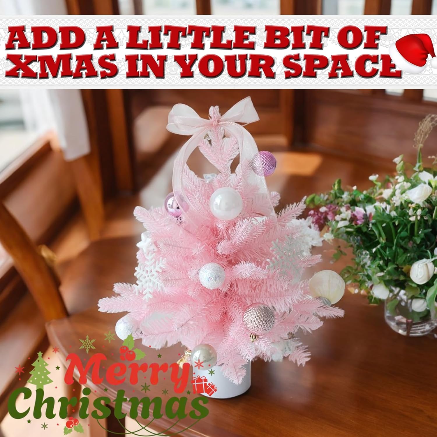 • Table Christmas Tree with Lights for Small Space: This pink small christmas tree looks realistic, perfect for your TV cabinet, wardrobe, window sill, table, study, coffee table, kids bedrooms, next to the pet's bed, if you need add a little bit of xmas in their space