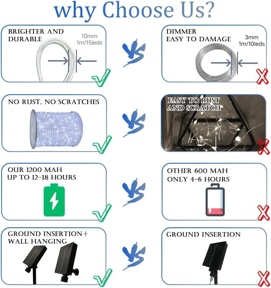 196ft 600 LED Solar Rope Lights Outdoor Waterproof 60M Solar Powered String Lights Super Long Fairy Light with Timer Solar Tube Lights Garden Christmas Lights for Deck Patio Pool Weeding Yard Decor