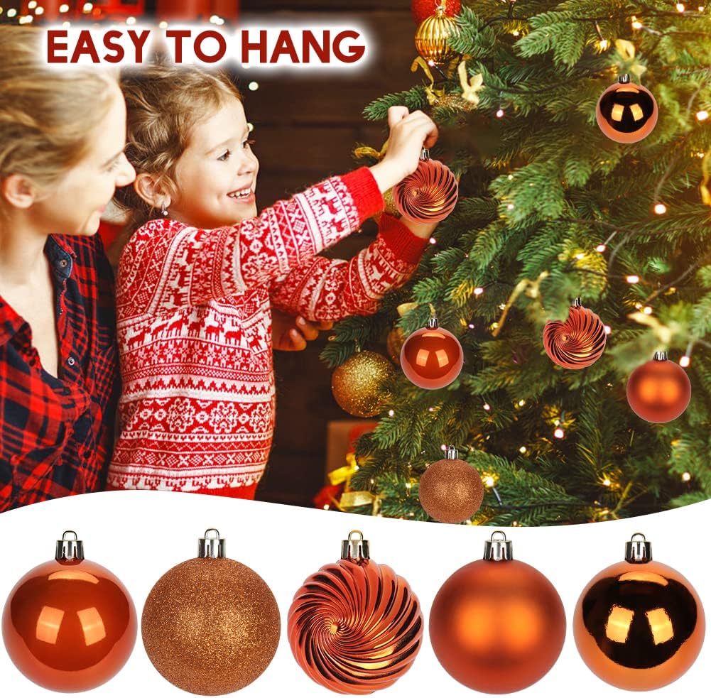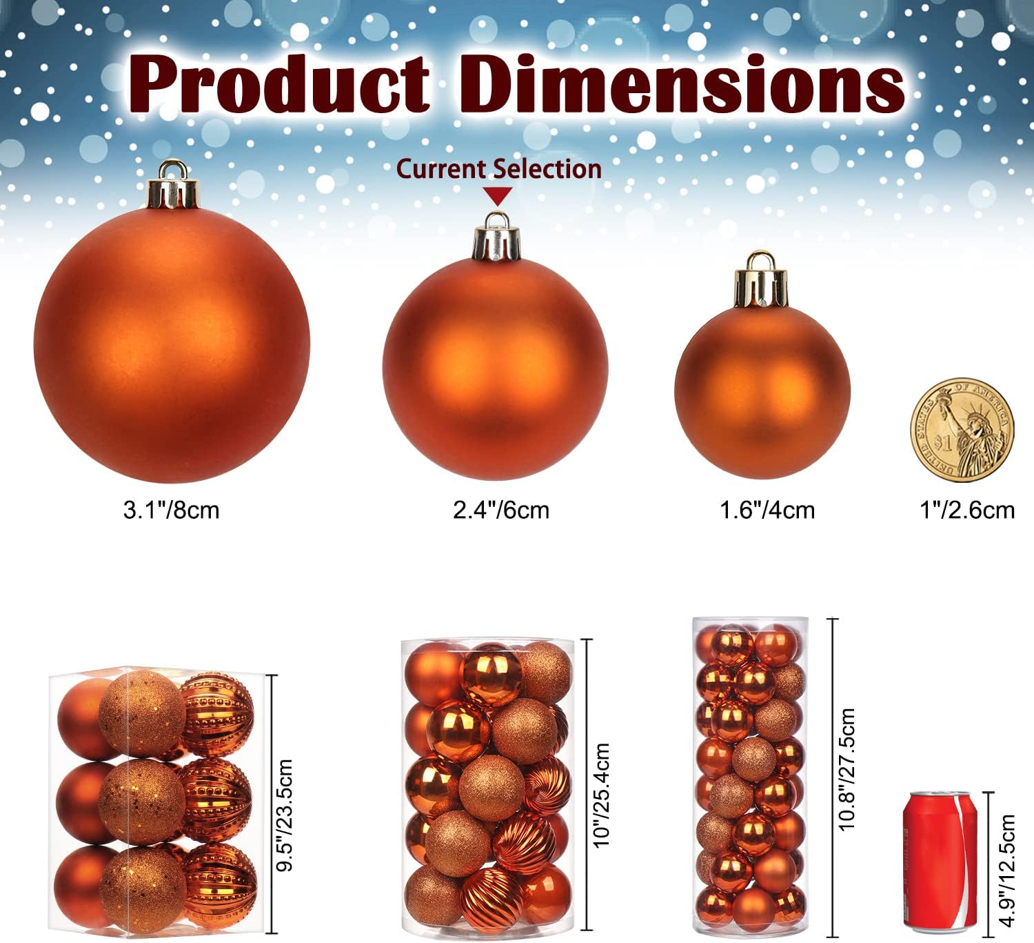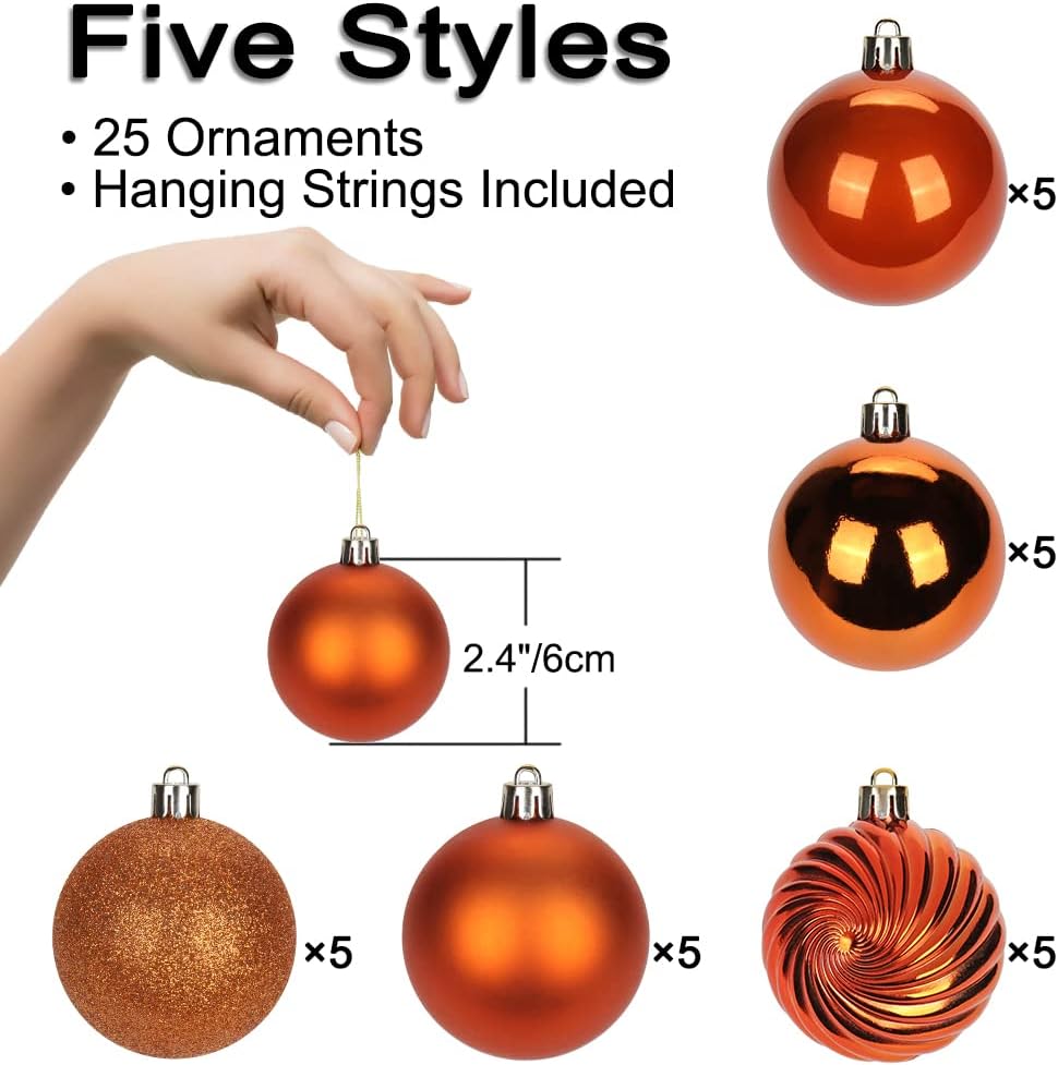 2.36" Orange Christmas Balls Ornaments 25 Pcs Shatterproof Christmas Ornaments Set Halloween Balls Ornaments Orange Ornaments for Christmas Tree Holiday Party