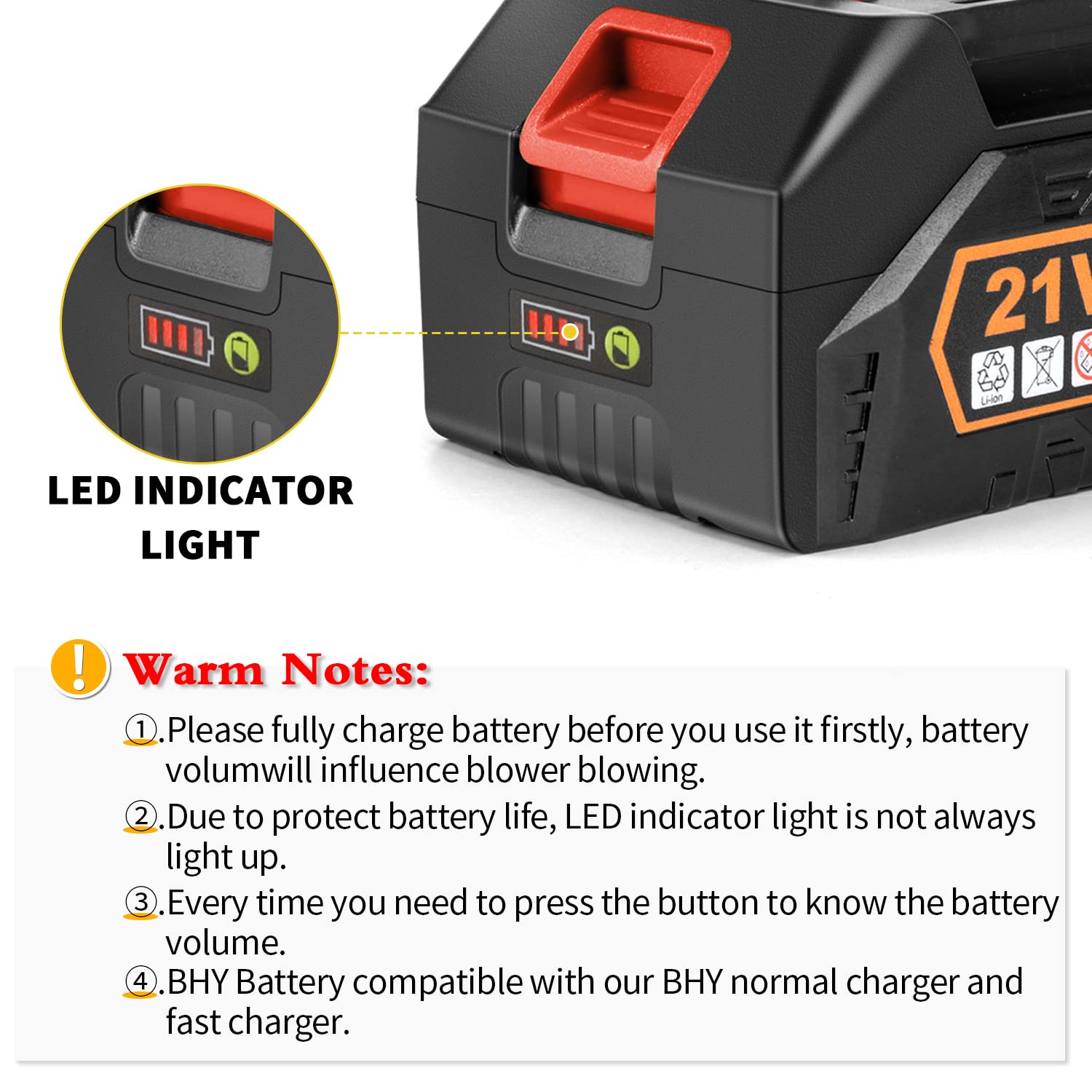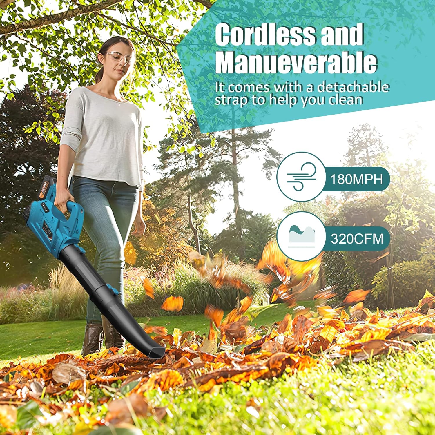 2 × 5.0Ah Battery Leaf Blower - BHY 320 CFM & 180MPH Cordless Electric Leaf Blower with Fast Charger, 6 Variable Speeds, Battery Leaf Blower for Blowing Leaves, Snow Debris and Dust