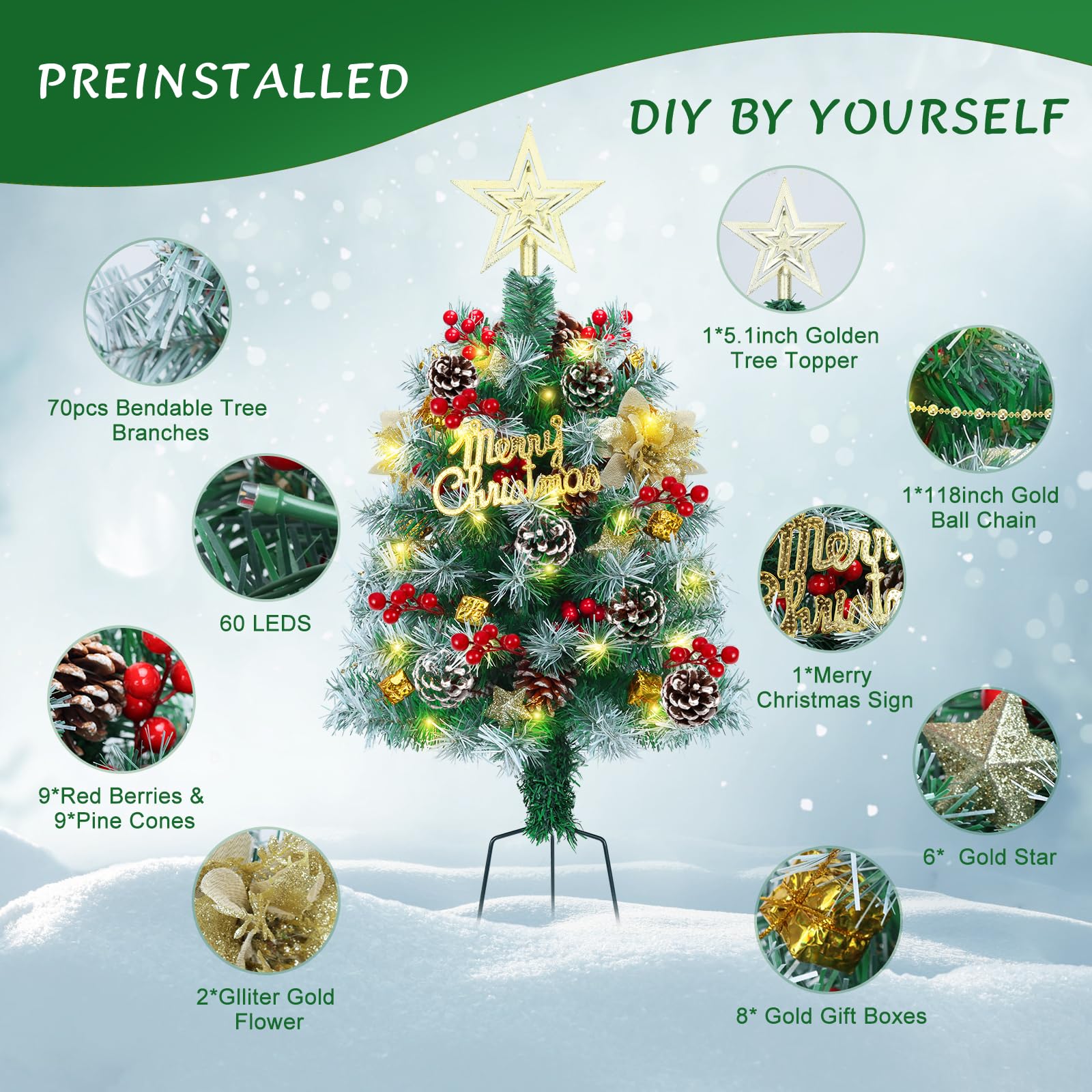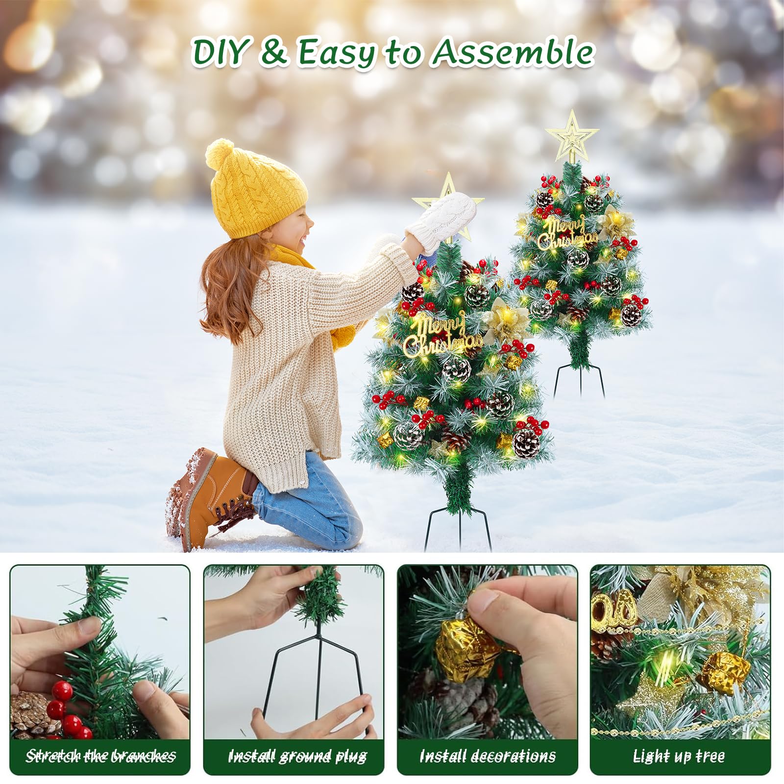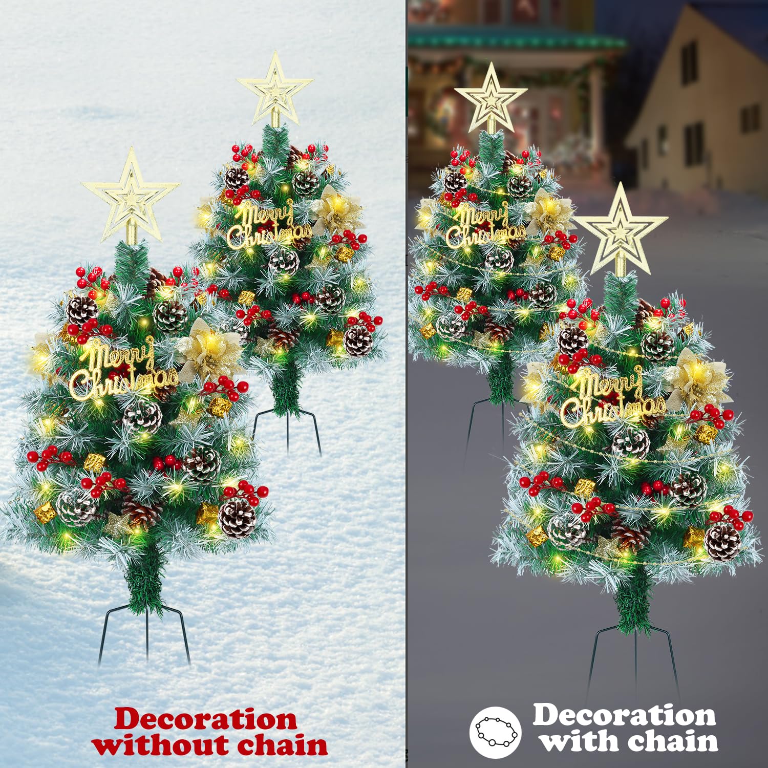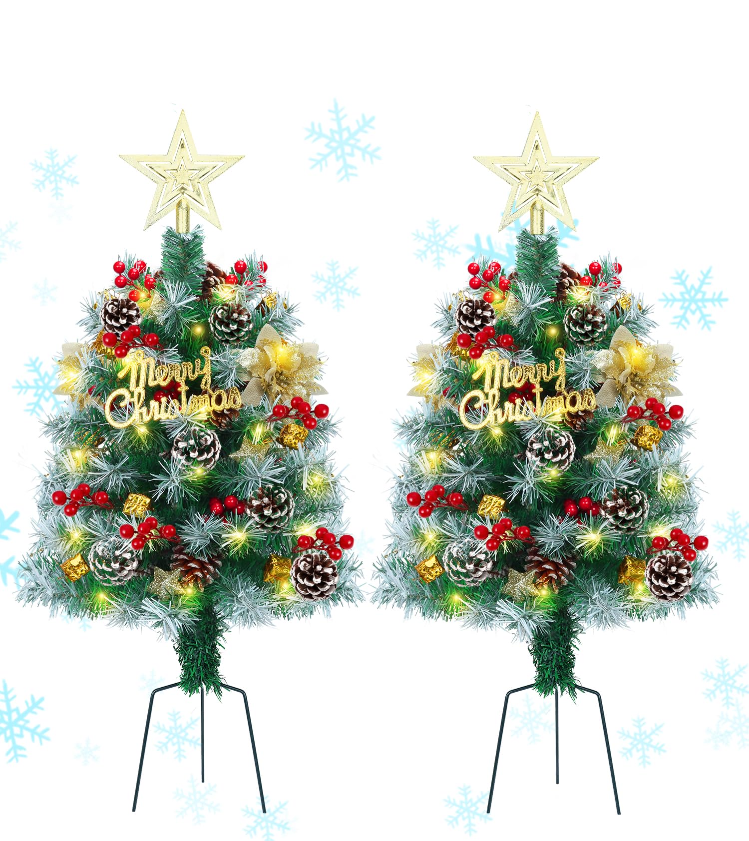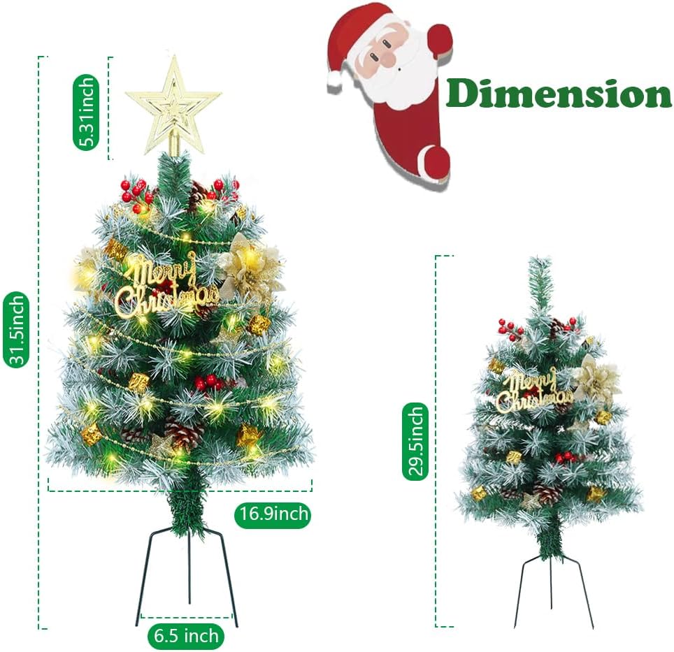 2.6FT Outdoor Pathway Christmas Trees Lighted Battery Powered,Small Artificial Christmas Tree Snow Flocked,Pre-Lit Christmas Pine Trees for Grave,Porch (2PACK)