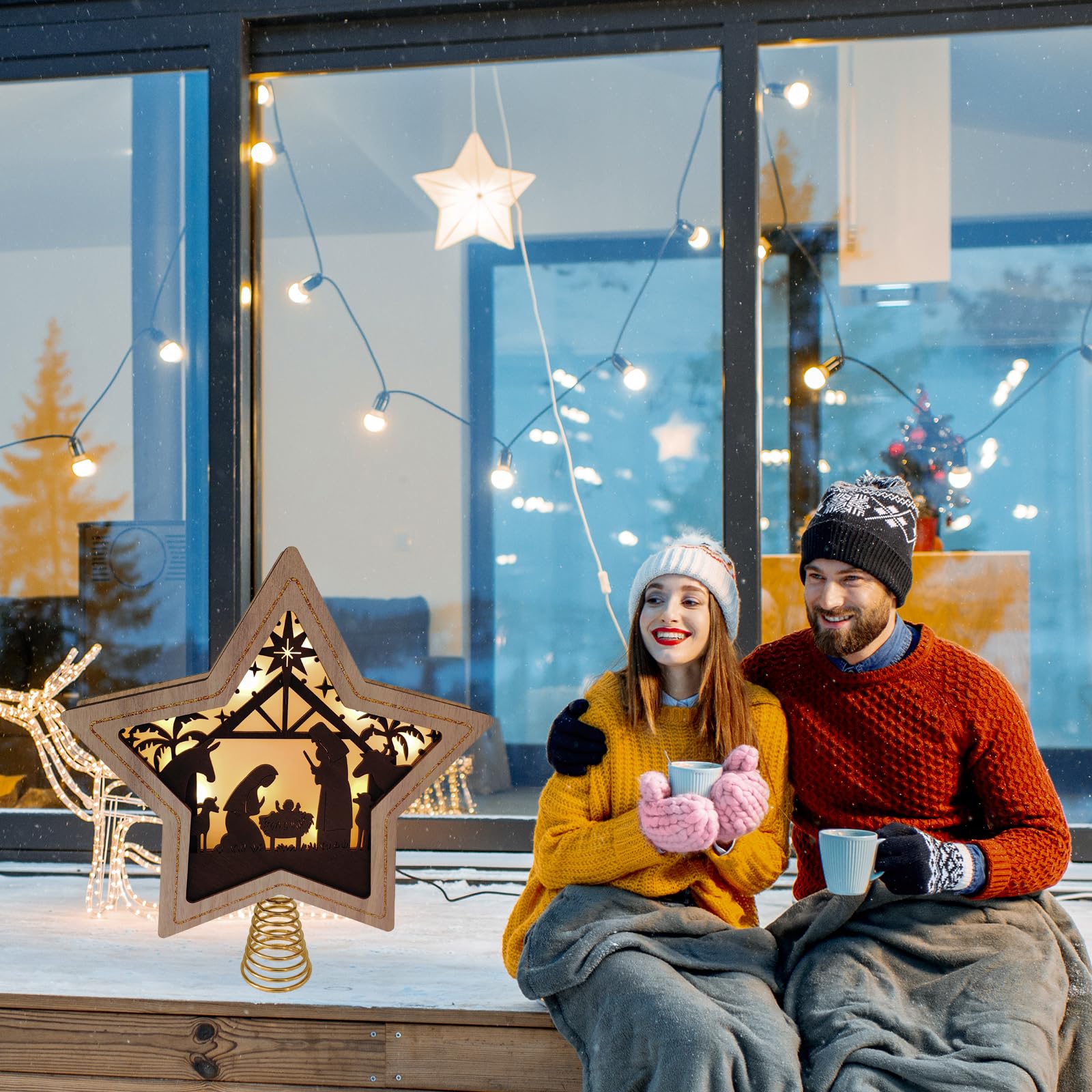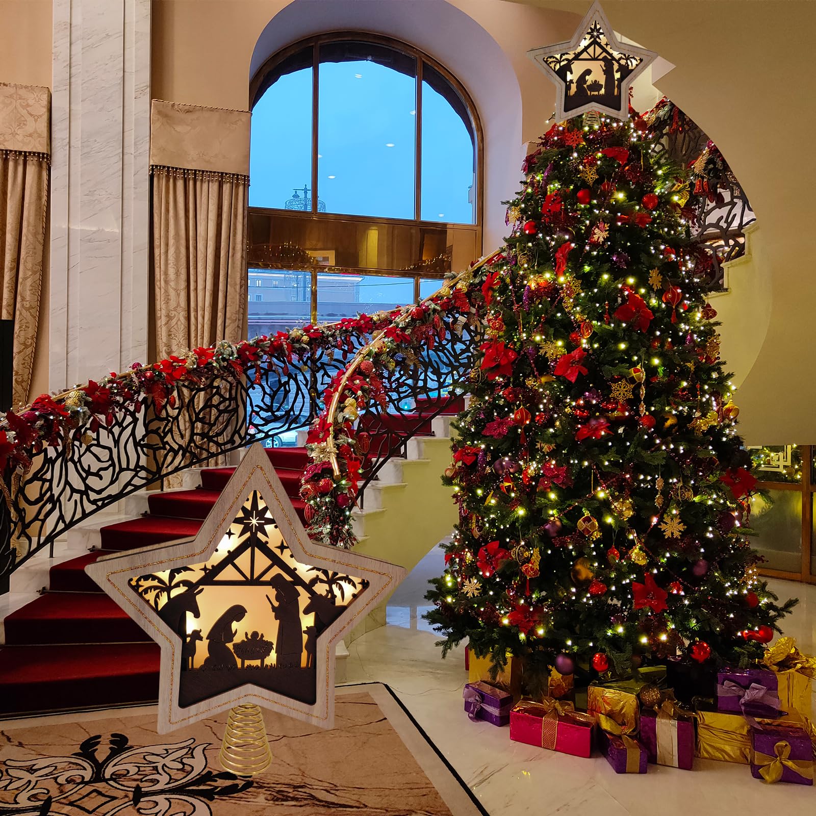 【2 in 1 Christmas Tree Topper】The star-shaped topper depicts a lighted nativity scene, which can be used to decorate the Christmas tree (after unplugging the spring) or to decorate tables, windows, offices, etc. You can put the star-shaped tree topper Place the ornament anywhere without having to connect to a nearby outlet. 【Handcrafted Nativity Scene】Illuminate your Christmas with the warm glow of the Christmas tree top. These soft, warm lights skillfully highlight the nativity scene, creating an inviting atmosphere full of the spirit of the season.