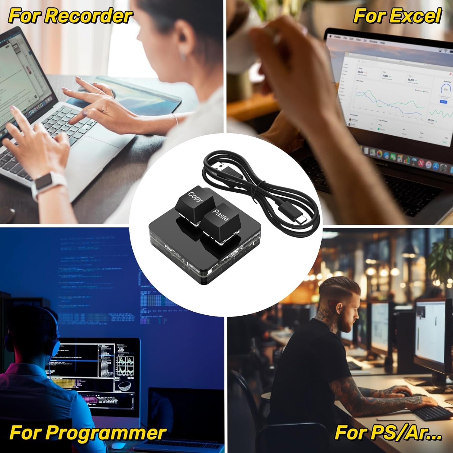 2-Key Copy Paste Keyboard, OSU Keypad HotSwap One Handed Mechanical Gaming Keyboard Backlit Mini USB Keypad for Accounting Working or Rhythm Games (Black)