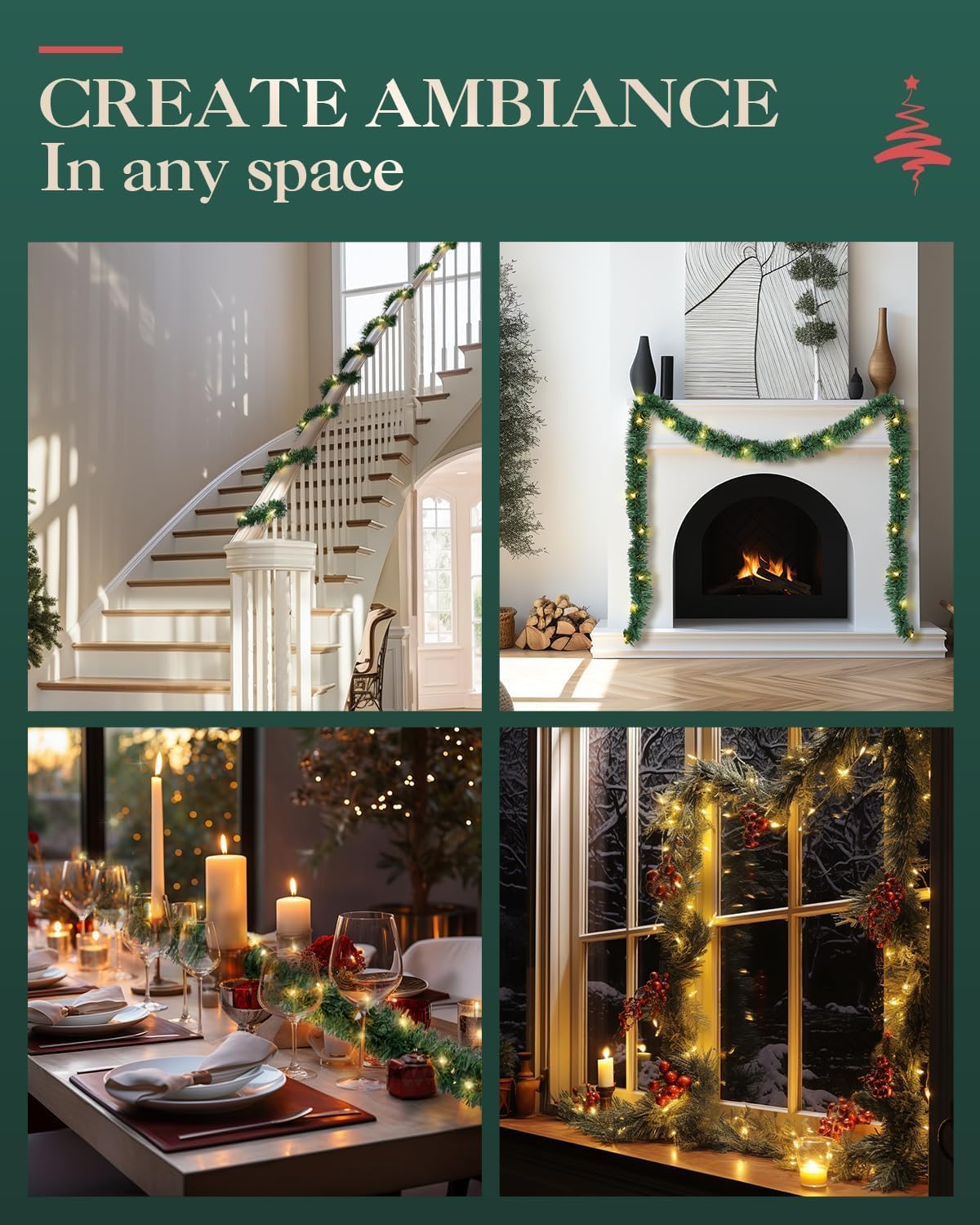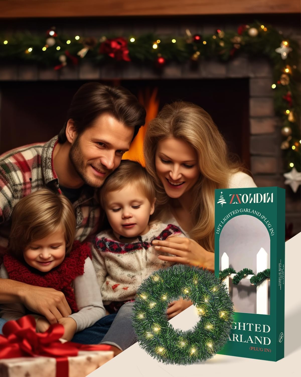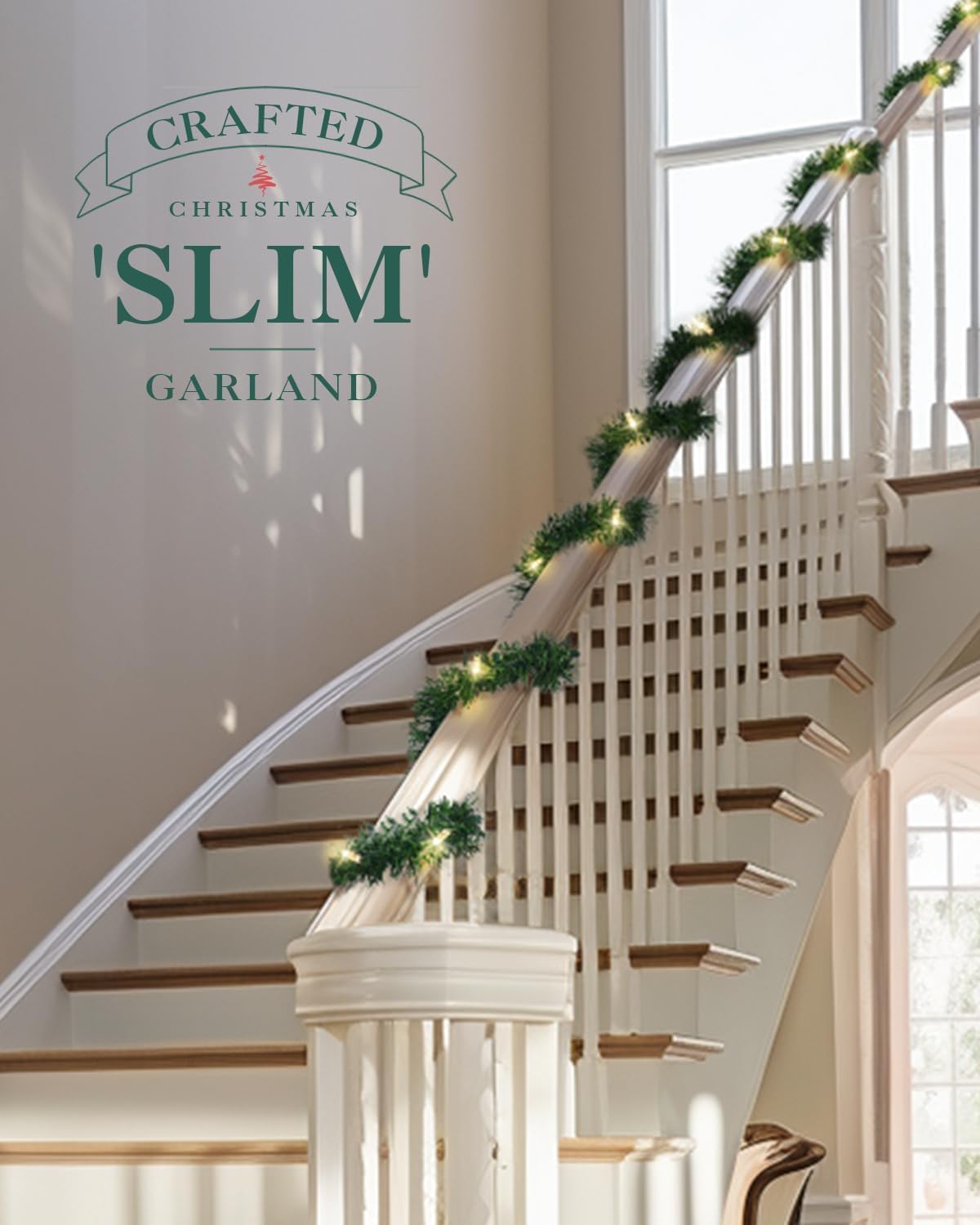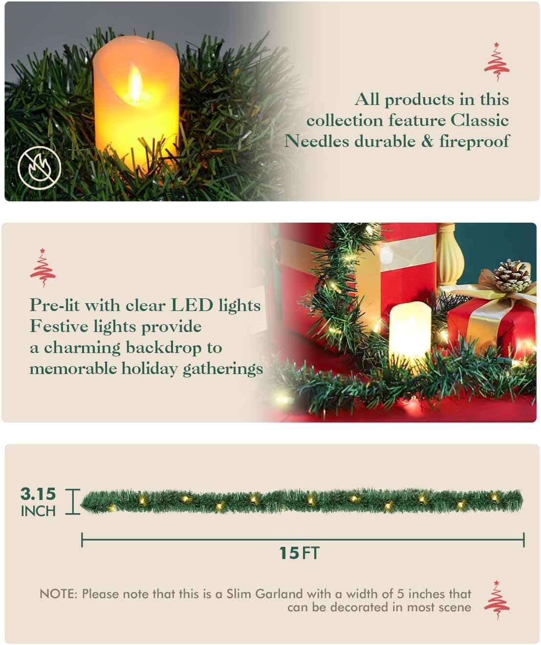 2-Pack 15FT Christmas Garland Prelit - Slim Lighted Garland with Lights, Artificial Holiday Decor for Mantle Stairs Wall Door, Indoor Outdoor 3" Thin Garlands