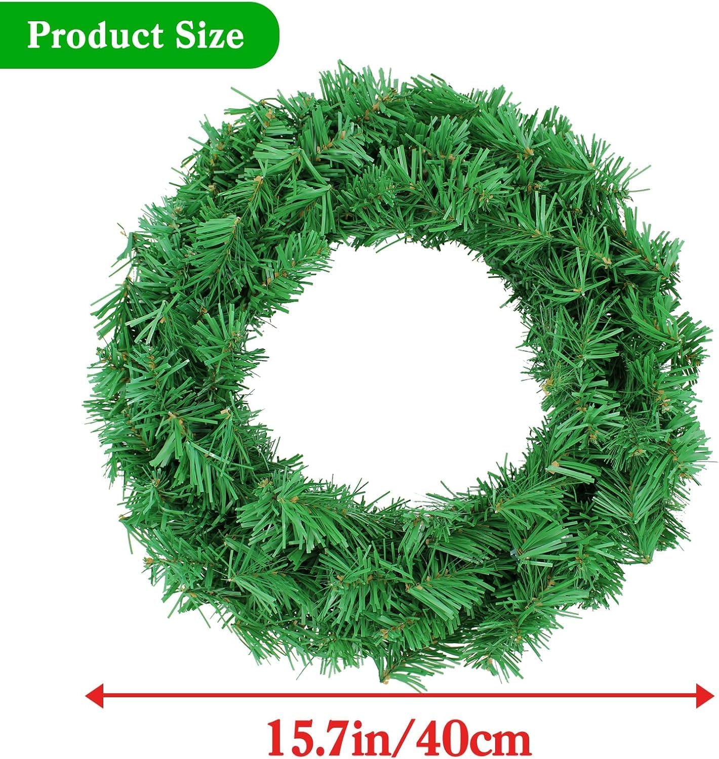 2 Pack 16 Inch Artificial Christmas Wreath, Undecorated Christmas Wreath for Front Door, Window, Wall Outdoor Holiday No-lit Winter Wreath Decorations (Green 16", 2 Pack)
