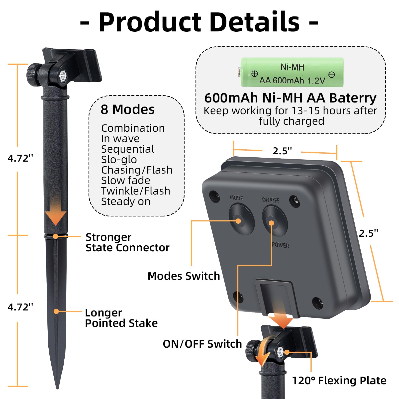 • 【All weather durability】 These patio string lights solar powered have IP44 waterproof, dustproof, and weather resistant performance, and can operate stably in wind, frost, rain, snow, and extreme heat and cold. Its sturdy and durable materials and exquisite craftsmanship ensure that they can accompany you for a long time in your yard, garden or courtyard, spending every beautiful moment.