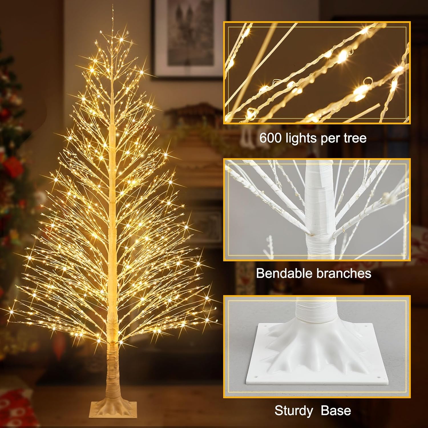 2 Pack 4ft Lighted Birch Tree LED Warm White Lights Twig Tree with Twinkle Lights Artificial Tree Light for Christmas Outdoor Indoor Home Decorations, 8 Modes