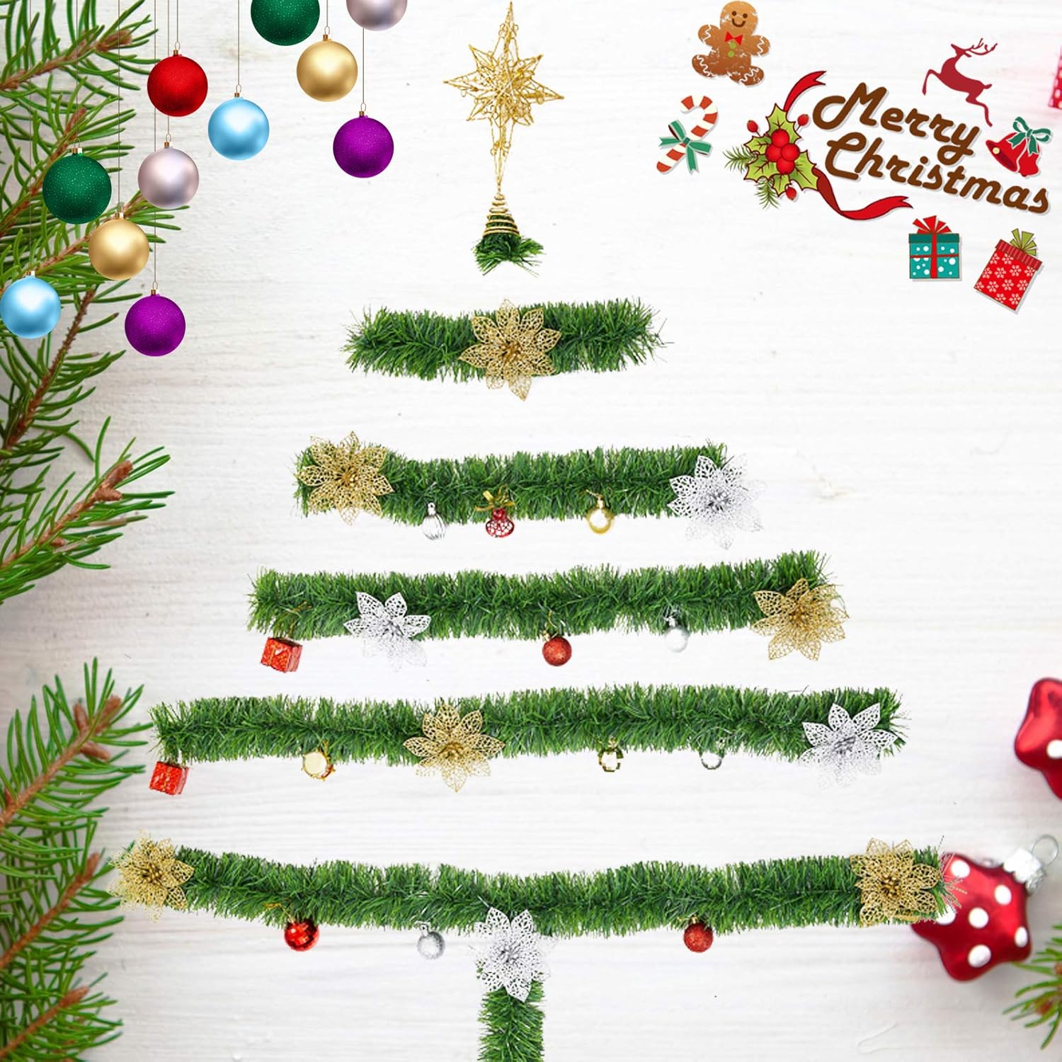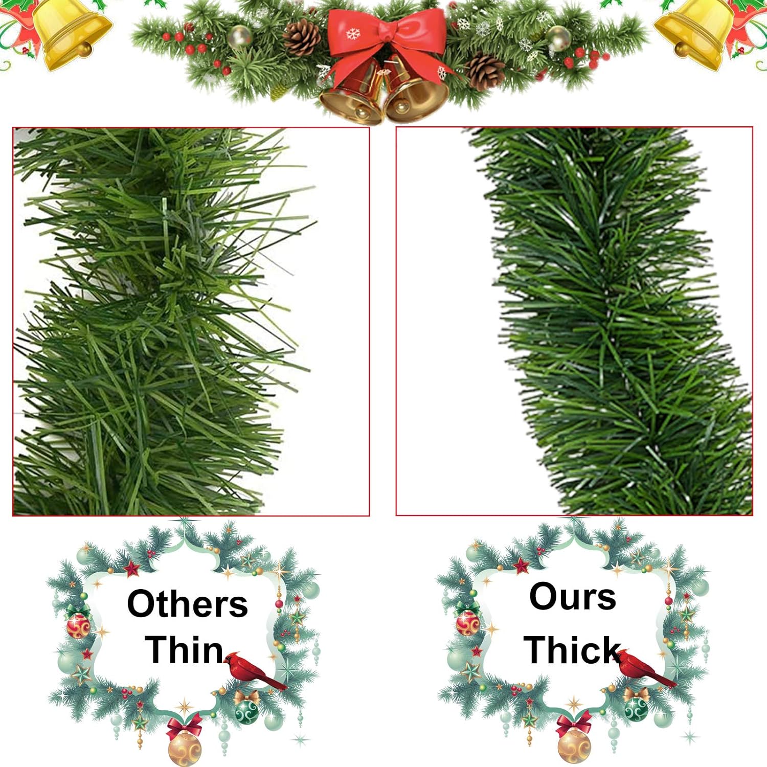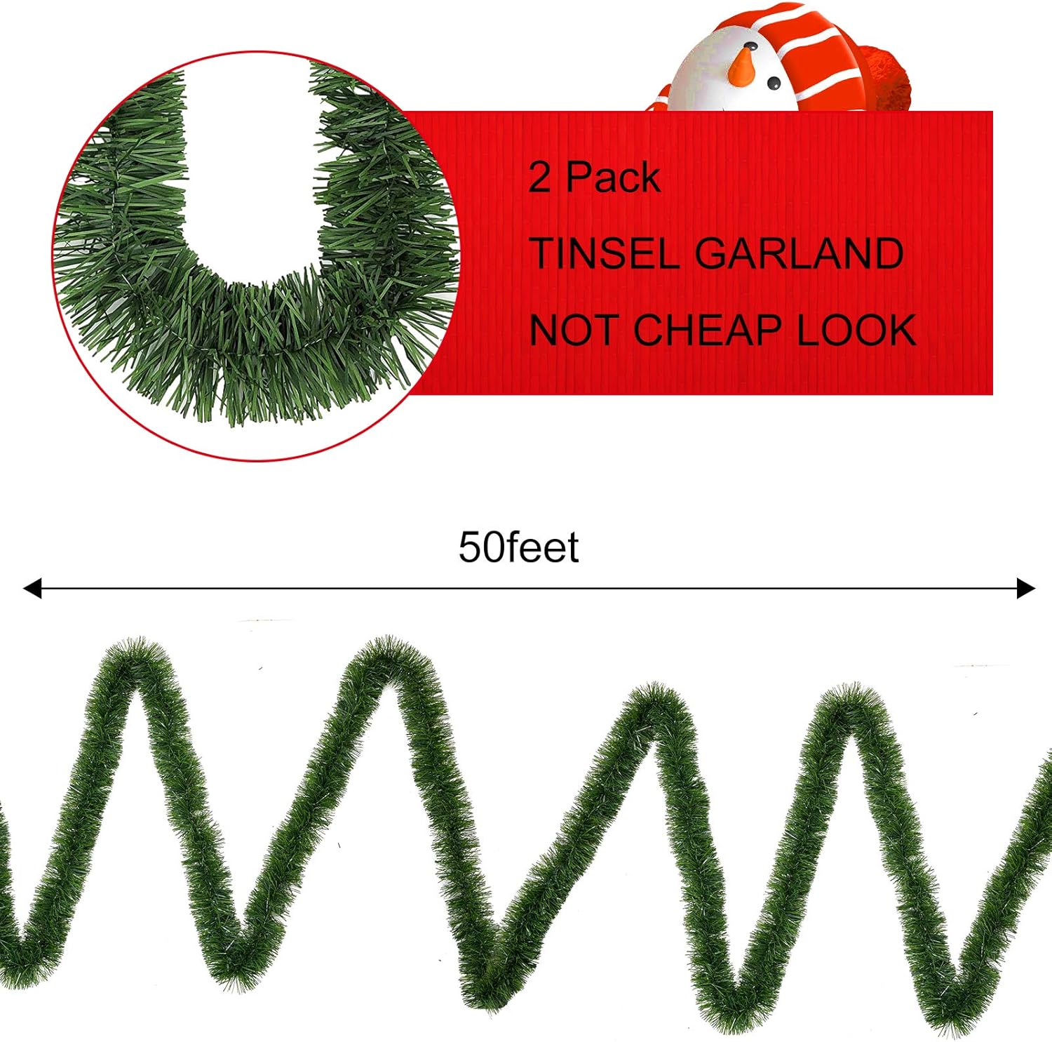 2 Pack 50 Foot Soft Christmas Garland, Non-lit Christmas Garland Ideal for Indoor and Outdoor Decor, Green Tinsel Garland for Holiday Wedding Party Decoration