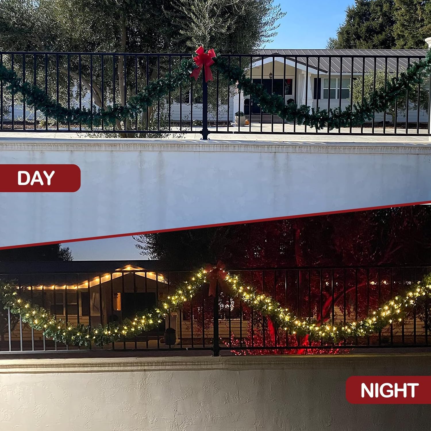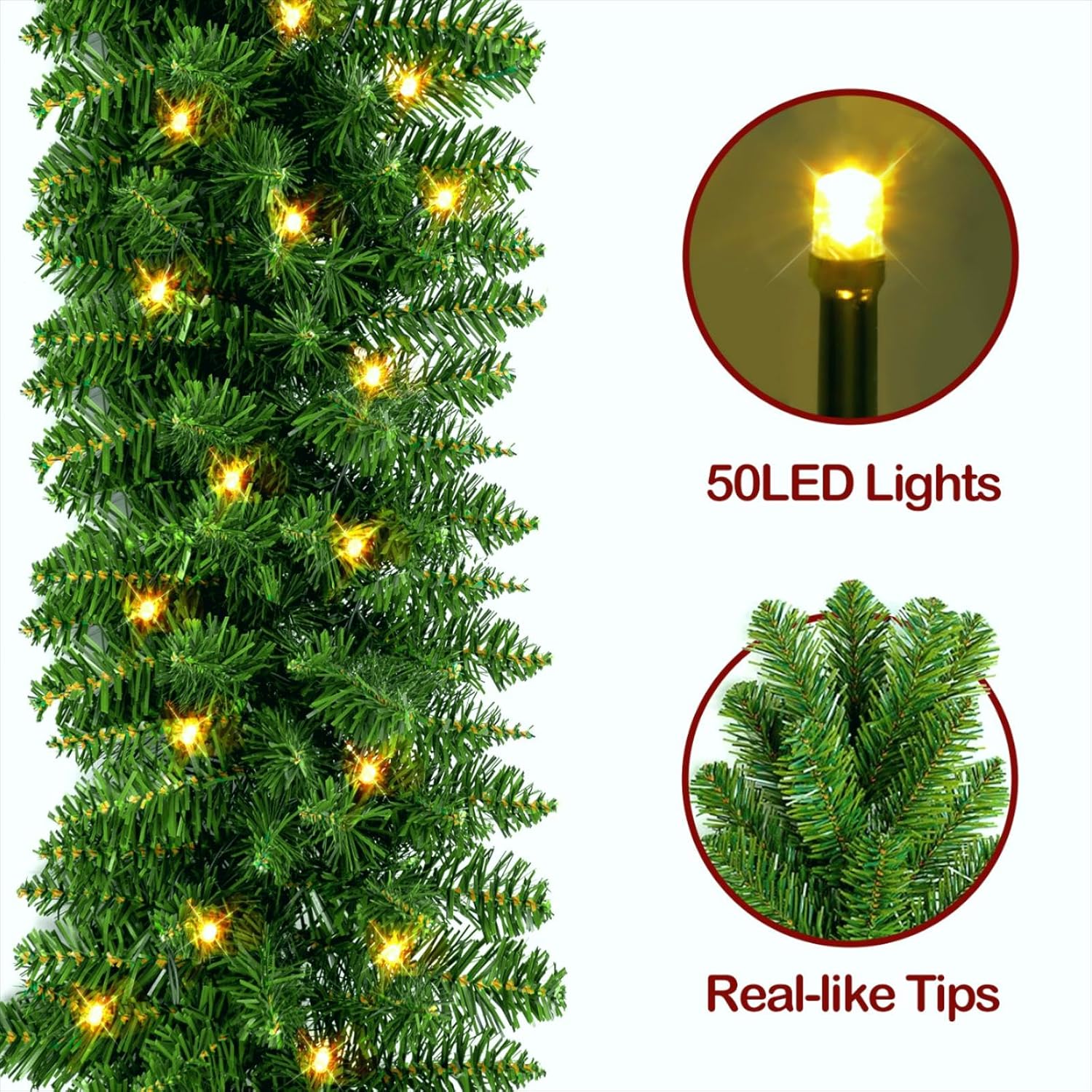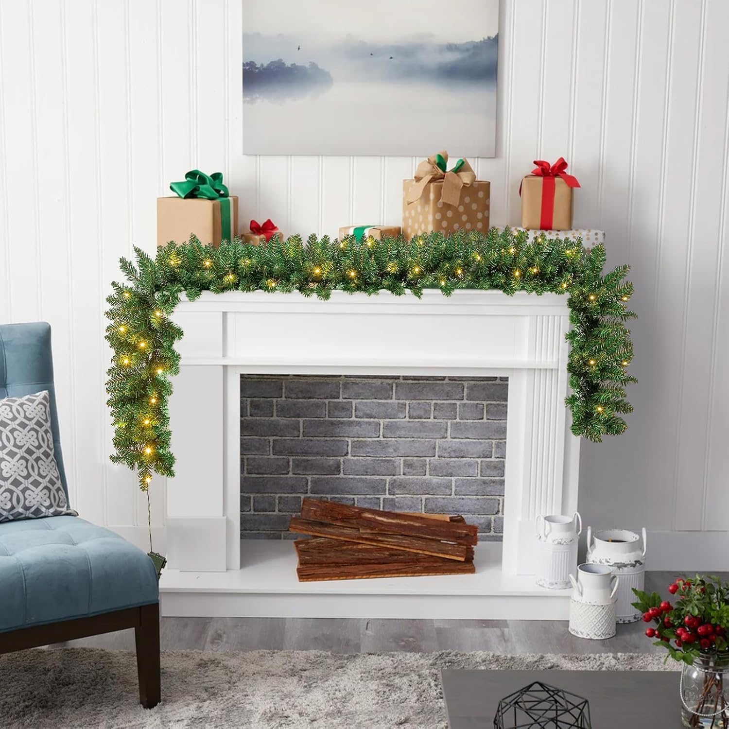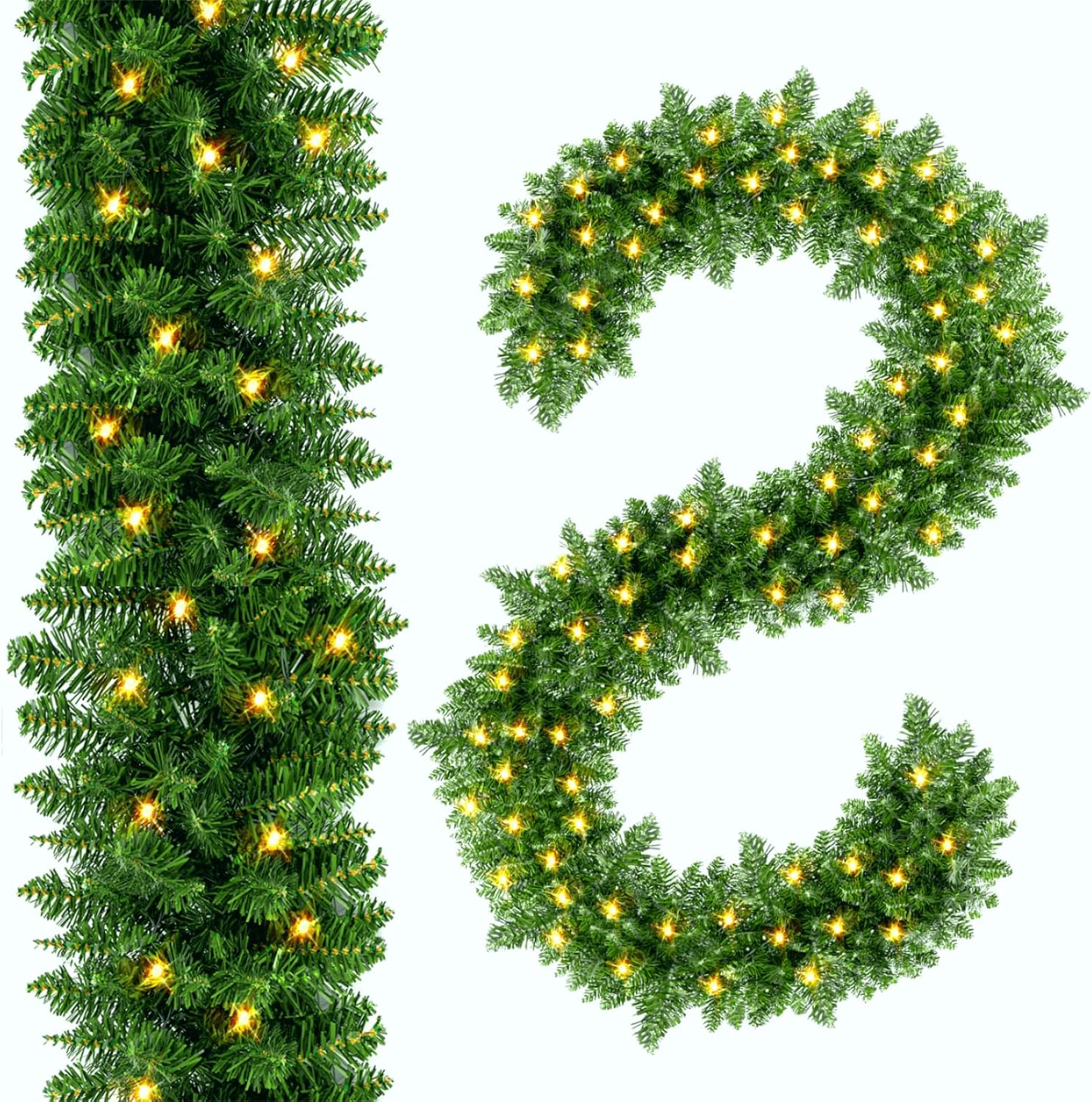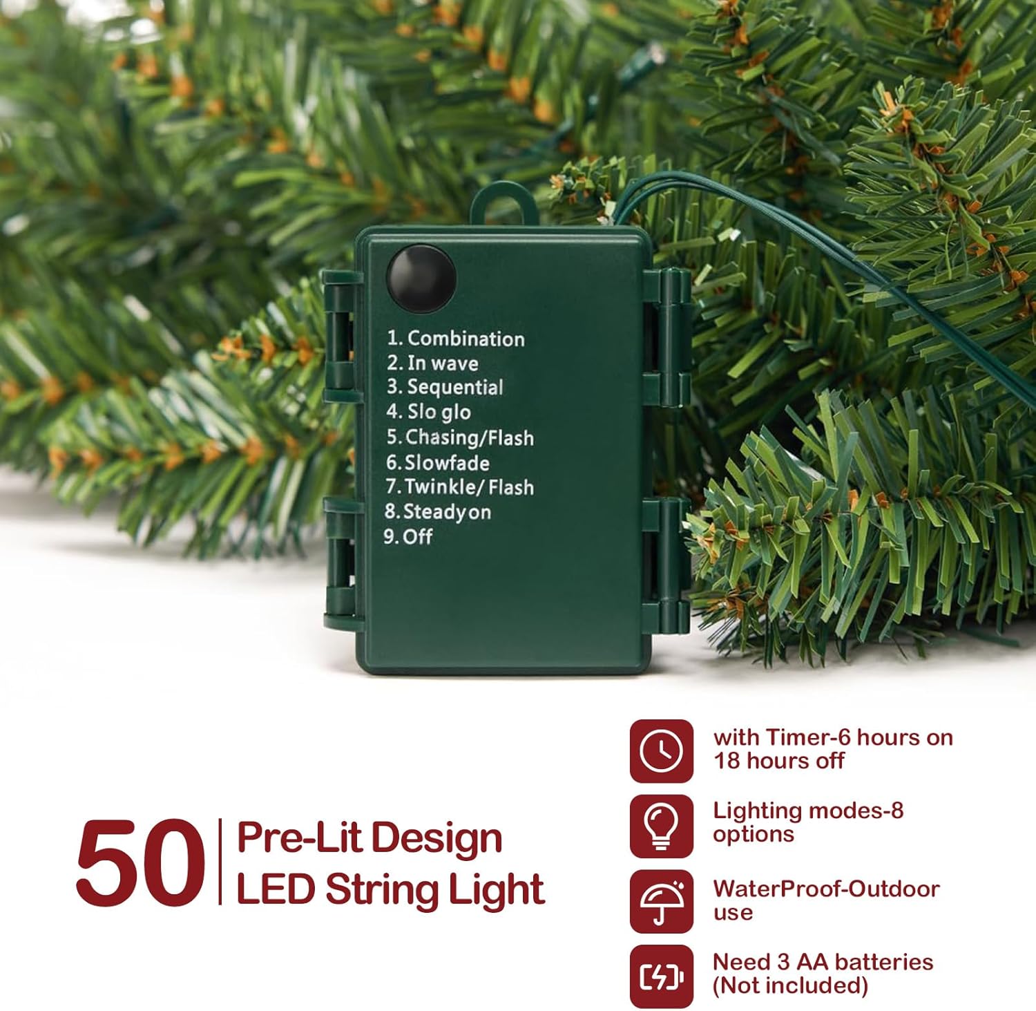 2 Pack 9FT Prelit Christmas Garland Artificial Pine Garland Decoration 50LED Battery Operated Warm Lights and Timer Xmas Garlands Decor Indoor Outdoor (Classic Green)
