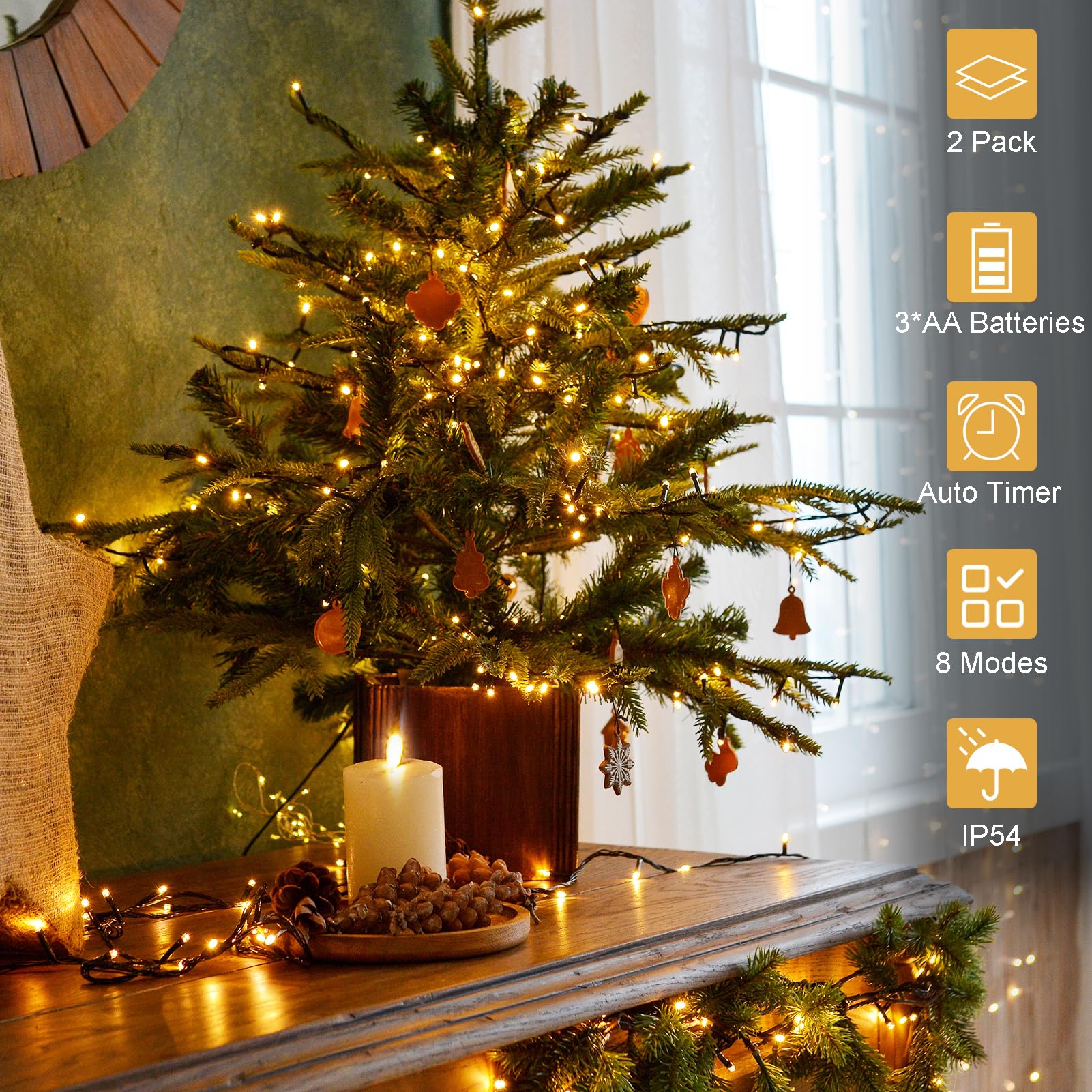 2 Pack Battery Operated String Lights, 23ft 70 LED String Lights with Auto Timer 8 Modes Outdoor Waterproof Twinkle Fairy Lights for Wedding Party Wreath Tree Decoration (Warm White)