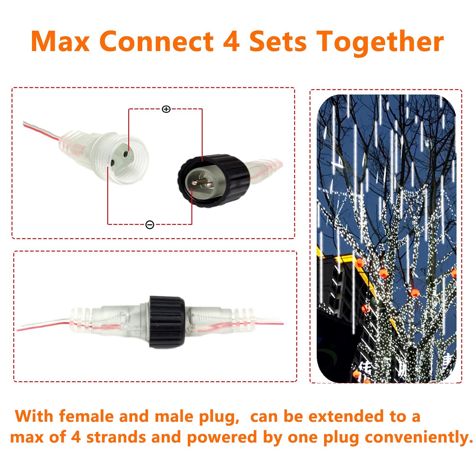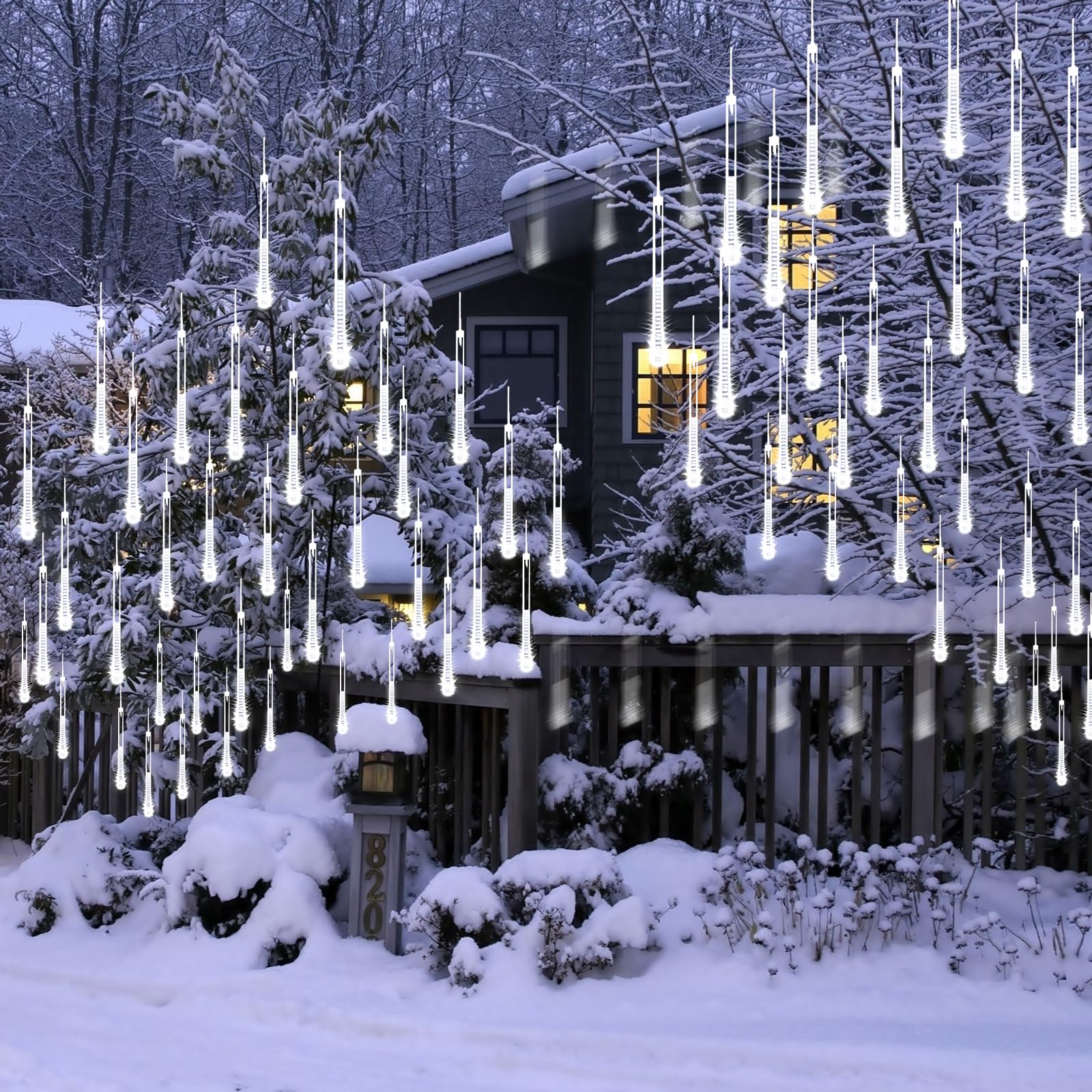 2-Pack Christmas Decorations Lights Outdoor, Total 384LED Meteor Shower Lights Rain Drop Lights 30cm 16 Tubes Indoor Outdoor Snow Cascading String Lights for Xmas Tree Roof Party Garden (Cool White)