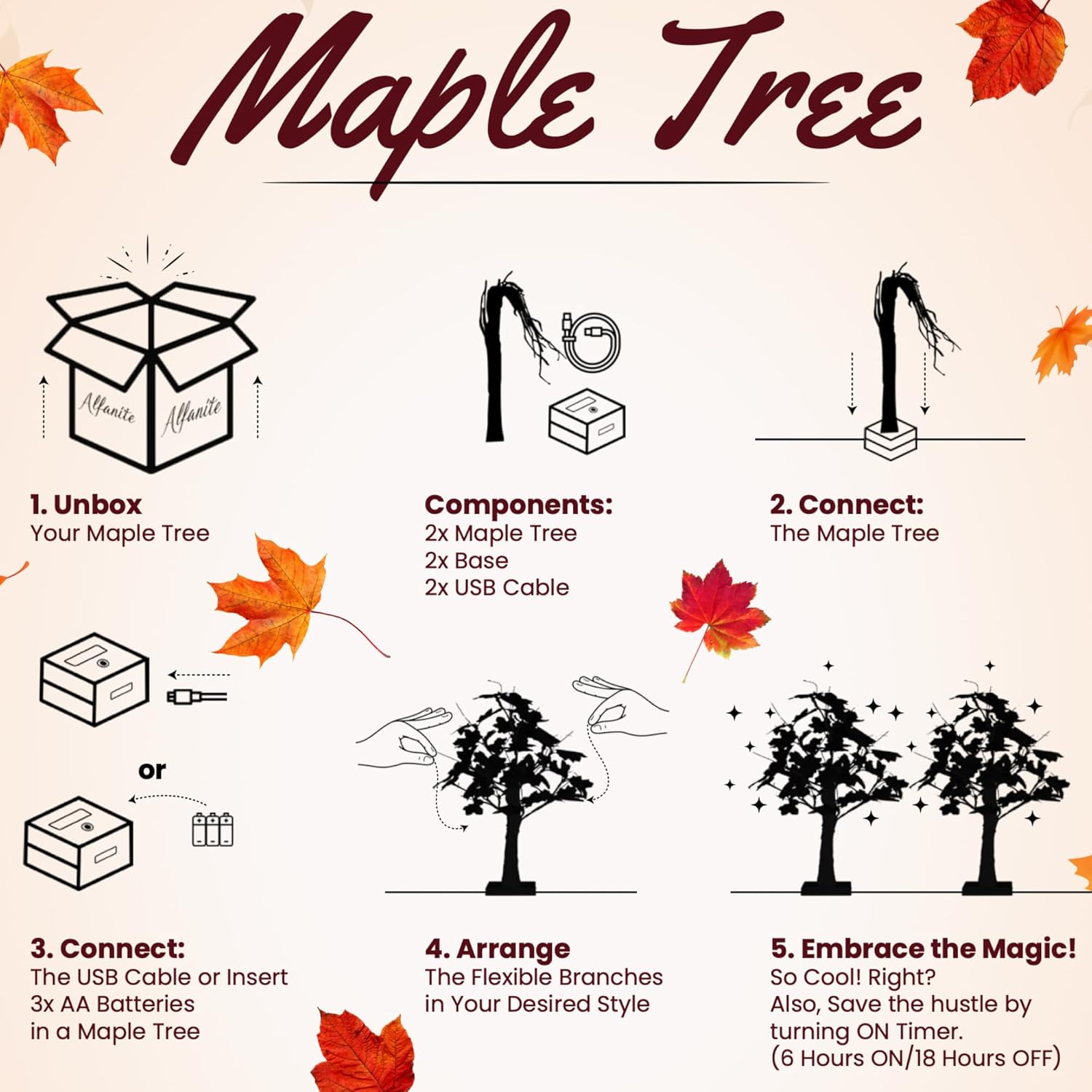 2 Pack Fall Lighted Maple Tree, 48 LED Lights, USB+Battery Operated 24-inch Thanksgiving Table Centerpieces Decoration Artificial Tree Fall Decorations for Office Home Tabletop Indoor Decor Kitchen