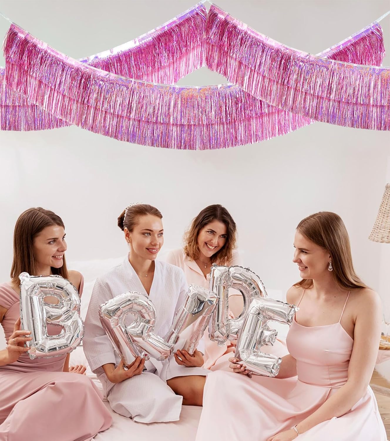 2 Pack Glitter Pink Foil Fringe Garland-4 Layers Thick Shiny Metallic Tinsel Streamers, Hanging Fringe Banner for Wedding Christmas Decoration Home Hanging Parade Floats