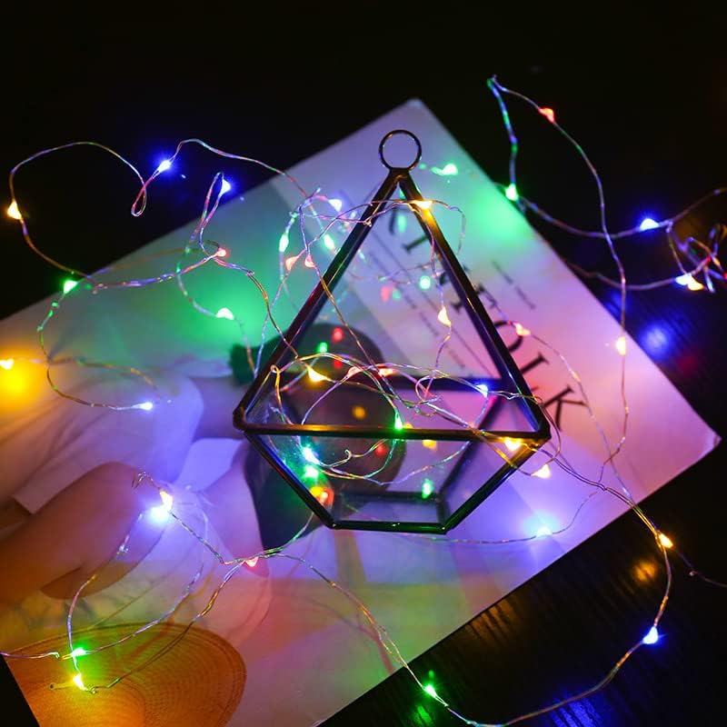 2 Pack Multi Color Led Fairy Lights Battery Operated String Lights Waterproof Silver Wire 7 Feet 20 Led Firefly Starry Moon Lights for DIY Wedding Party Bedroom Patio Christmas