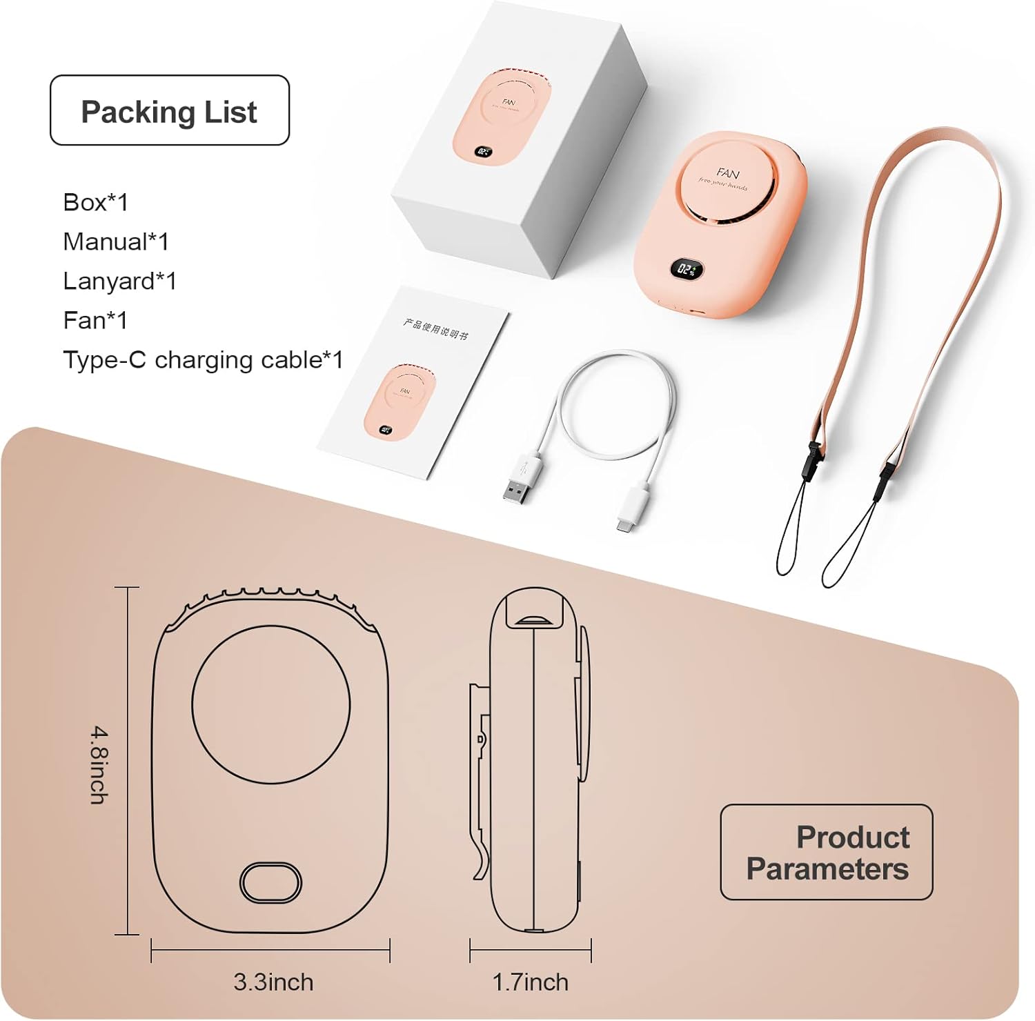 2 Pack Portable Neck Fan, Hanging Neck Fan Hands Free With Adjustable Lanyard And Bracket, Usb Rechargeable Bladeless Mini Fans