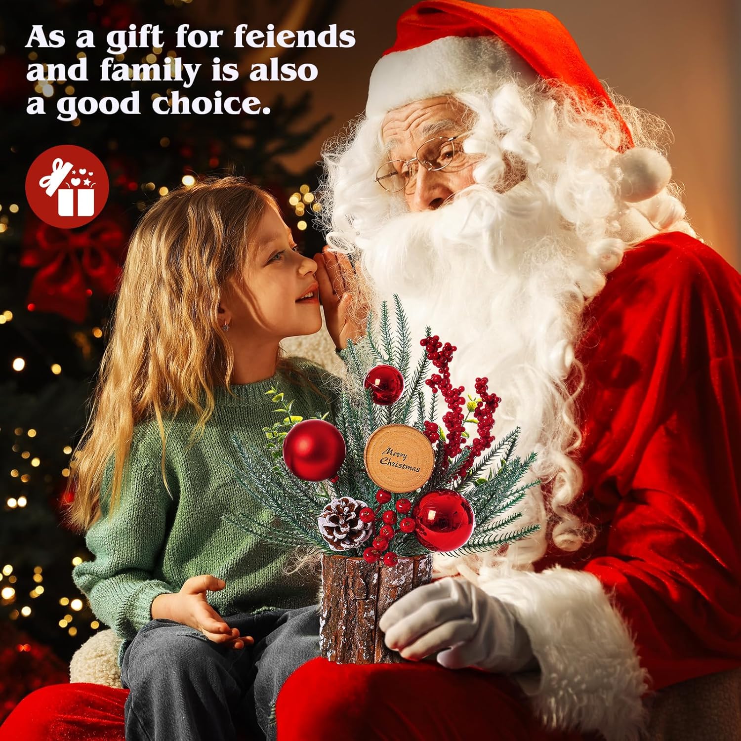 2 Pack Small Christmas Trees, 13.8'' Tall Tabletop Mini Christmas Tree Decorations with Ornaments Pine Cone Berry for Christmas Home Room Indoor Decor