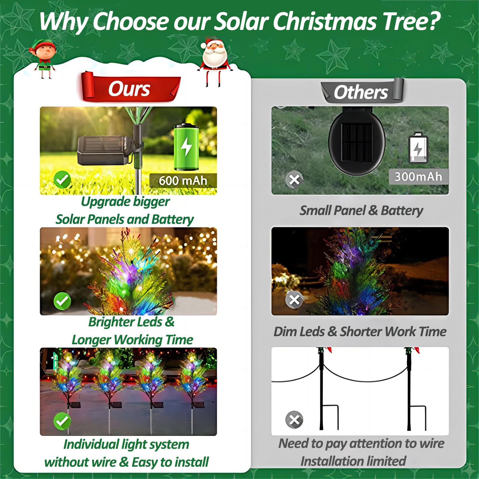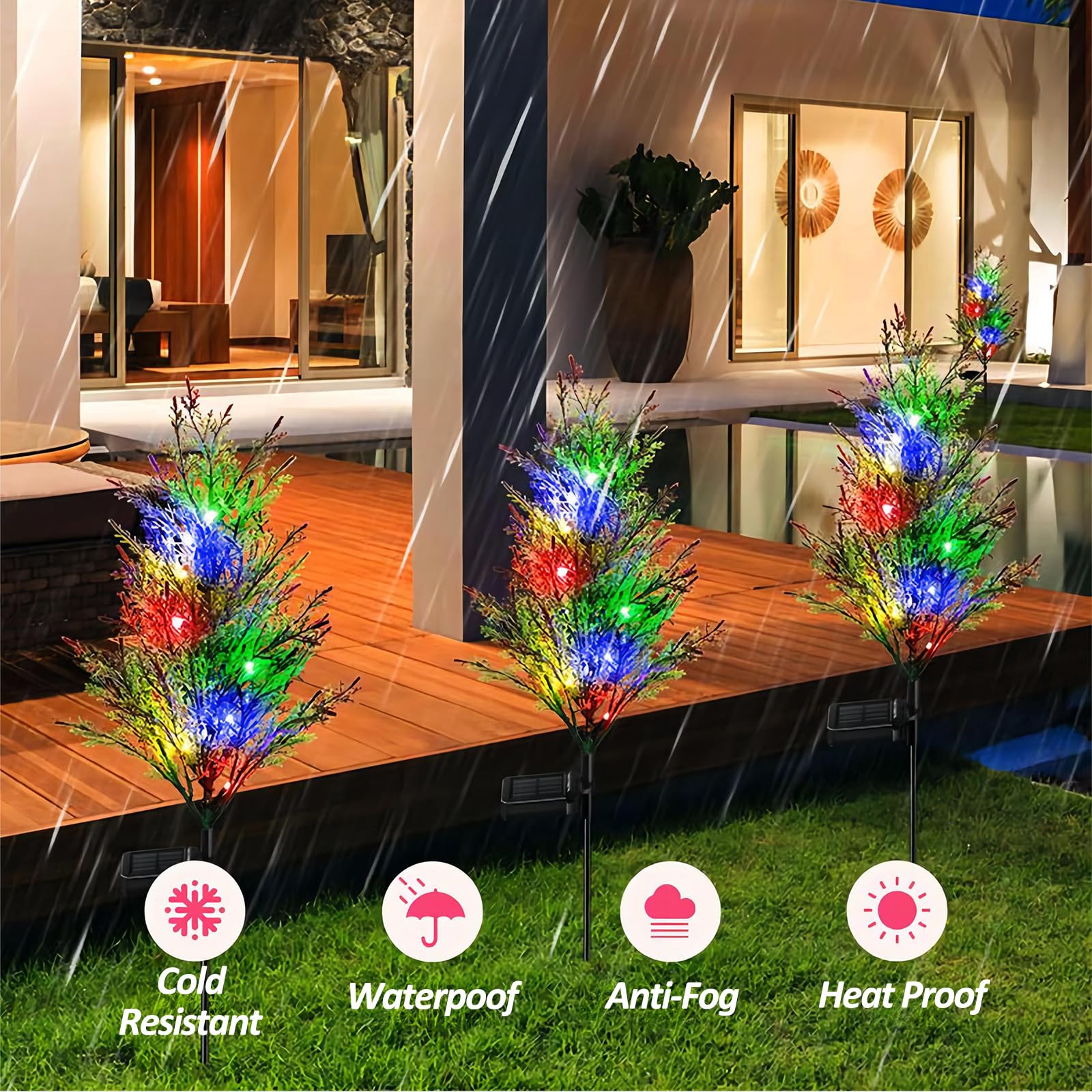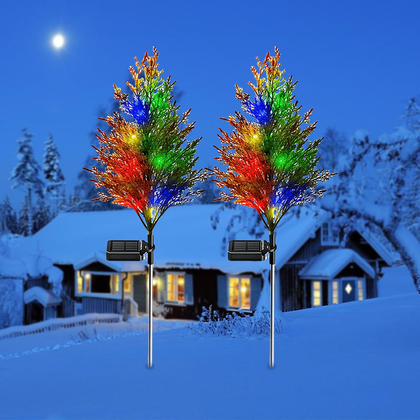 Wide Application: The solar Christmas tree lights are about 31 inches tall and made of high-quality ABS material that simulates the shape of pine and cypress leaves for a beautiful appearance. High quality light beads wrap around trees and are ideal for gardens, trees, flowers, flower beds, fences, lawns, sidewalks, campgrounds and landscape streetlights. Colorful lighting effect: The light bead consists of 8 F5 RGB lamp beads, high-quality lamp beads have colorful lighting effects, light flicker, long life, and look very beautiful at night. It can be used as a decoration for various festivals, such as Christmas, but also for weddings, beaches and parties.