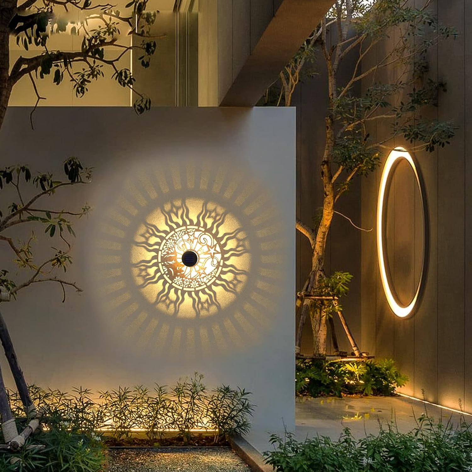 Dimensions:Black, 2 Pack, Sun Moon Pattern.Instructions:1. You need to turn on the ON/OFF switch on the solar panel, keep the switch in the ON position.2. You need to charge the solar fence lights in the sun for 68 hours.3. You need to use screws to fix these outdoor solar lights on the wall, fence or other places.4. You can see the fence solar lights light up in the evening or at night.5. In winter, remove the snow or the dust from the solar panel so that it can be better charged. The working hours normally reduce at winter due to the soft/weak sunlight.The reason why the solar light is not on:1. The ON/OFF switch is not turned on.2. The solar powered outdoor lights are not being charged.3. The solar deck lights are placed under strong light or sunlight.4. If none of the above conditions, the solar fence lights may be broken, please let us know.Notice:1. Dimensions are manually measured. There may be a little errors.2. The picture may be slightly different from the actual product.3. Each product has passed quality inspection before leaving the factory, but we cannot that the product will not be damaged during transportation. If there is a problem with your product, please feel free to let us know.