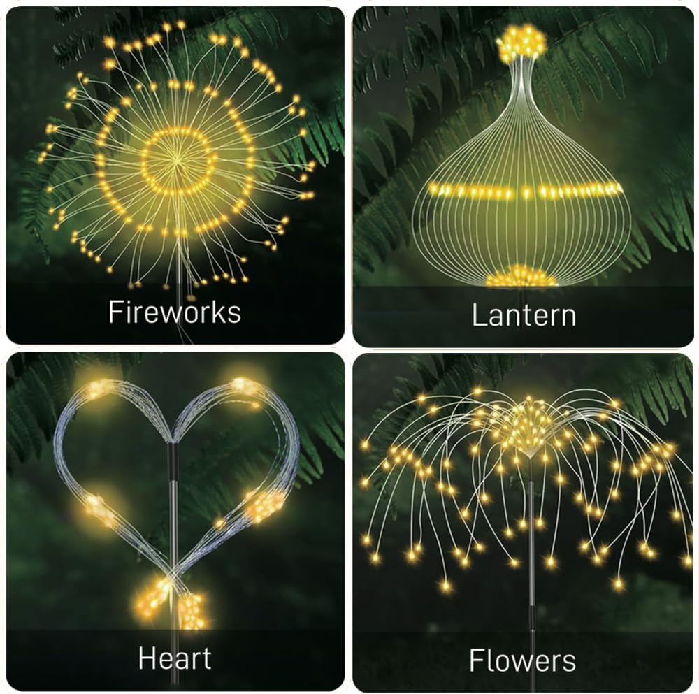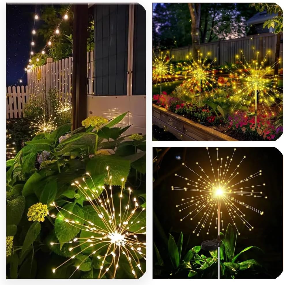2 Pack Solar Firework Lights for Outdoor Decor,200 LEDs 8 Modes Solar Fairy Garden Lights, Solar Starburst Lights for Landscape Yard Pathway Flowerbed Christmas Decorative,Warm White