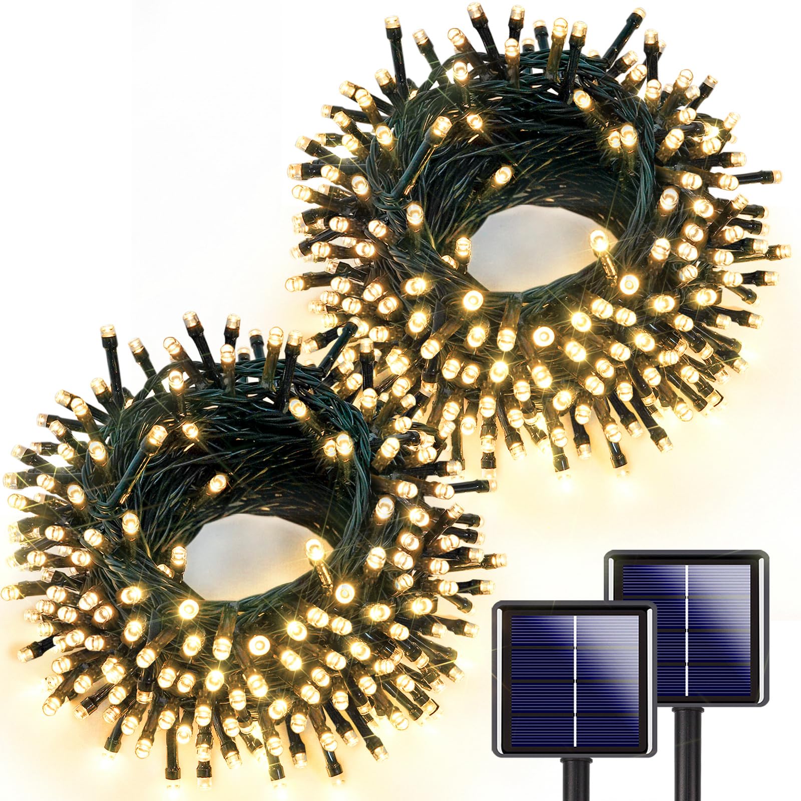 • Auto ON/OFF & 8 Flashing Modes & Memory Function: Our outdoor solar twinkle lights turn off automatically during the day and absorb sunlight through the solar panel, turn on automatically at night. 8 different lighting modes meet your various needs, all create a stunning atmosphere. And the build-in memory chip saves your last setting without resetting the mode again.