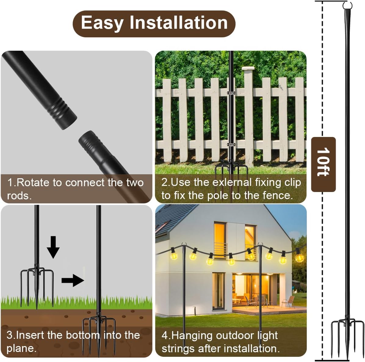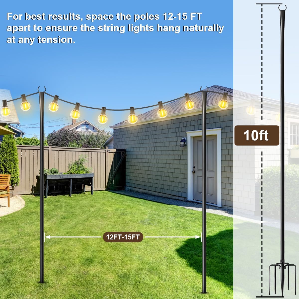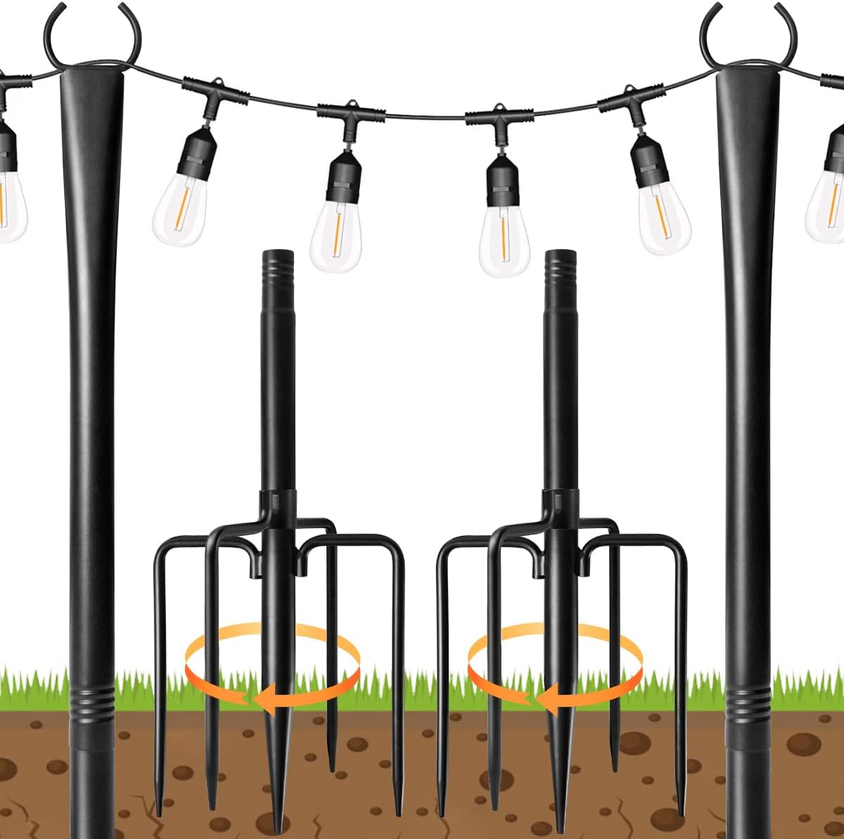 2 Pack String Light Poles for Outside, Metal Christmas Lights Hanger Pole Outdoor with Fork, Lighting Hanging Pole for Patio Garden Backyard Yard Camping Party