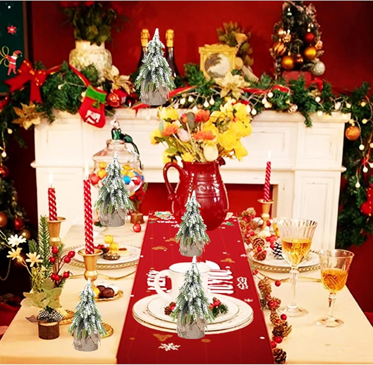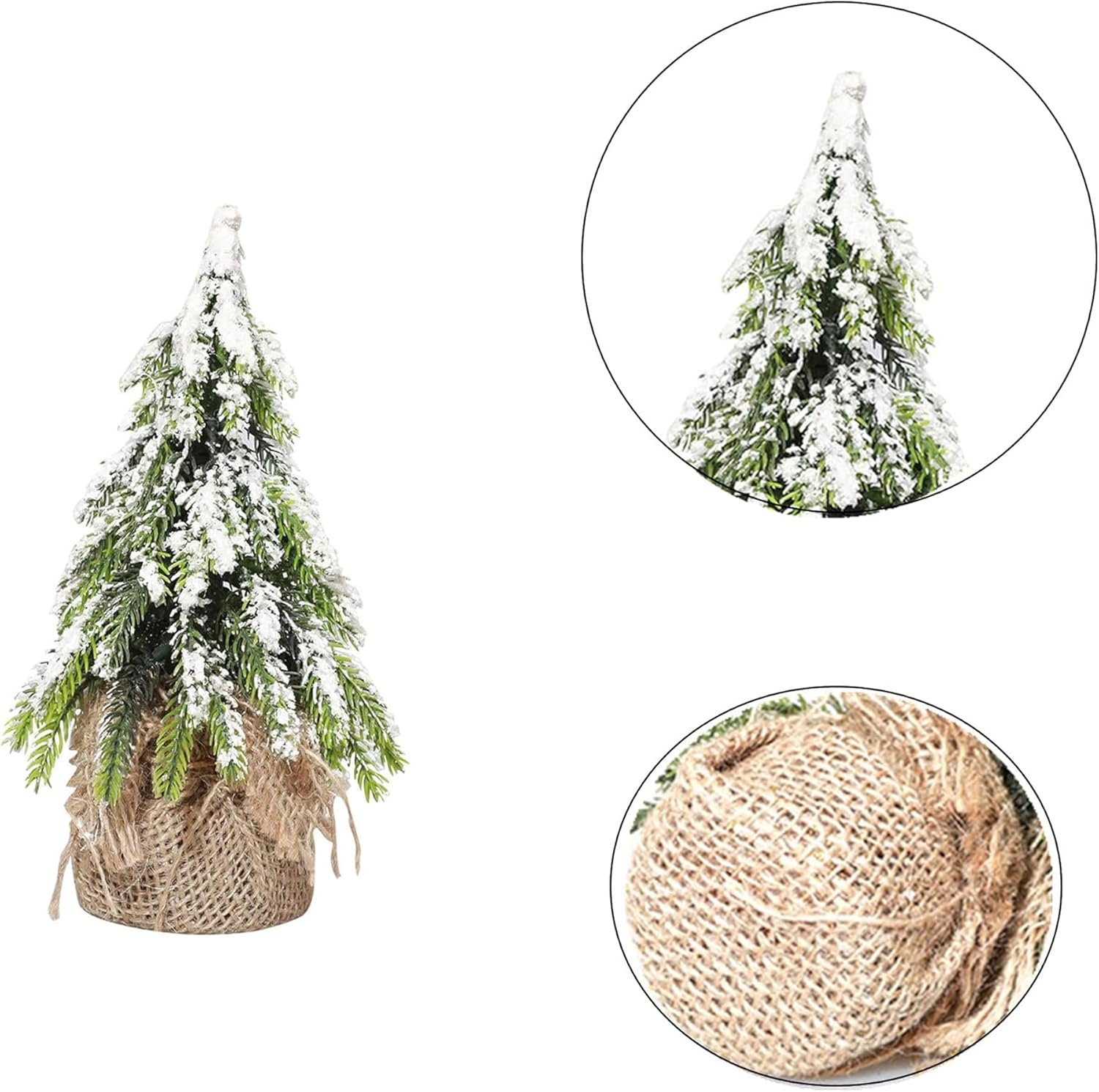 2 Pack Tabletop Mini Christmas Tree, 5.5 inch Artificial Flocked Desktop Christmas Tree with Burlap Base and Snow, Miniature Pine Christmas Tree Perfect for Christmas Home, Party Decorations