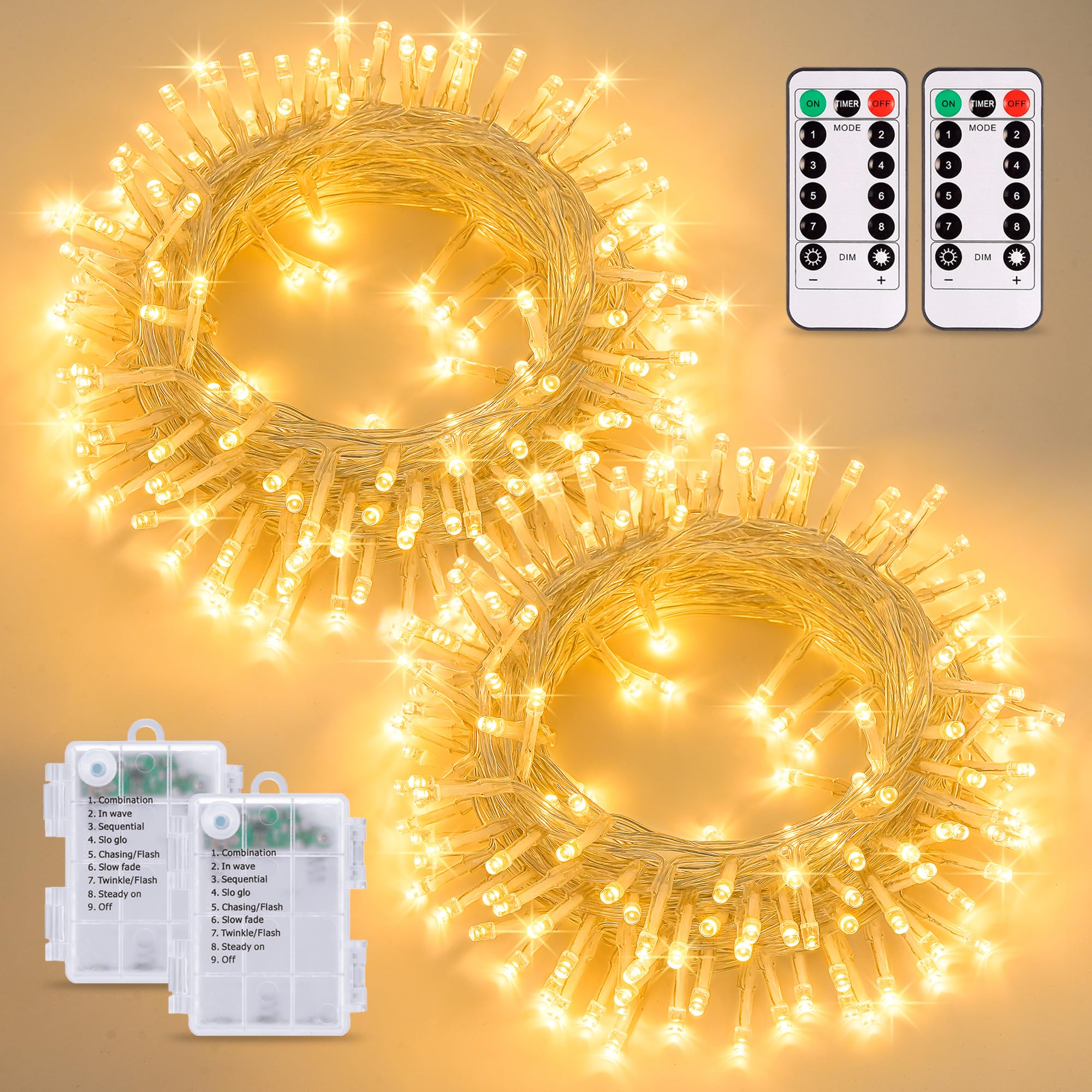 【2 Pack Battery Operated Christmas Lights】Total 200LED 66 FT battery Christmas lights can be used in more places,enough for your daily and Christmas decorations, so thoughtfully designed led Christmas lights indoor will make you more satisfied with the effect of decoration.Light up the Christmas season with a warm glow and bring sparkle and charm 【Outdoor Battery Operated String Lights】Say goodbye to the hassle of searching for outlets with our led string lights battery operated. No socket required,easy to portable and can install anywhere for decoration.Our battery string lights outdoor greatly improves the portability of the lights and bring you a romantic and happy atmosphere, enjoy the joyful time