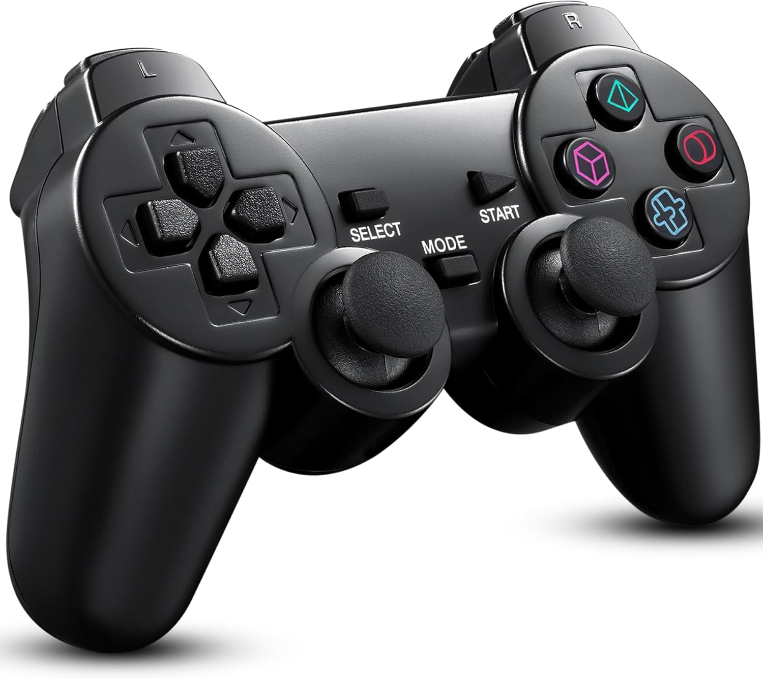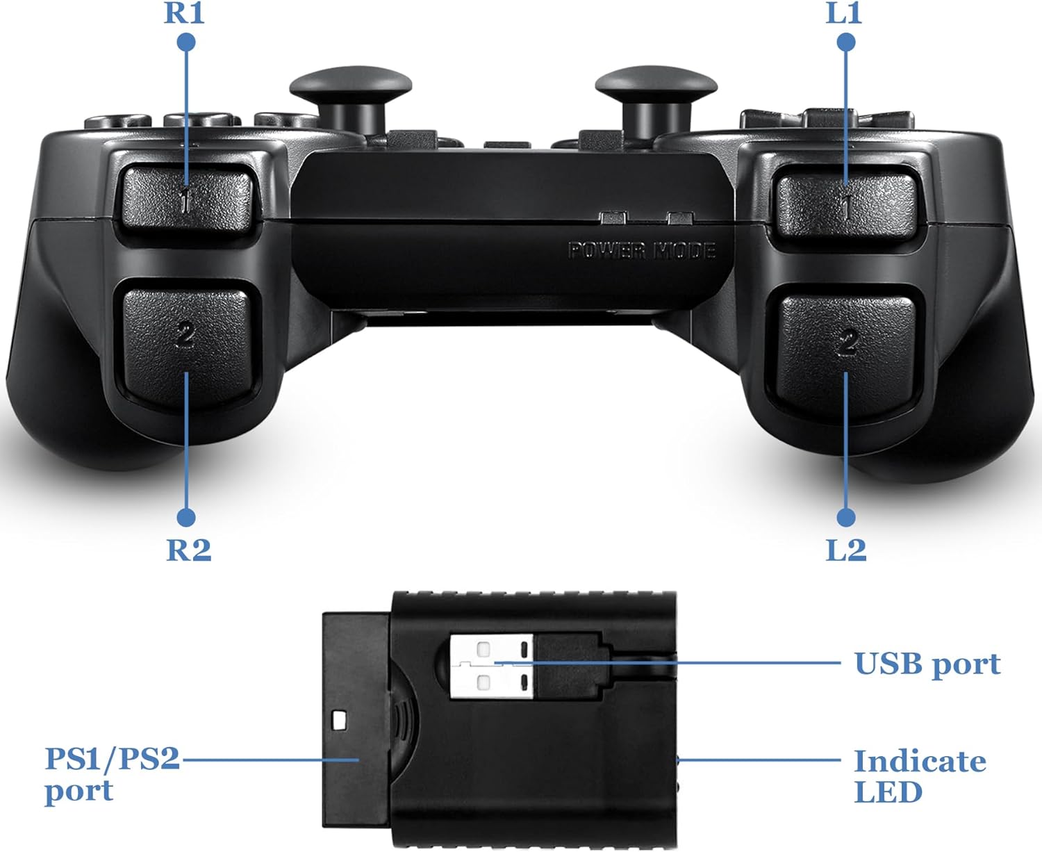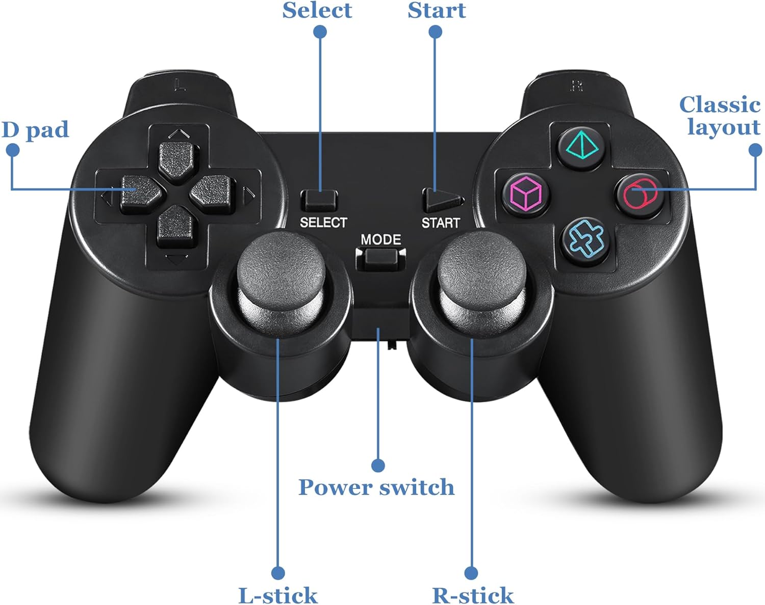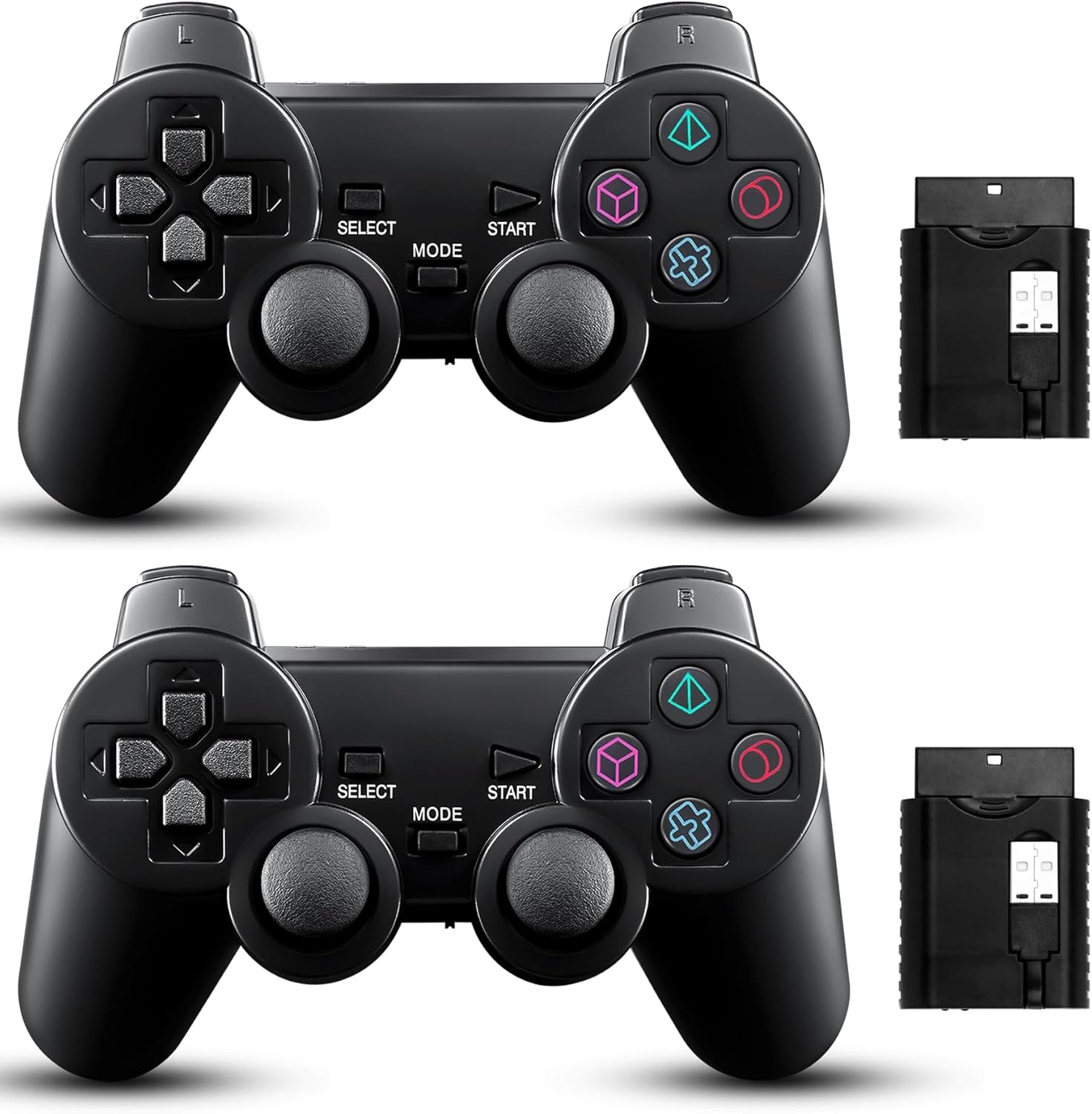 2 Pack Wireless Controller 2.4G double shock Compatible with PS2 /PS1/PC(Jet Black)