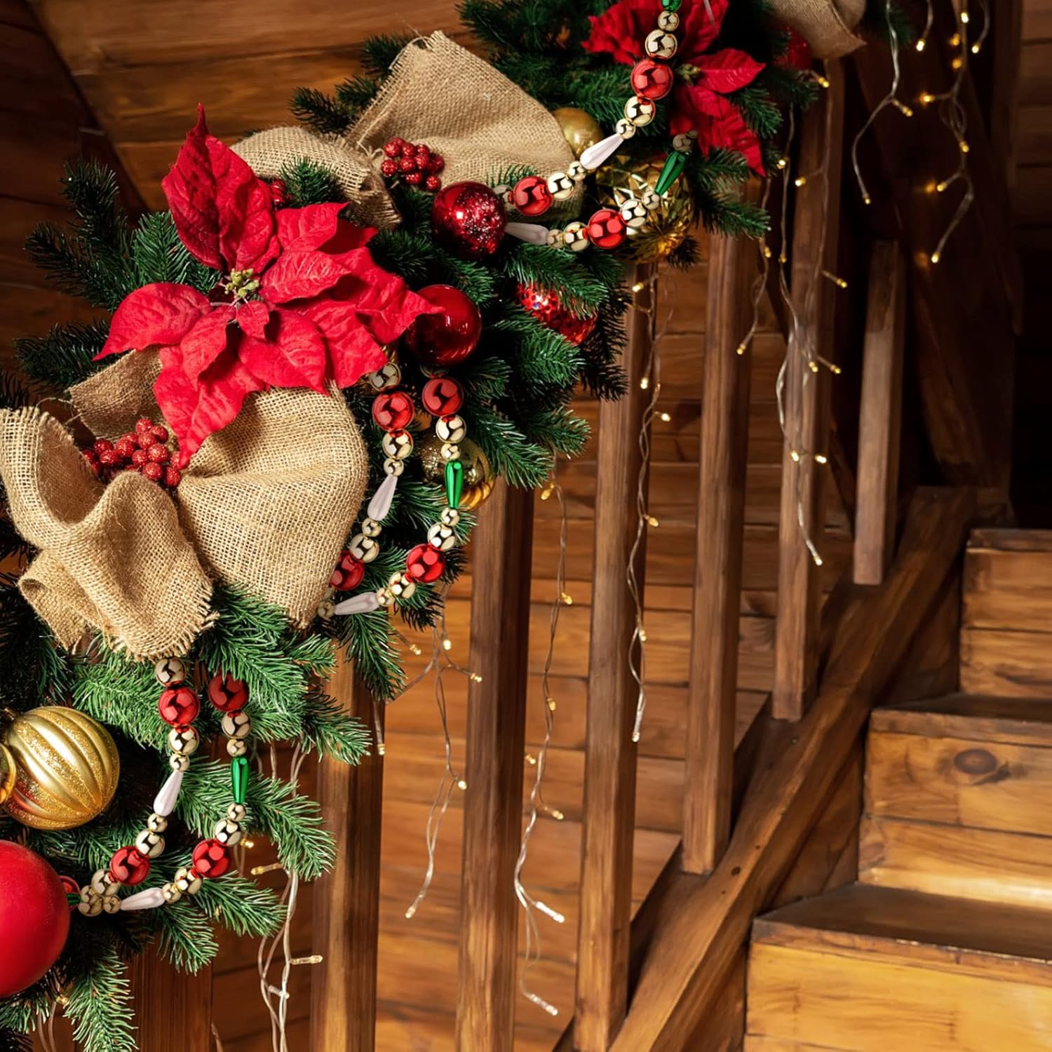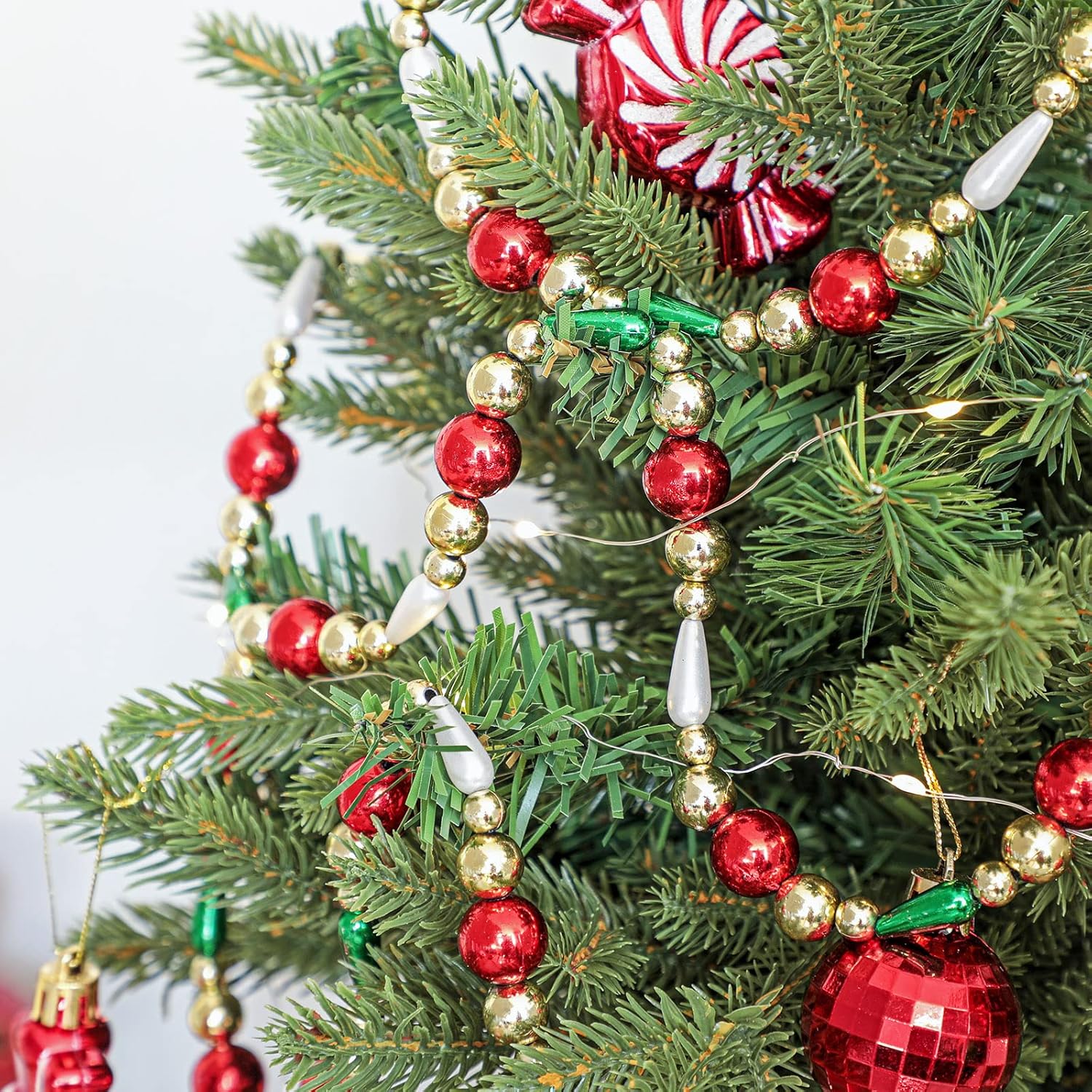 2 Pcs 6.5 Feet Christmas Garland Christmas Bead Garland Plastic Bead Christmas Tree Decor Beaded Garland for Xmas Party Supplies Holiday Favors Farmhouse Wall Staircase Fireplace Hanging Ornaments