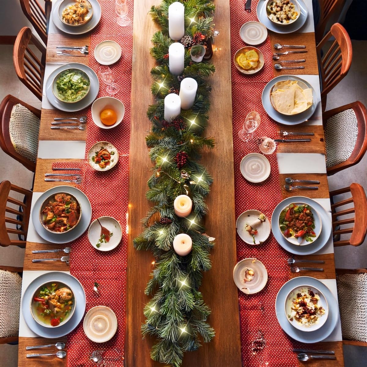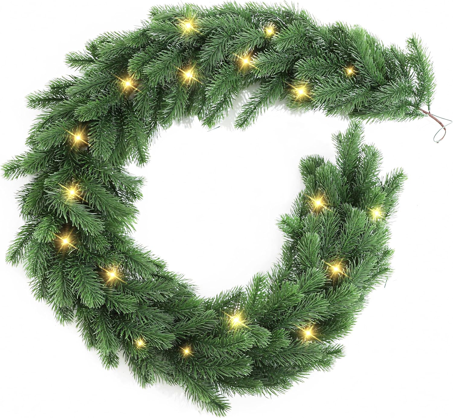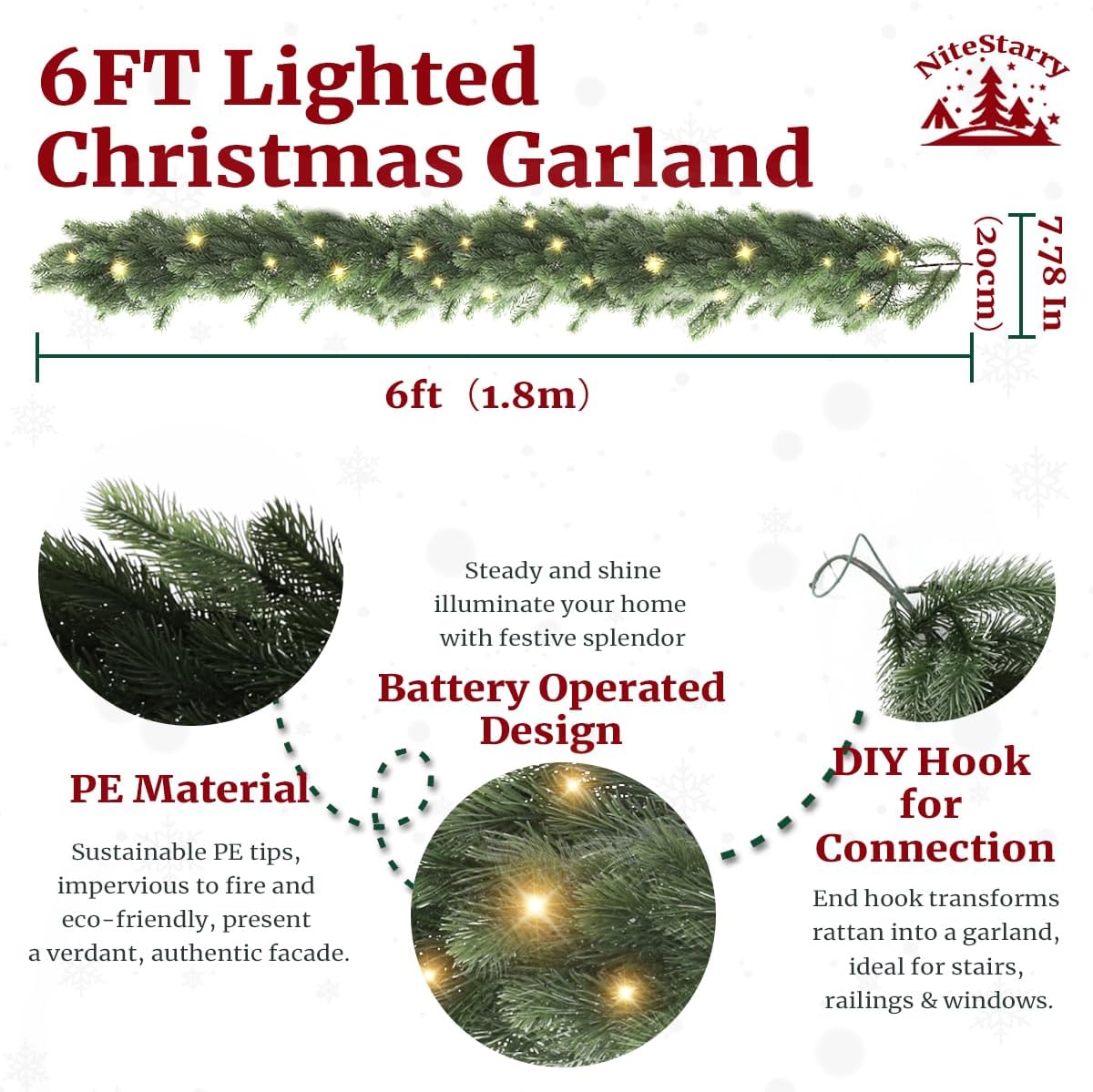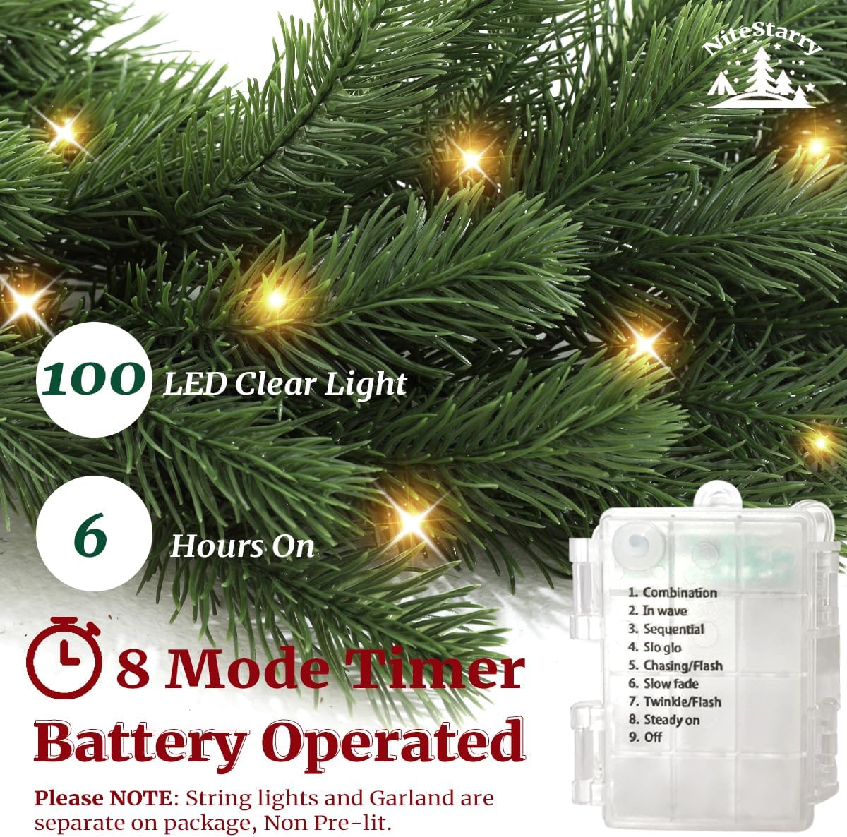2 Pcs Battery Operated Christmas Garland, 6 FT Greenery Garland with 100 LED Lights String Christmas Decorated Table Mantle Background Wall Room Outdoor Indoor Winter Decoration