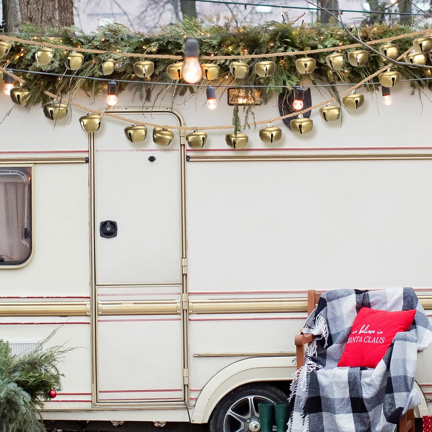Package Includes: you will receive 2 pieces of bell metal garlands, and each garland has 26 pieces of bells, they are composed of quality material and designed in nice combination for your convenient useProper Measurement: the bell metal garland measures approx. 1.8 m/ 5.91 ft in length, and each bell measures about 3.8 cm/ 1.5 inches They have compact sizes and light weight, easy for you to take out for decorating or store at home, without taking up too much space
