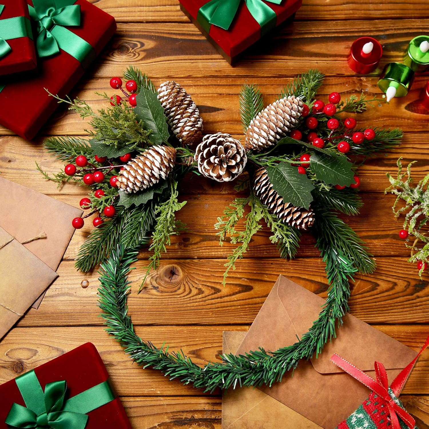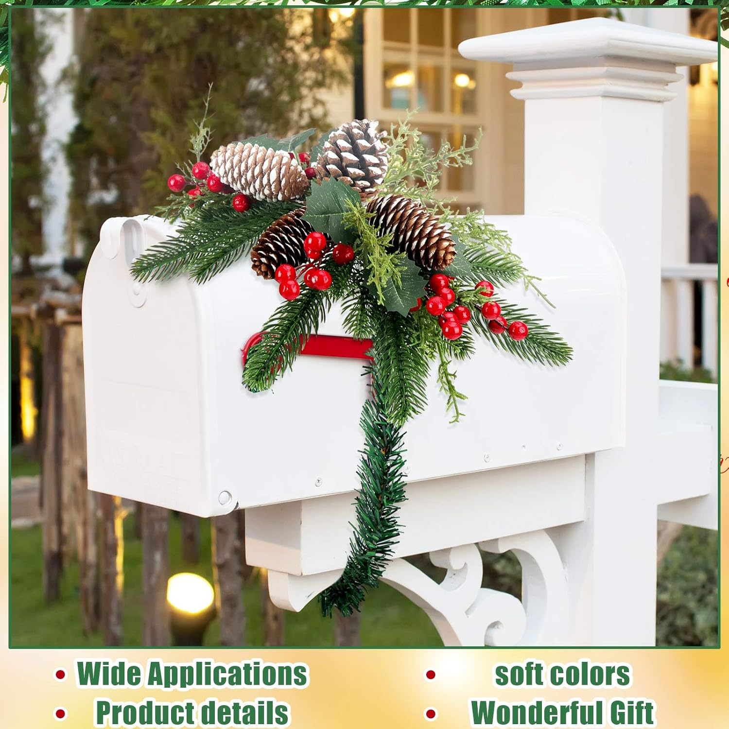 2 Pcs Christmas Swag Xmas Mail Box Swag with Pine Collection Artificial Christmas Mail Box Swag Flocked Pine Swag Pine Cones Door Swag for Christmas Holiday Party Door Wall Hanging