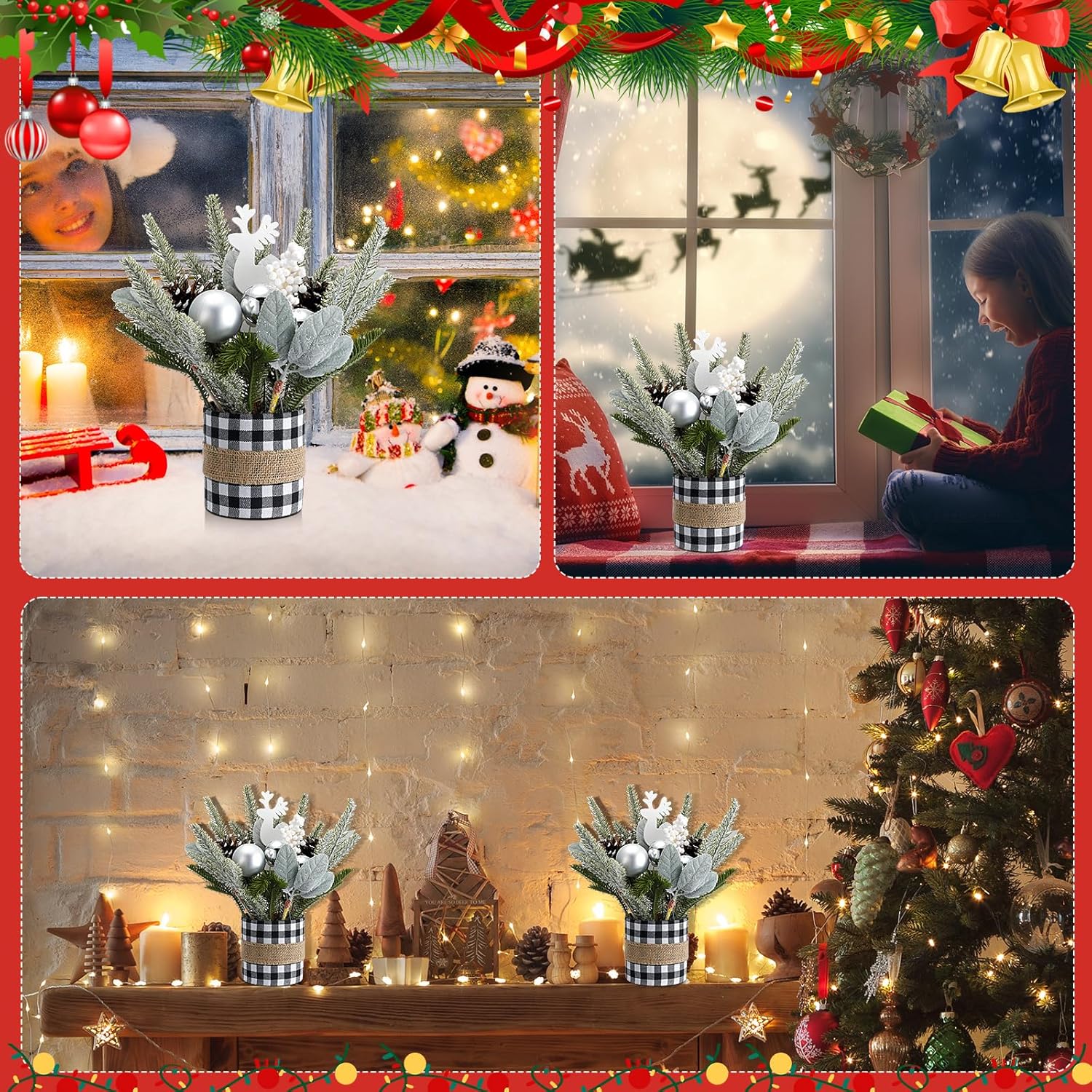 • Boosts Holiday Spirit: the mini Christmas tree decorations work as nice mood lifters for your Christmas party as they are designed with realistic and vivid features like faux Christmas leaves, Christmas ball accents, and white berries Their lavish appearance and holiday themed look help ignite the Christmas spirit, enriching your holiday experience