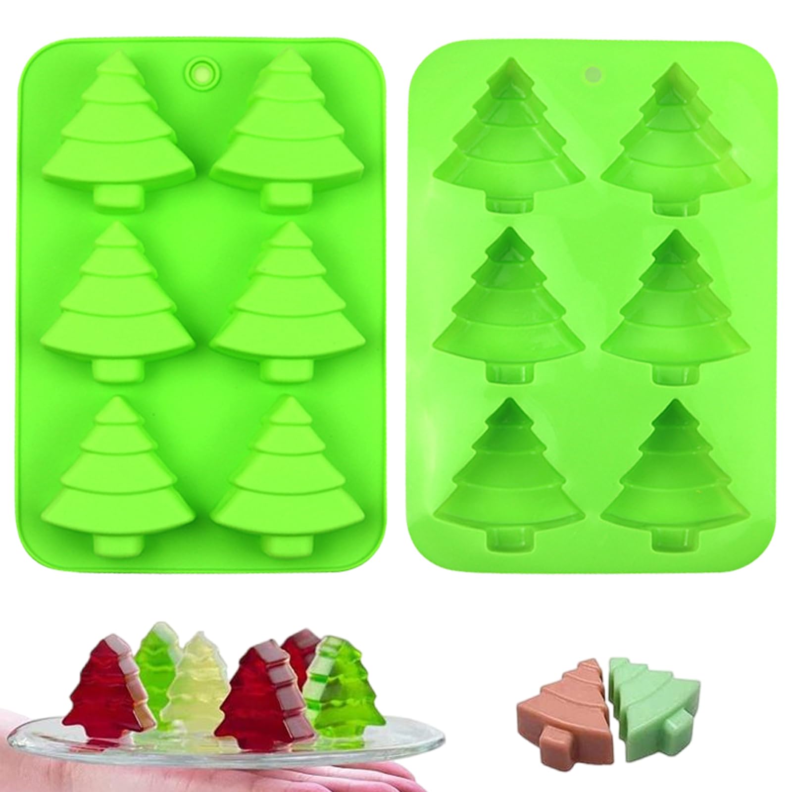 • Multi-functional: These christmas tree molds not only can be used for making chocolates, but also mousse, jelly, pudding, frozen yogurt treats, ice cubes with fruit juice, cake decorations, etc. and any other purpose, or you can diy beauty products like mini lotion bar, bath bombs, shower steamers, soy candles, guest soap as s.