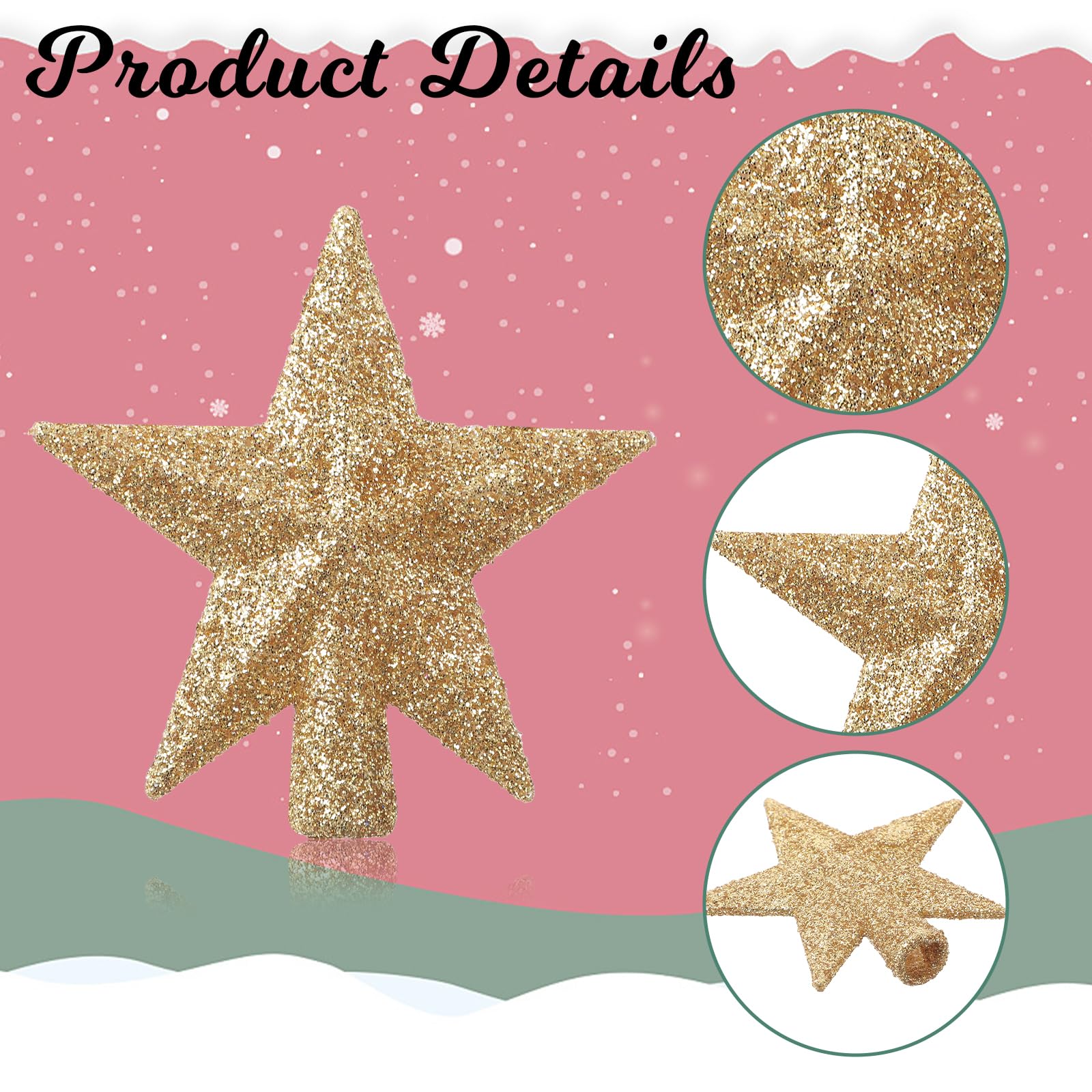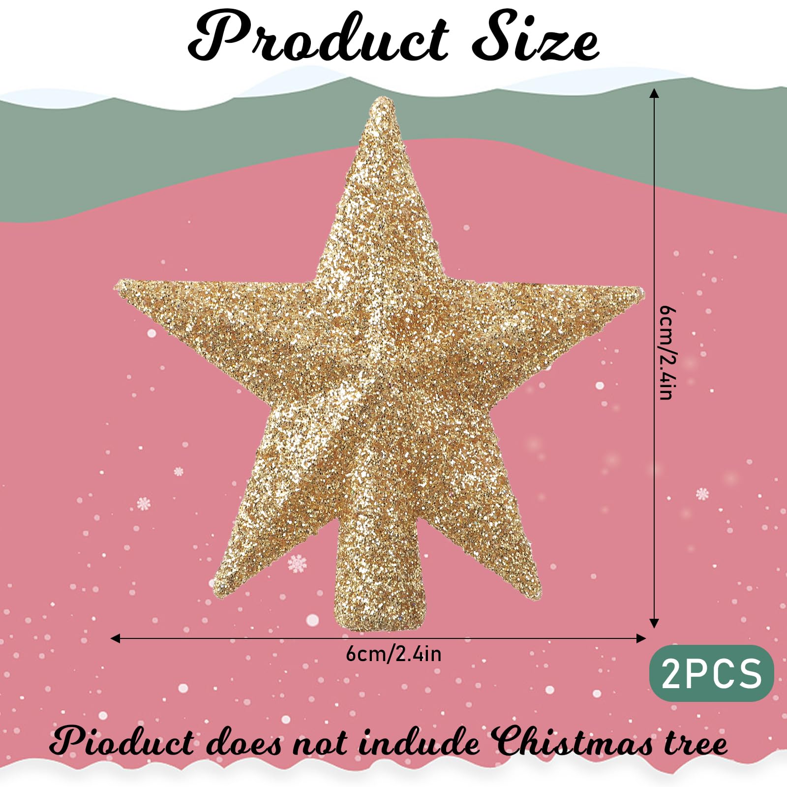 2 Pcs Mini Christmas Tree Topper, Small Tree Topper Glitter Stars Xmas Tree Topper Small Christmas Ornaments Christmas Star Treetop for Xmas Holiday Party Decor (2.4 Inch)