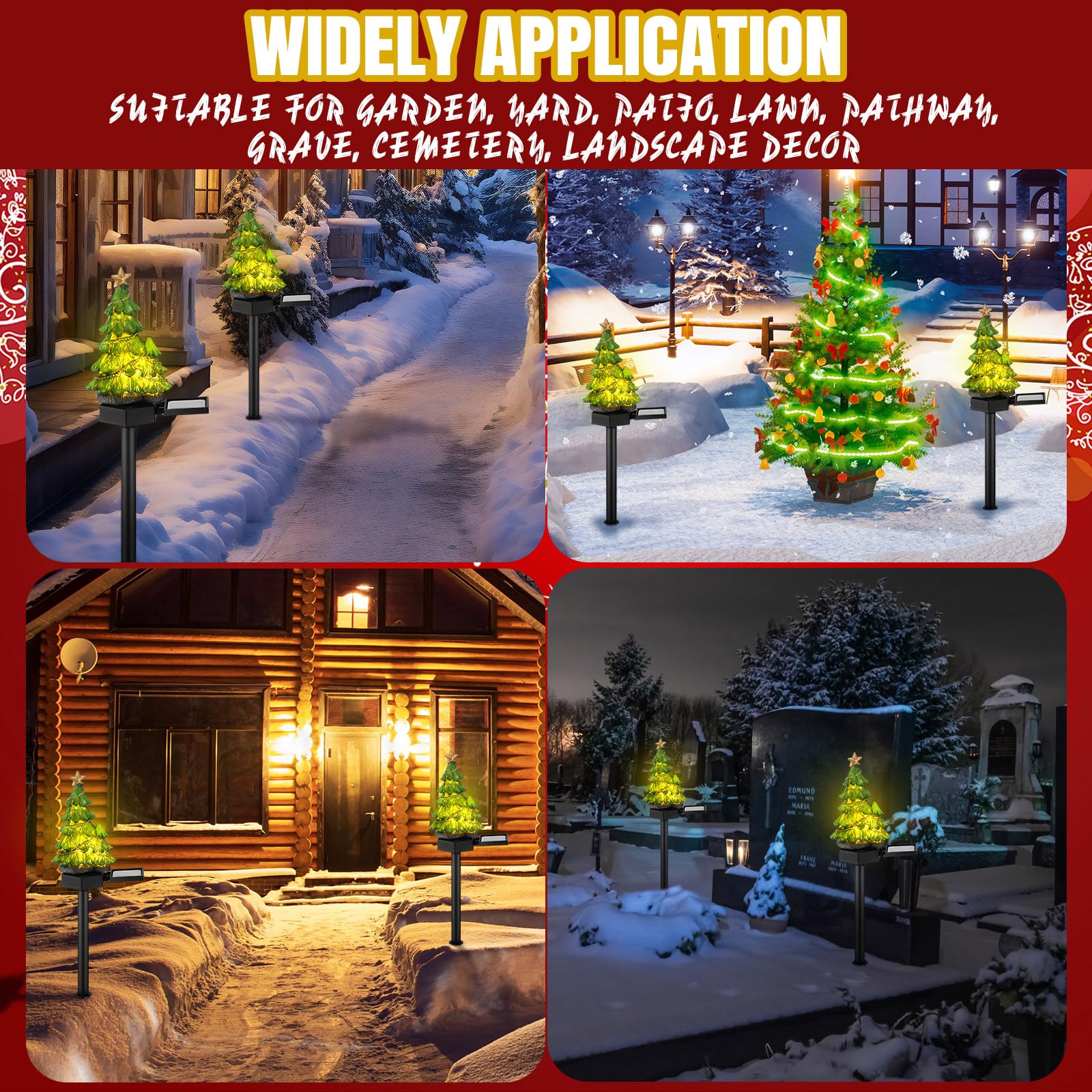 2 Pcs Resin Solar Christmas Tree Garden Stake Lights Waterproof Christmas Decorations Lights Small Solar Christmas Tree Aisle Lights for Yard Patio Pathway Decoration(Christmas Tree)