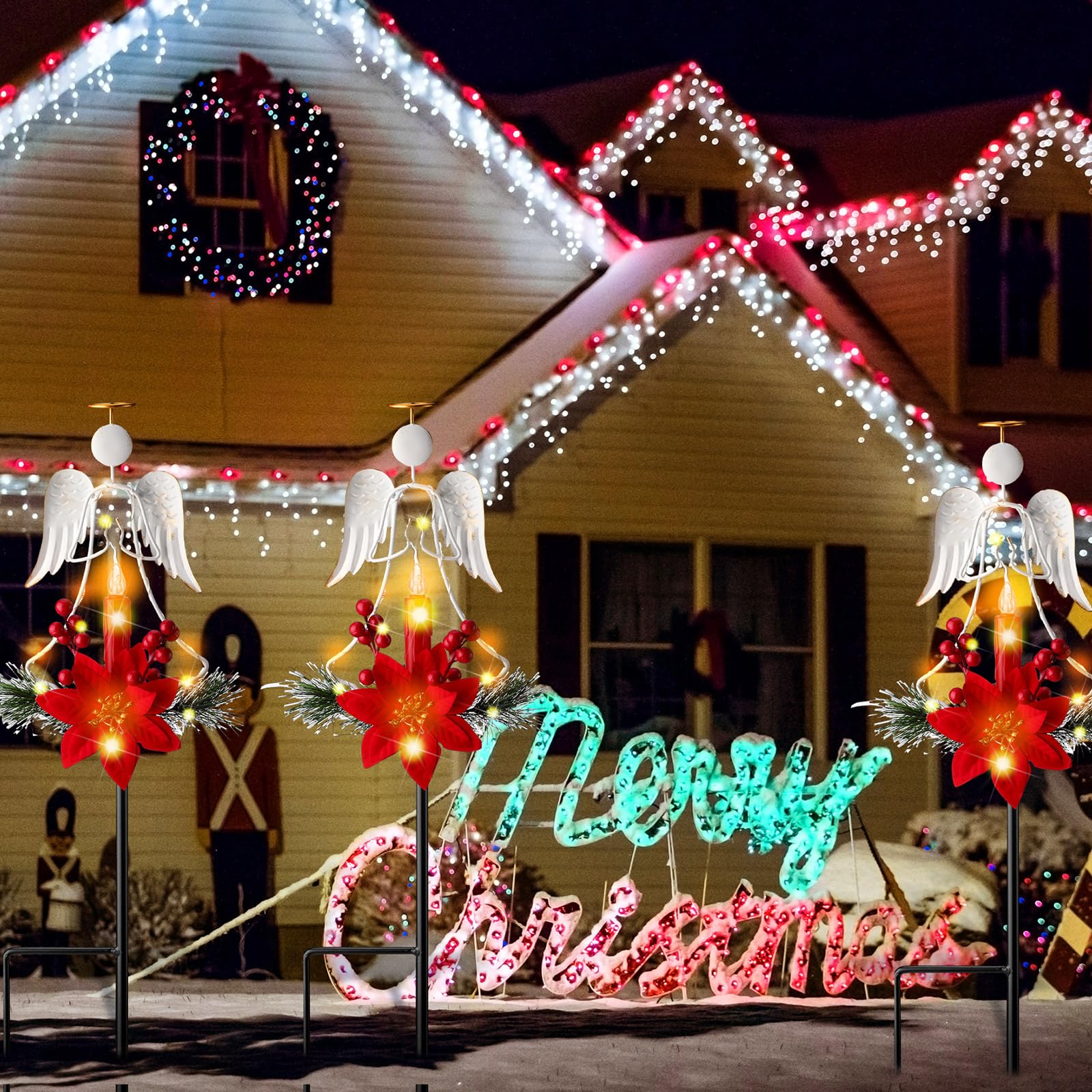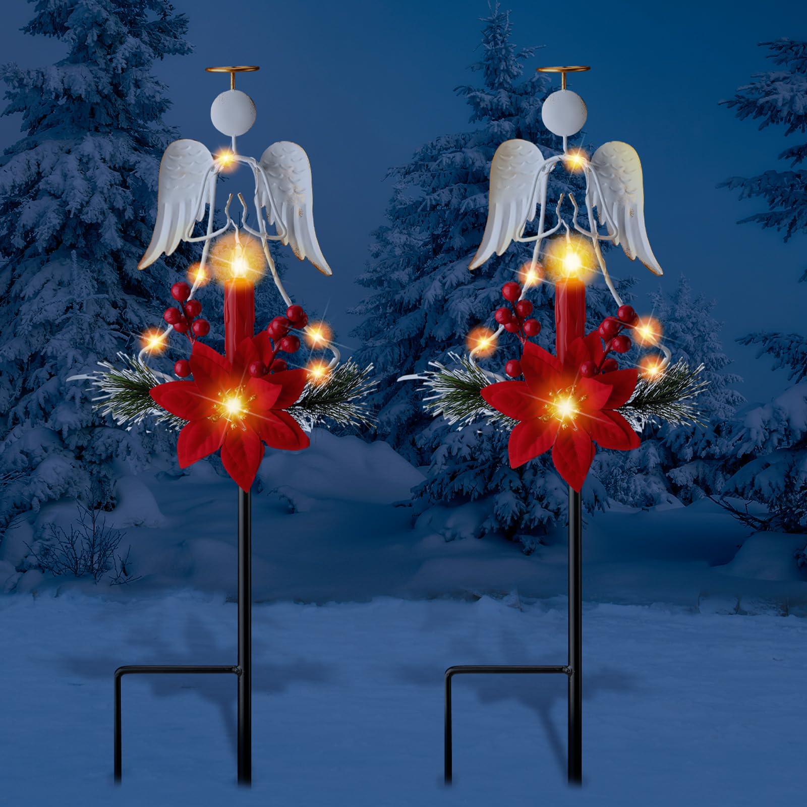 2 Pcs Solar Christmas Angel Stake Lights Yard Decorations Christmas Garden Stake Decor Metal Angel Solar Lights Outdoor Garden with LED Candle for Pathway Holiday Winter Decoration