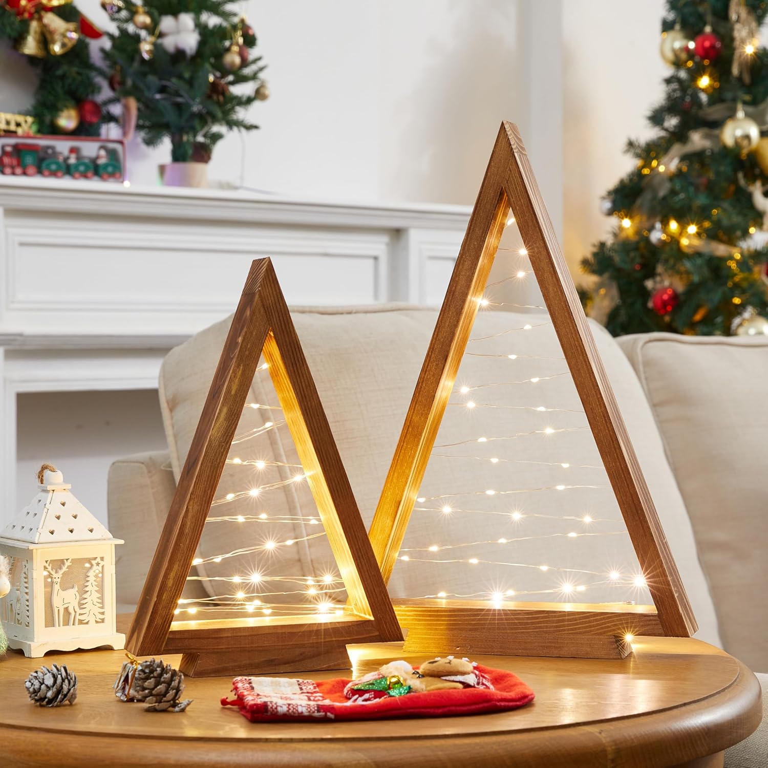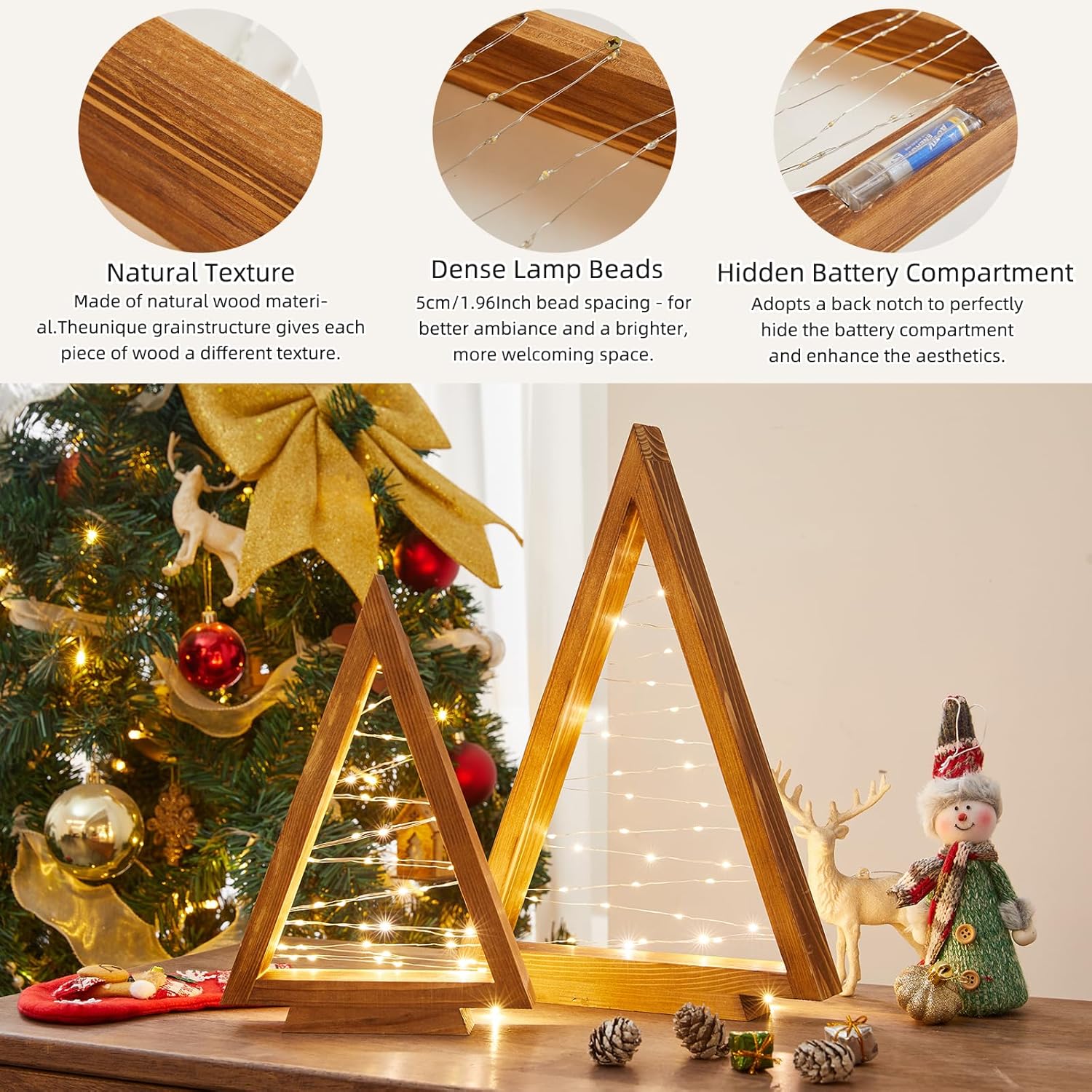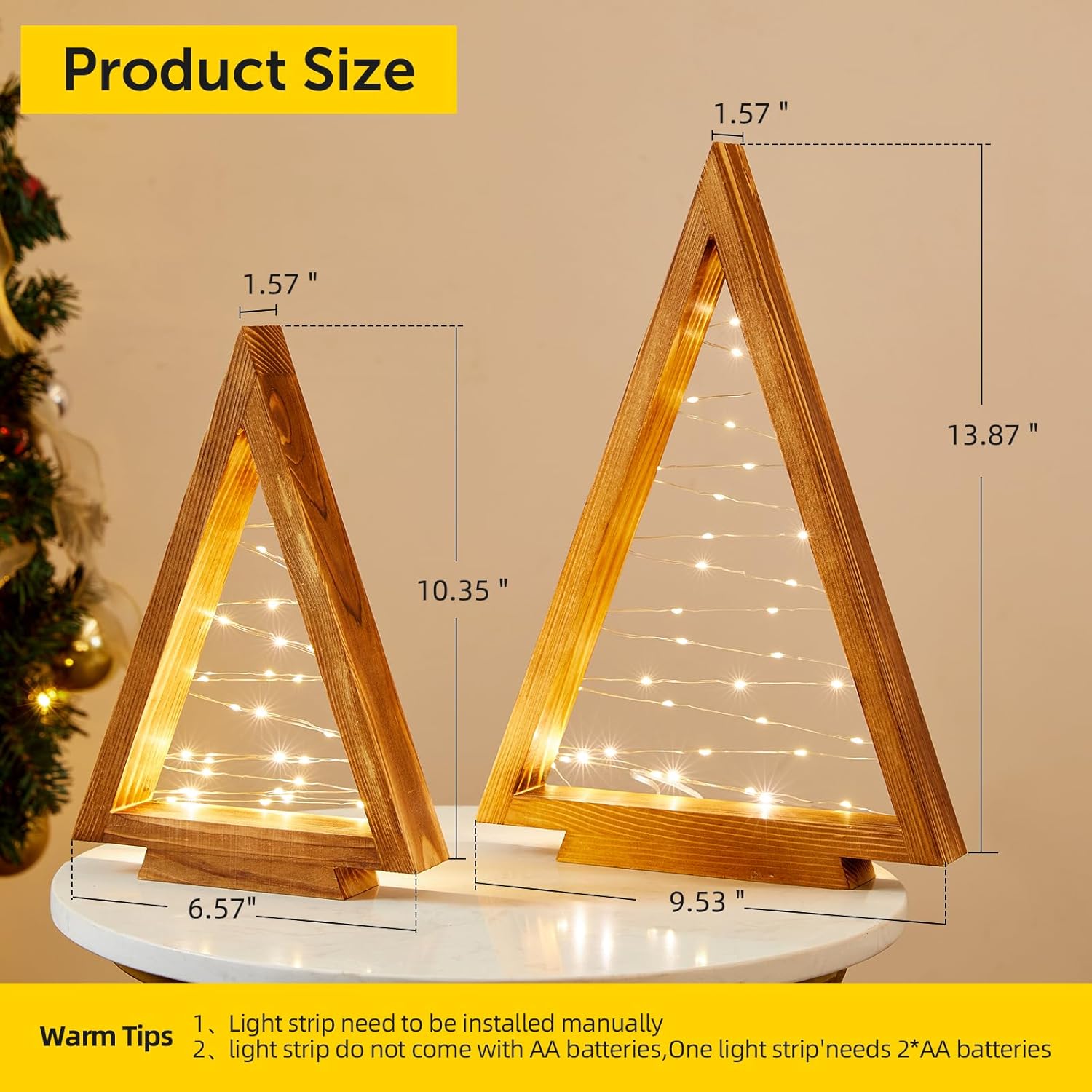2 Pcs Wood Christmas Tree with Lights-Modern Farmhouse Christmas Wooden Tree Centerpieces for Tables Christmas Holiday Decorations Home Party Table Fireplace Mantle Shelf Decor(Brown)