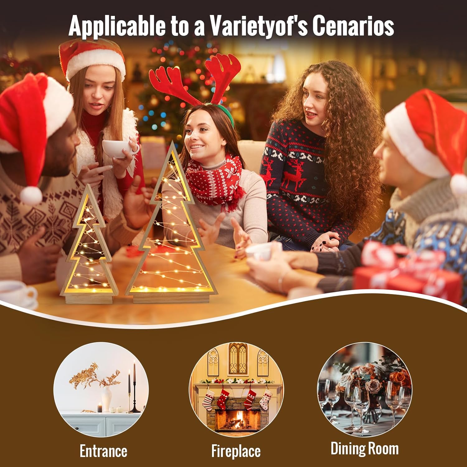 1、Enchanting Lighted Wood Christmas Decor: Elevate your holiday ambiance with our exquisite Lighted Wood Christmas Decor. These beautifully illuminated wooden Christmas trees serve as perfect standalone decorations or delightful backdrops, creating a warm, magical atmosphere during the festive season.2、Striking Unique Design: Combining industrial and modern farmhouse styles, our wood Christmas tree showcases a playful design that brings joy and elegance to your home. Crafted from natural wood, this Christmas tree style design effortlessly enhances any space, whether in the living room, bedroom, or home office.