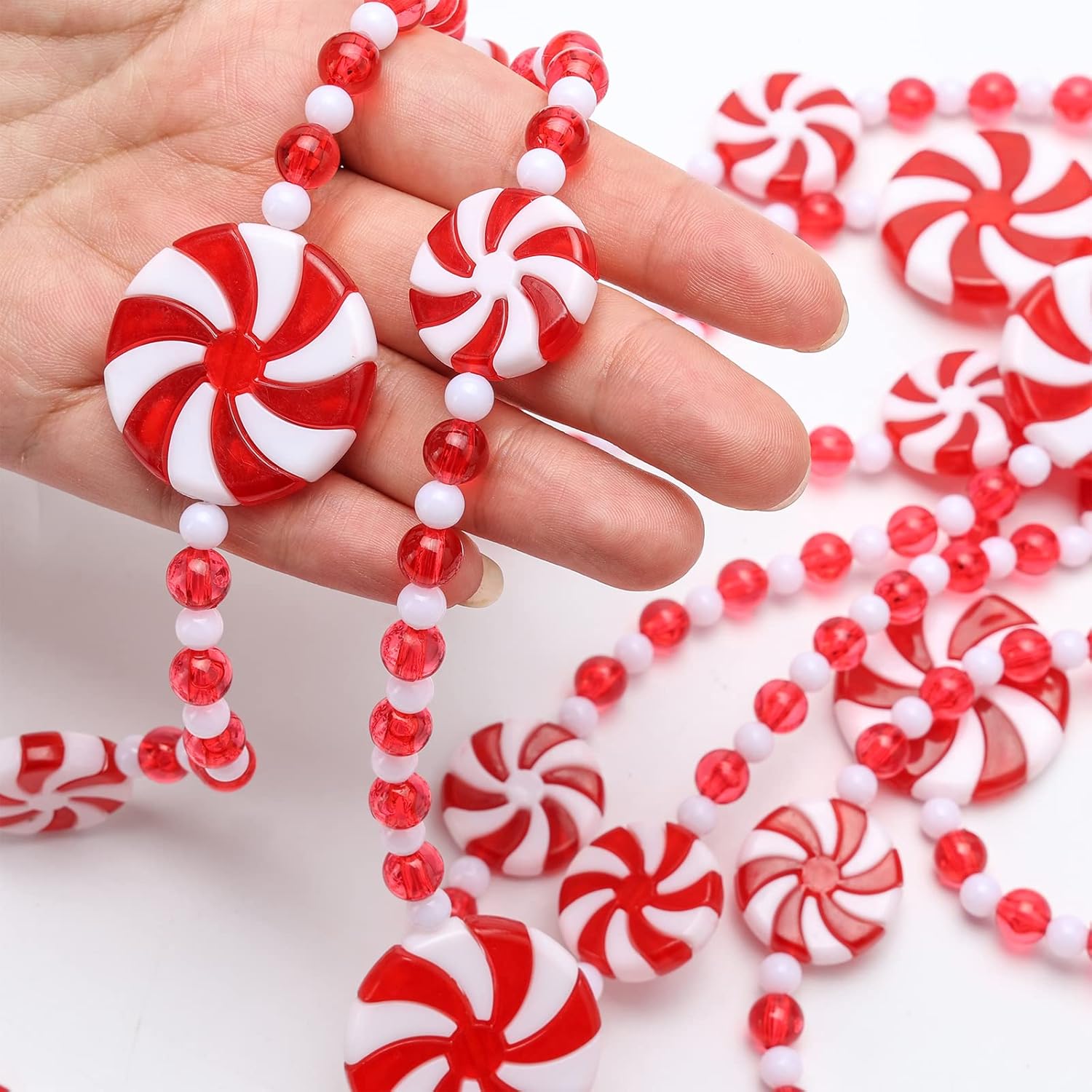 2 Pieces 19.6 feet Christmas Candy Garland Christmas Tree Garland Plastic Christmas Bead Garland Xmas Holiday Candy Cane Decor for Christmas Tree Wreaths Fence Fireplace Decorations
