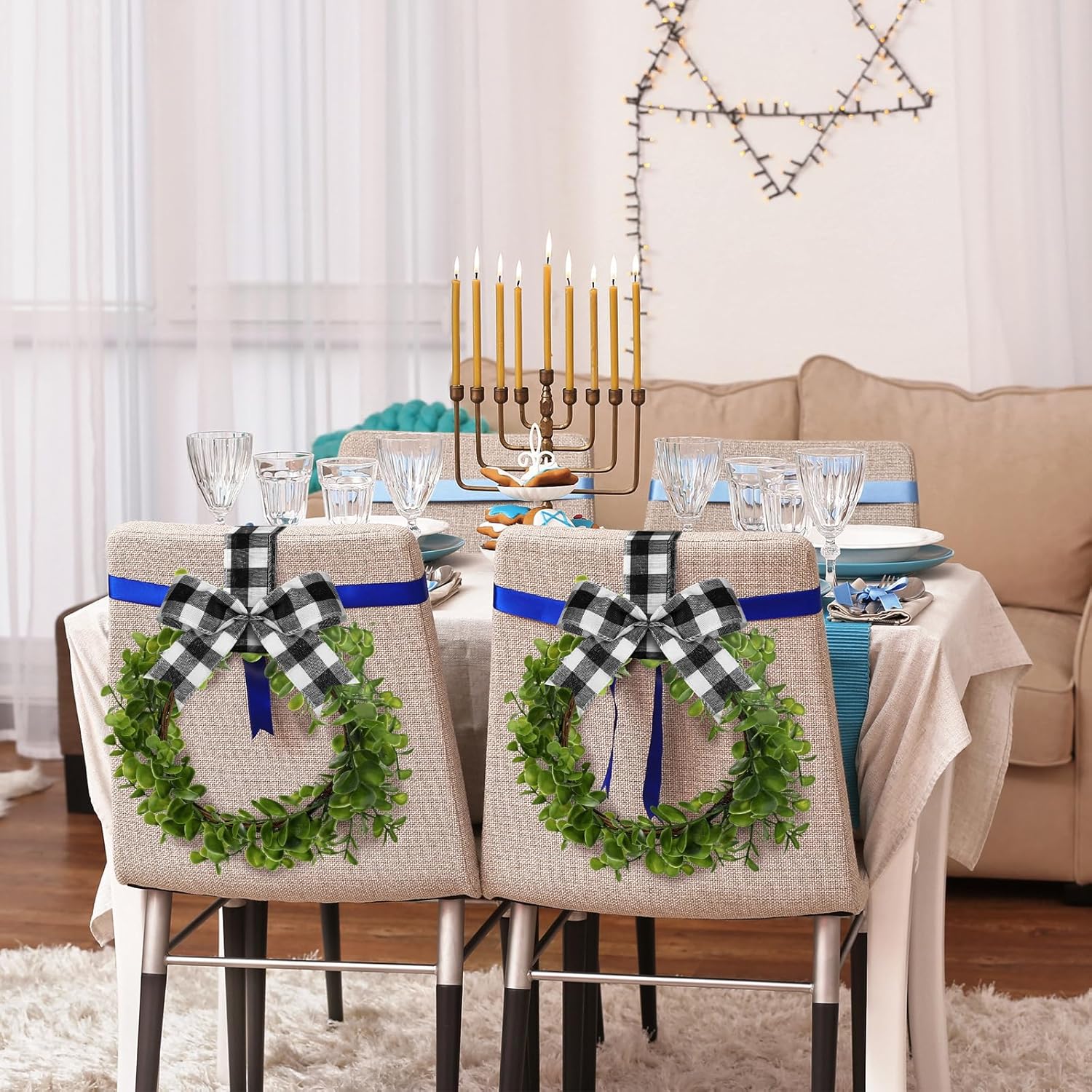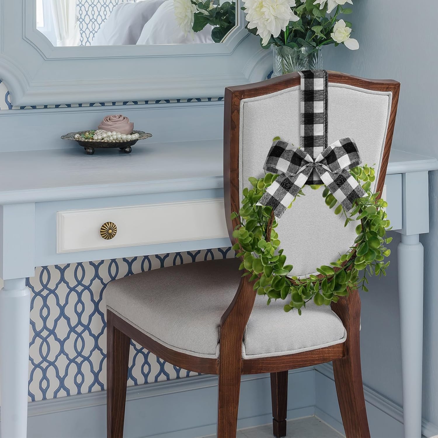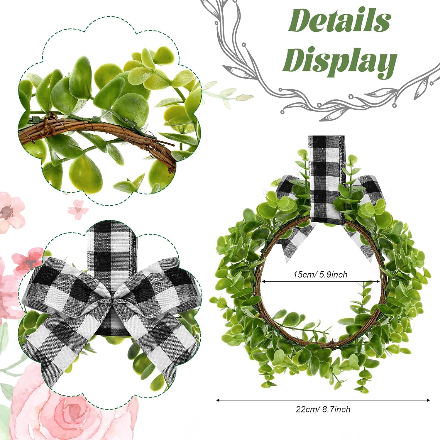 2 Pieces Faux Kitchen Christmas Cabinet Wreaths Boxwood Wreaths with Ribbon Buffalo Plaid Kitchen Decor Hanging Wreaths Small Farmhouse Wreaths Artificial Greenery Wreaths for Kitchen Cabinet Doors