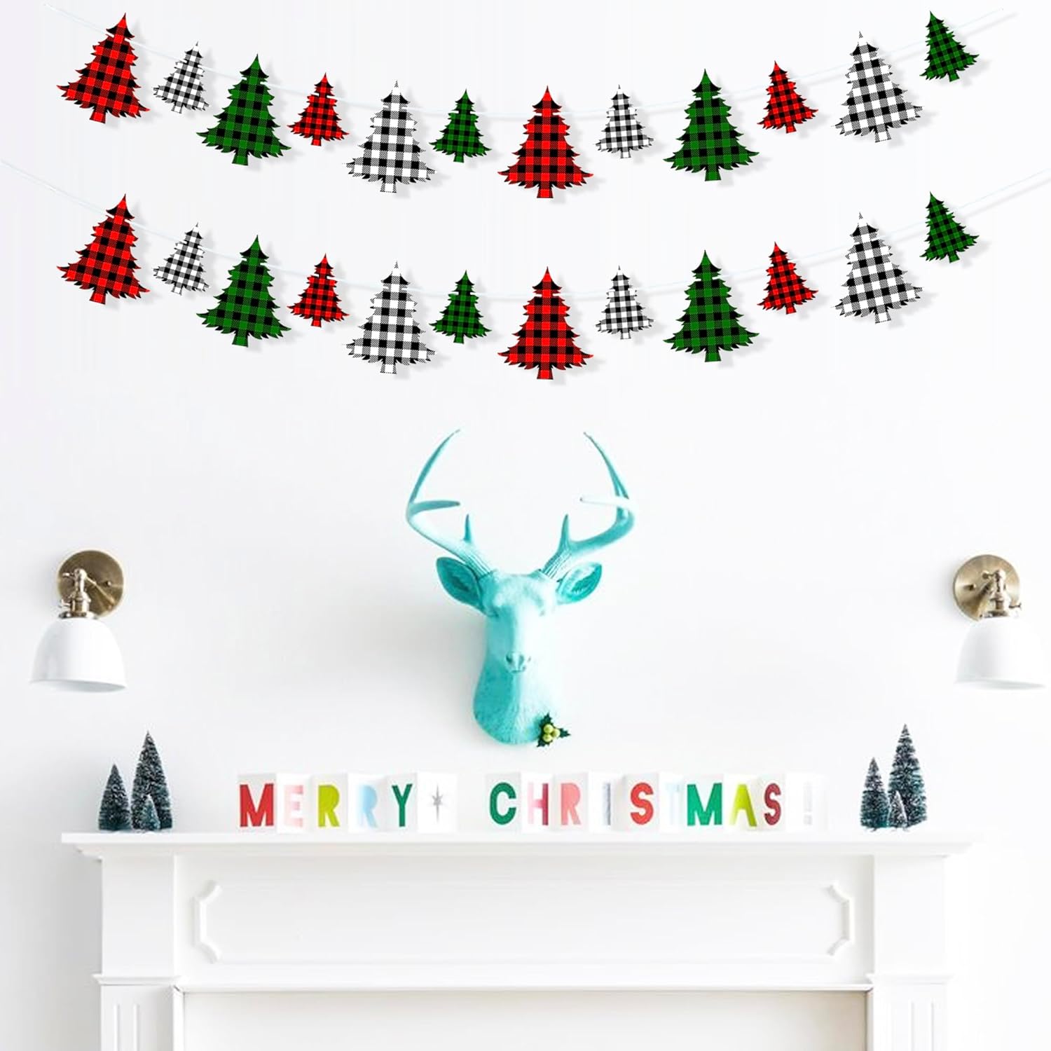 Create a festive atmosphere to your party with our buffalo plaid Christmas tree banner, stylish and attractive, fit for your party and home decoration, it will wow and earns compliment from your families and friends.Package includes 2pcs tree garland banner, featuring classic plaid with Christmas tree pattern, red, green and white colors which full of strong Christmas atmosphere, it comes pre-strung and distance adjustable that you can space them to the perfect site you like.
