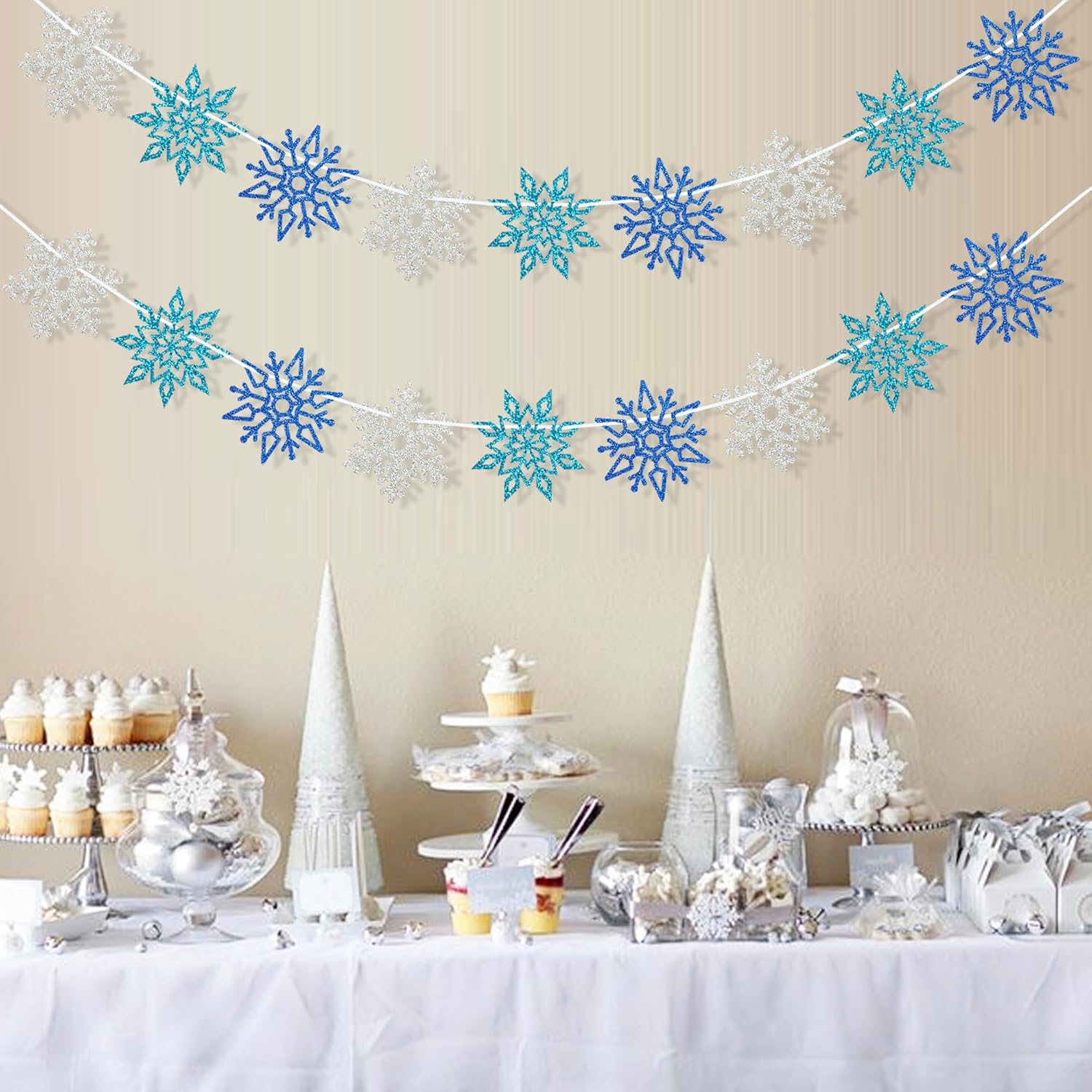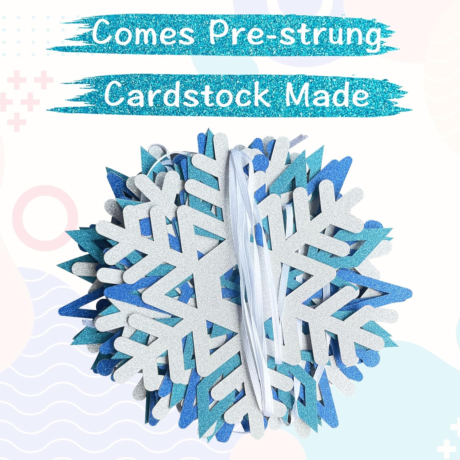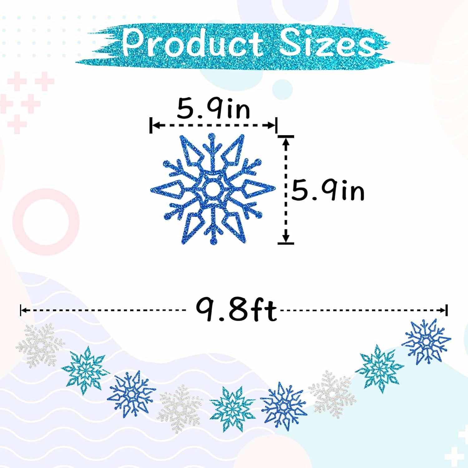 • The snowflake decorations is made of double sided glitter cardstock, add a touch of sparkle for your winter party, durable and sturdy enough to use many times, the party banner is 9.8 feet, snowflake size is 5.9”, each string contains 9, total 18, sufficient quantity to decorate the Christmas party.