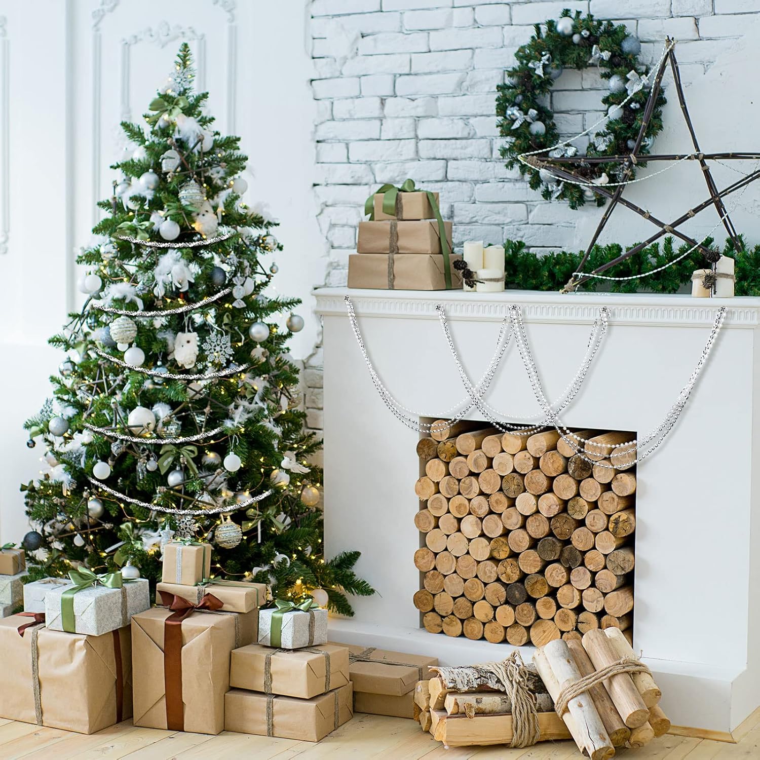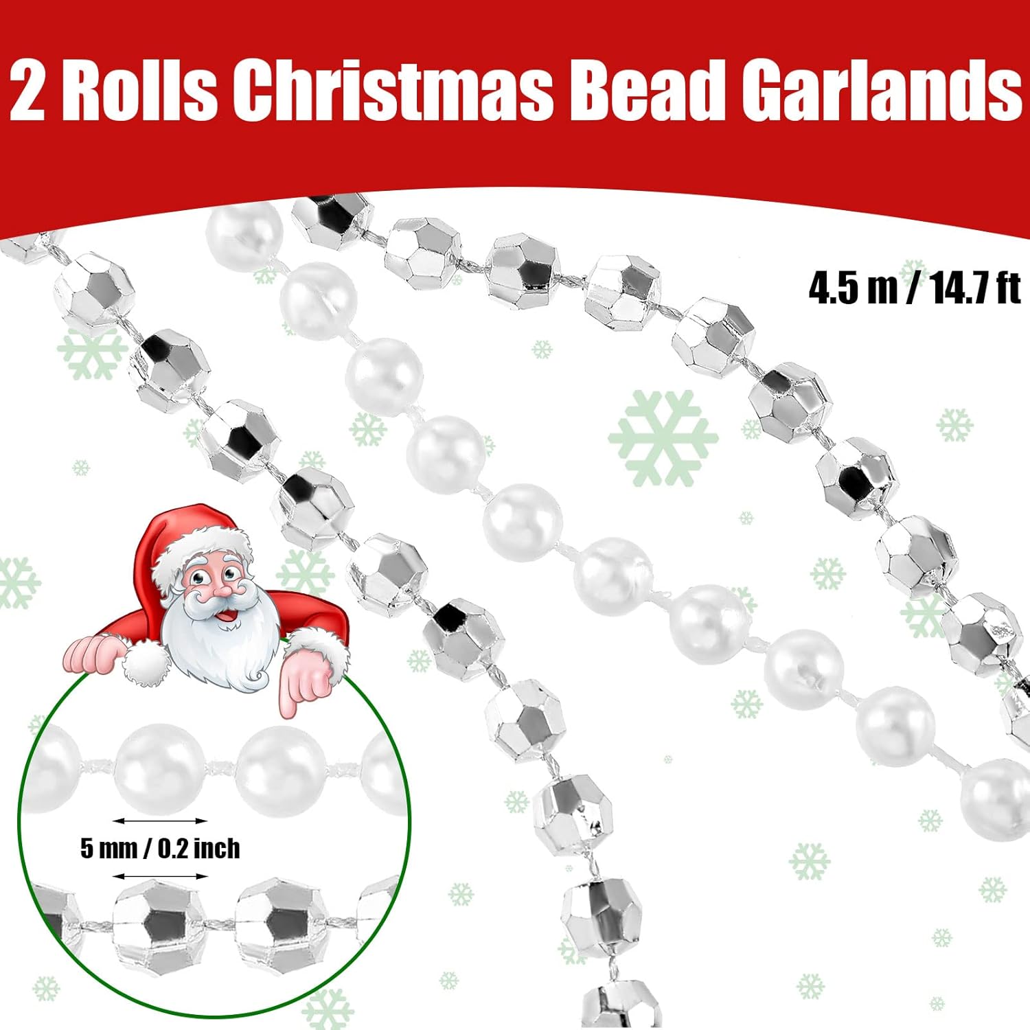 Long to Wrap Christmas Tree: the package includes 2 rolls of beaded garland decors, each measures approx. 4.5 meters/ 14.7 feet long, enough to wrap your Christmas tree Or you can cut them into a proper length according to your actual needsElegant Appearance: each beaded tree garland adopts 2 strands of multifaceted beads in silver and 1 strand of white faux pearl beads, which are twisted together and can present an iridescent effect under the light, romantic and beautiful, shiny and exquisite, easily catching your eyes, adding charms and elegance to your Christmas party