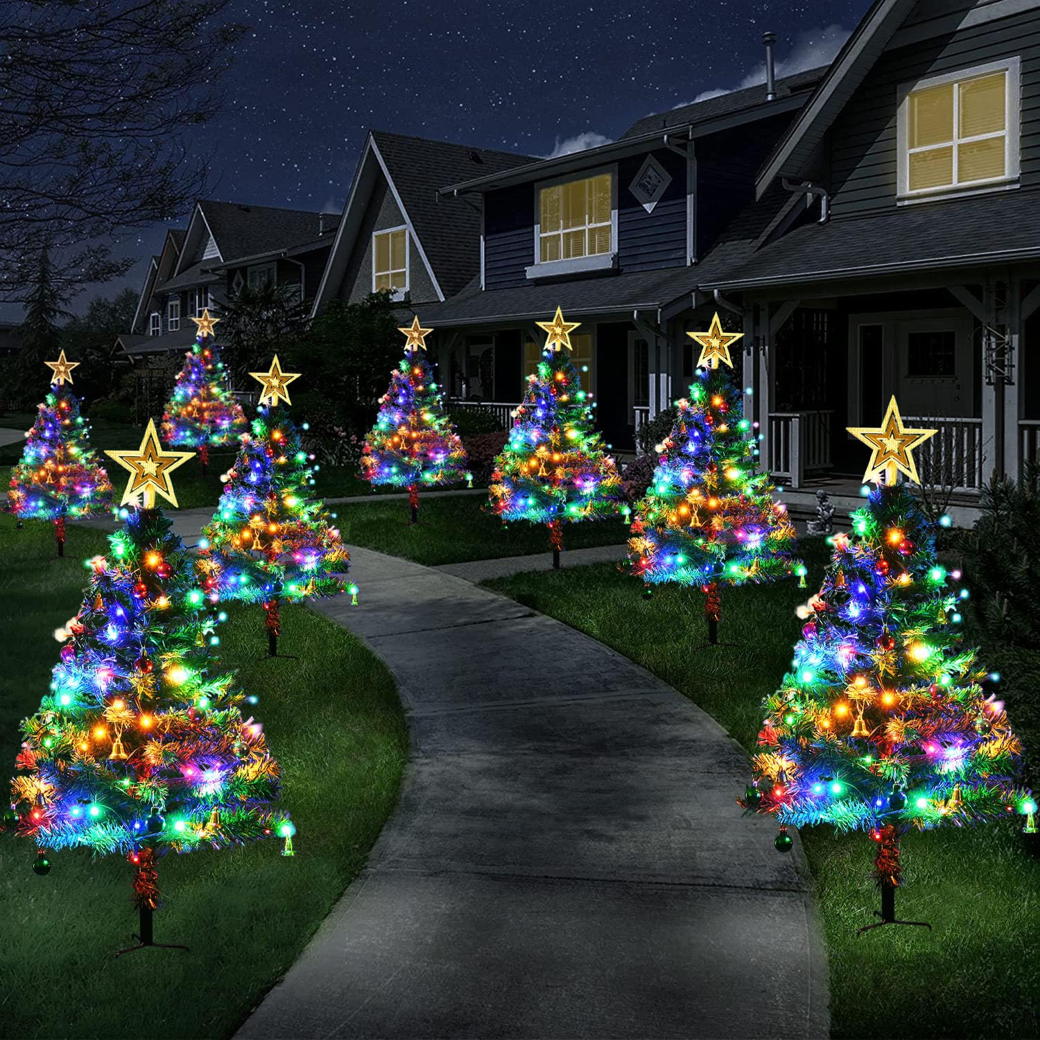 2 Set Solar Christmas Tree Christmas Lights for Outdoor Christmas Decorations, Solar Xmas Pathway Lights 8 Modes Solar Christmas Garden Stake Lights, Waterproof Outdoor Christmas Decor for Patio Yard