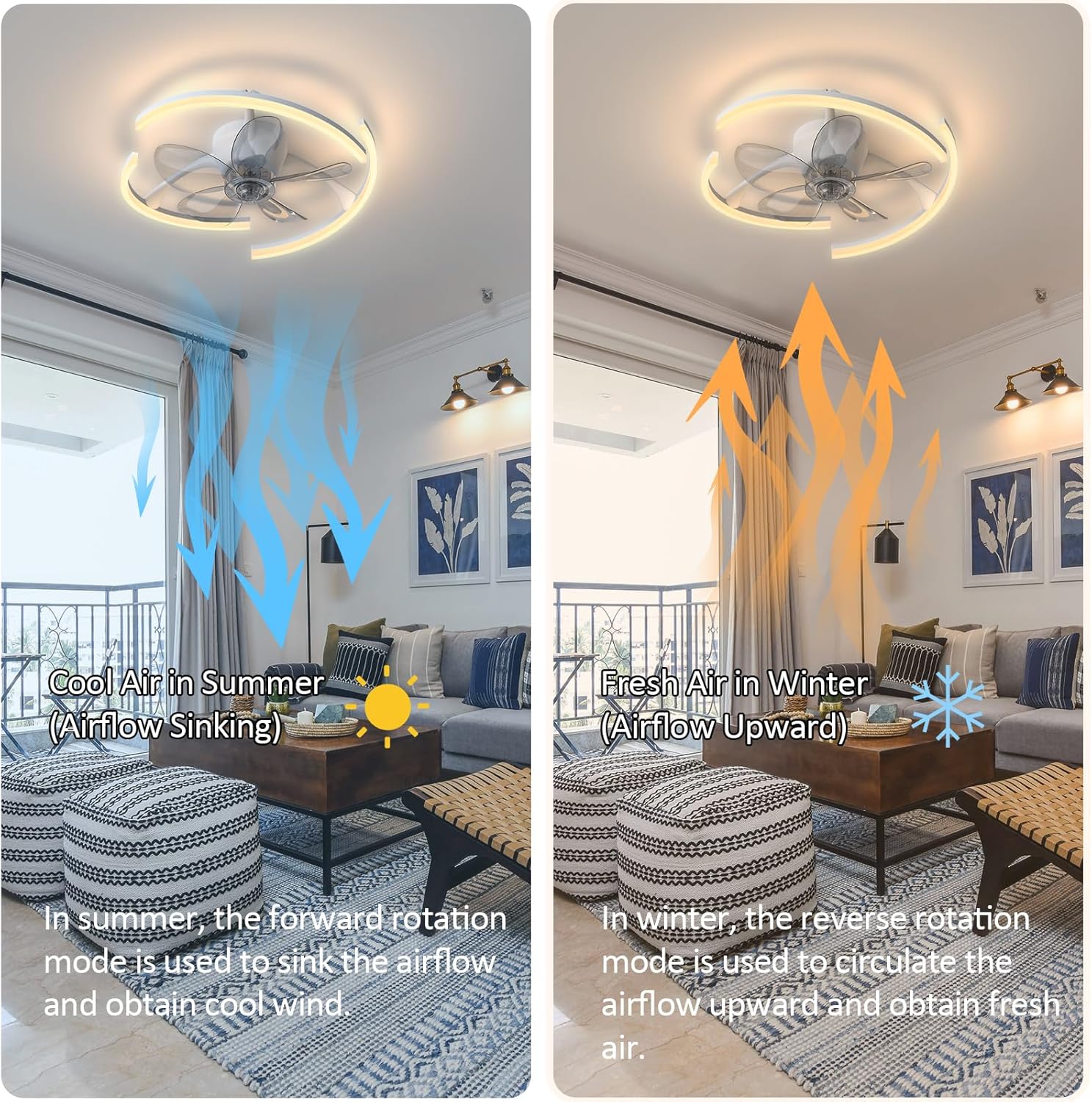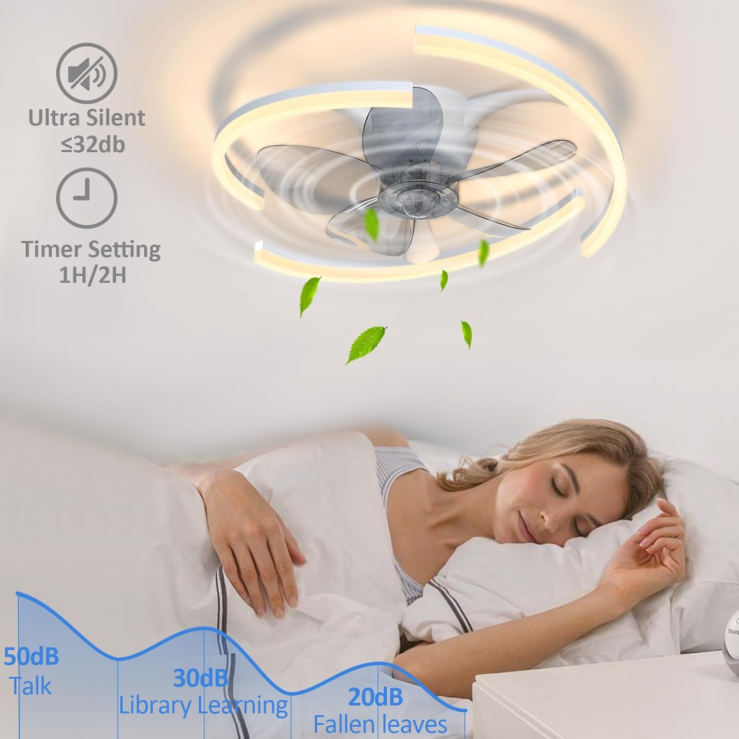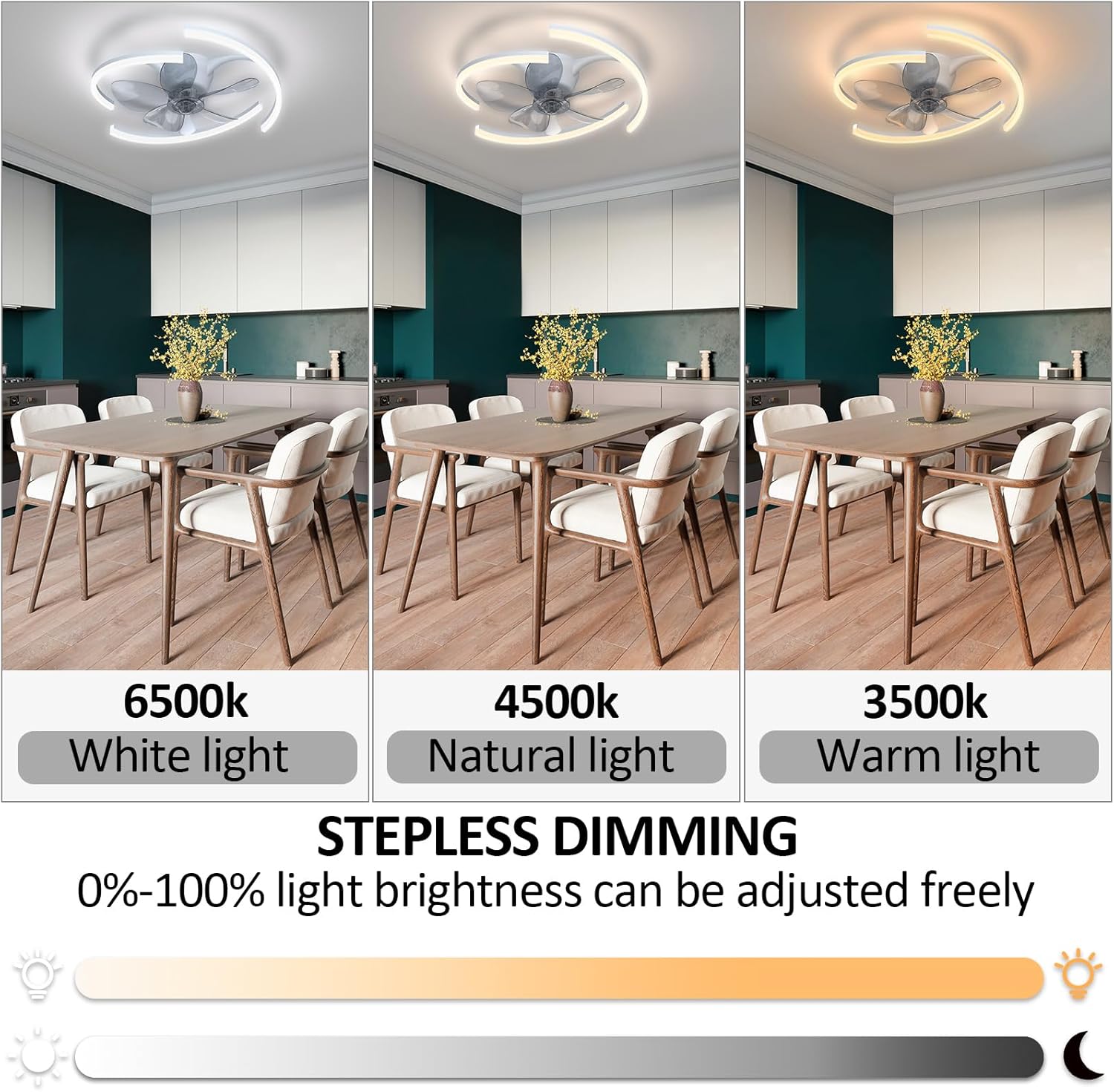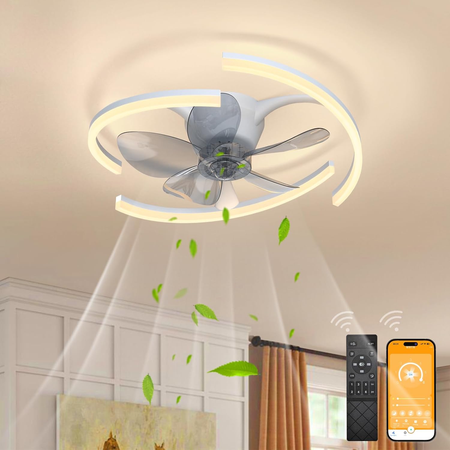 20 Ceiling Fans With Lights App Remote Control, Low Profile Modern Flush Mount Ceiling Fan, Stepless Dimmable 3 Colors And 6