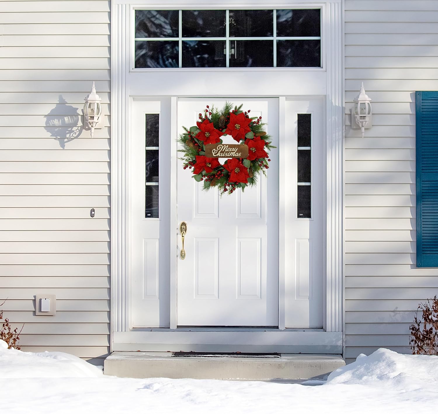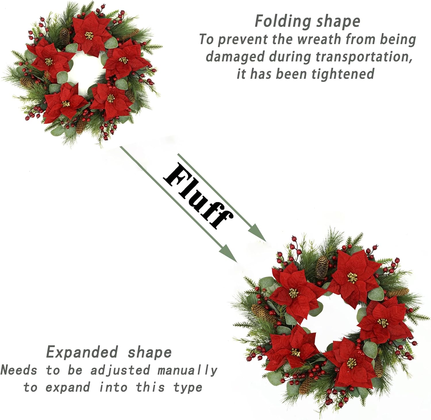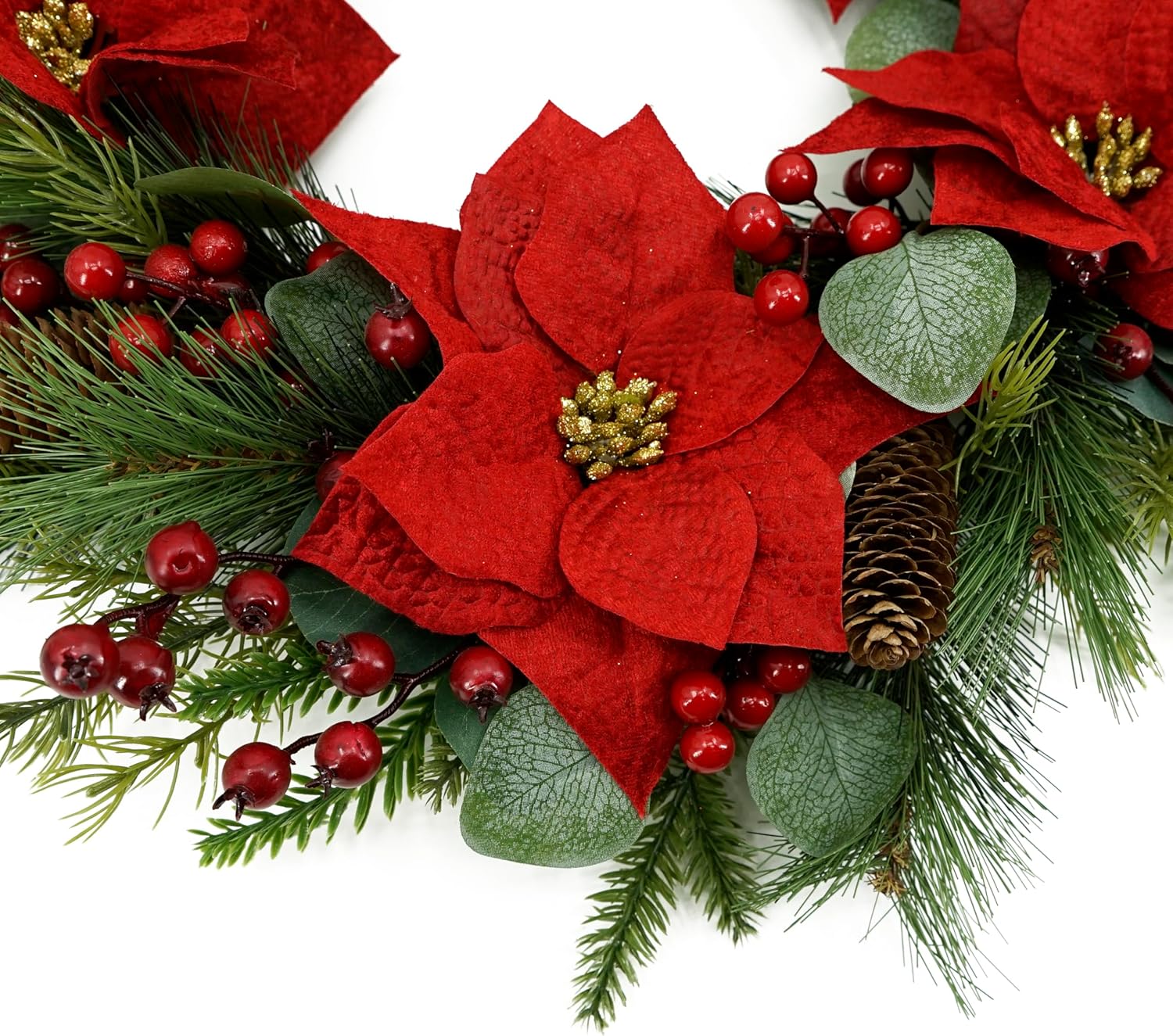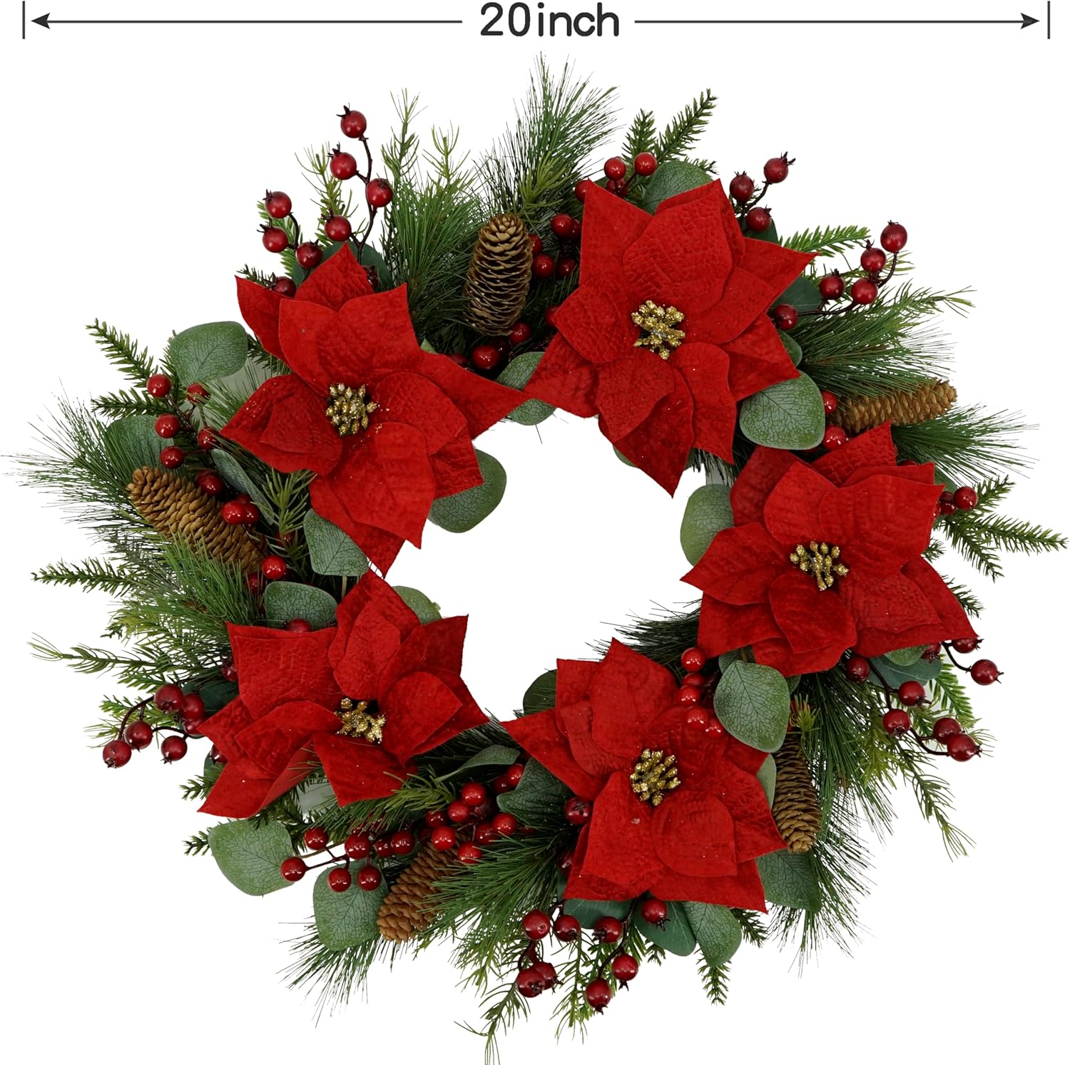 20 inch Artificial Christmas Wreath Winter Wreath with Poinsettia,Eucalyptus Leaves,red Berry,Pine Cones,Pine Needles for Indoor Outdoor Farmhouse Home Wall Window Festival Wedding Decor